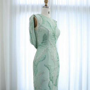 Vestido de Festa Charmoso Verde Water com Plumas