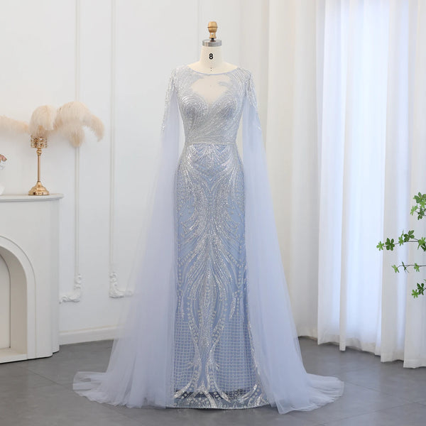 Vestido de Festa Longo Sereia com Capa Fluida em Tule