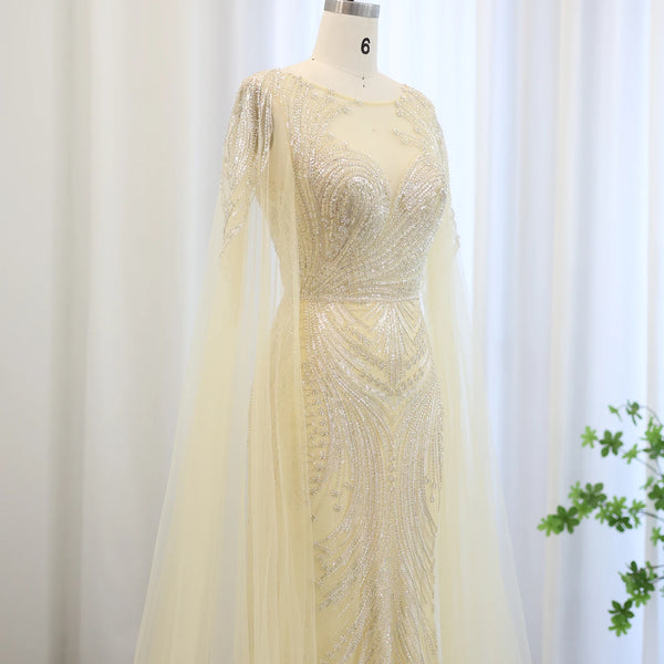 Vestido de Festa Luxuoso com Pérolas e Capa