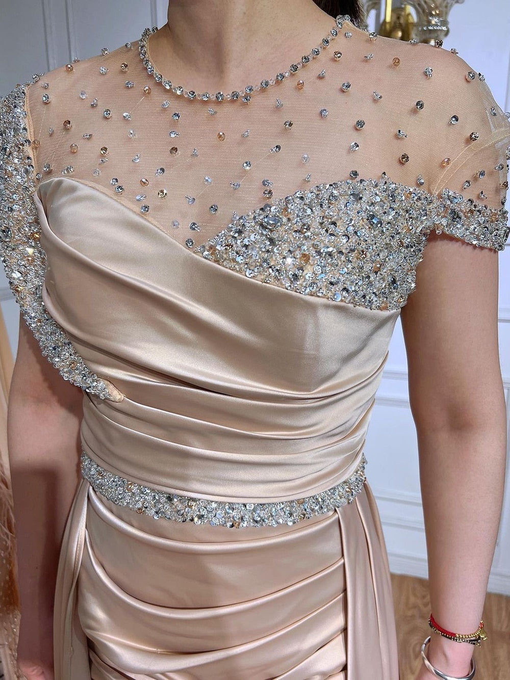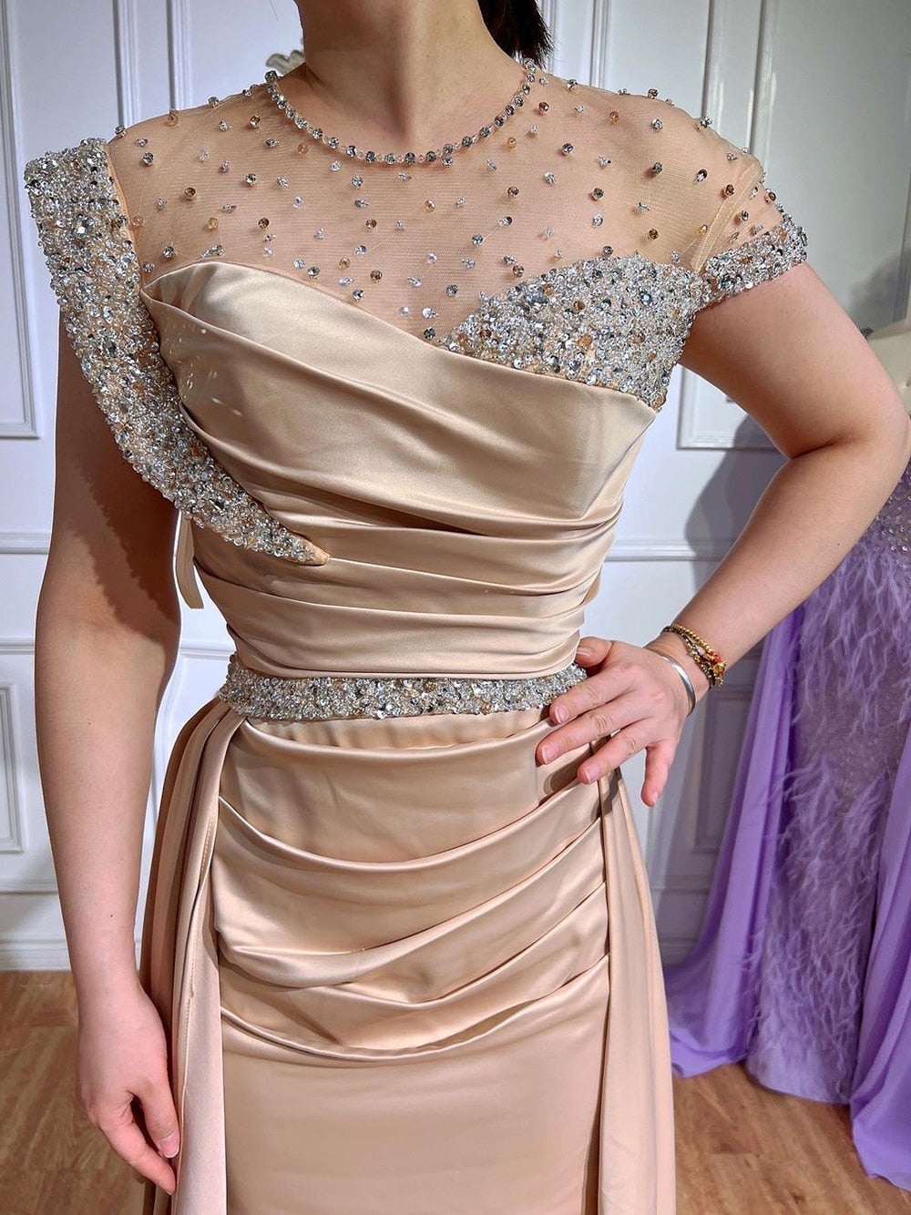 Ideal para eventos que exigem um visual refinado, este vestido combina a sofisticação do design sereia com o brilho sutil das pedrarias, criando um look elegante e discreto. Seja em um casamento, uma gala ou uma celebração especial, este vestido é a escolha perfeita para quem deseja exibir um estilo clássico e inesquecível.
