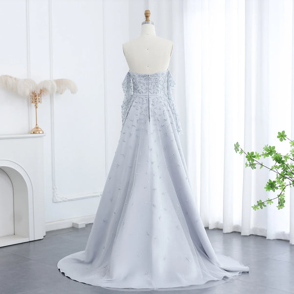 Vestido de Festa Luxuoso com Pérolas e Capa