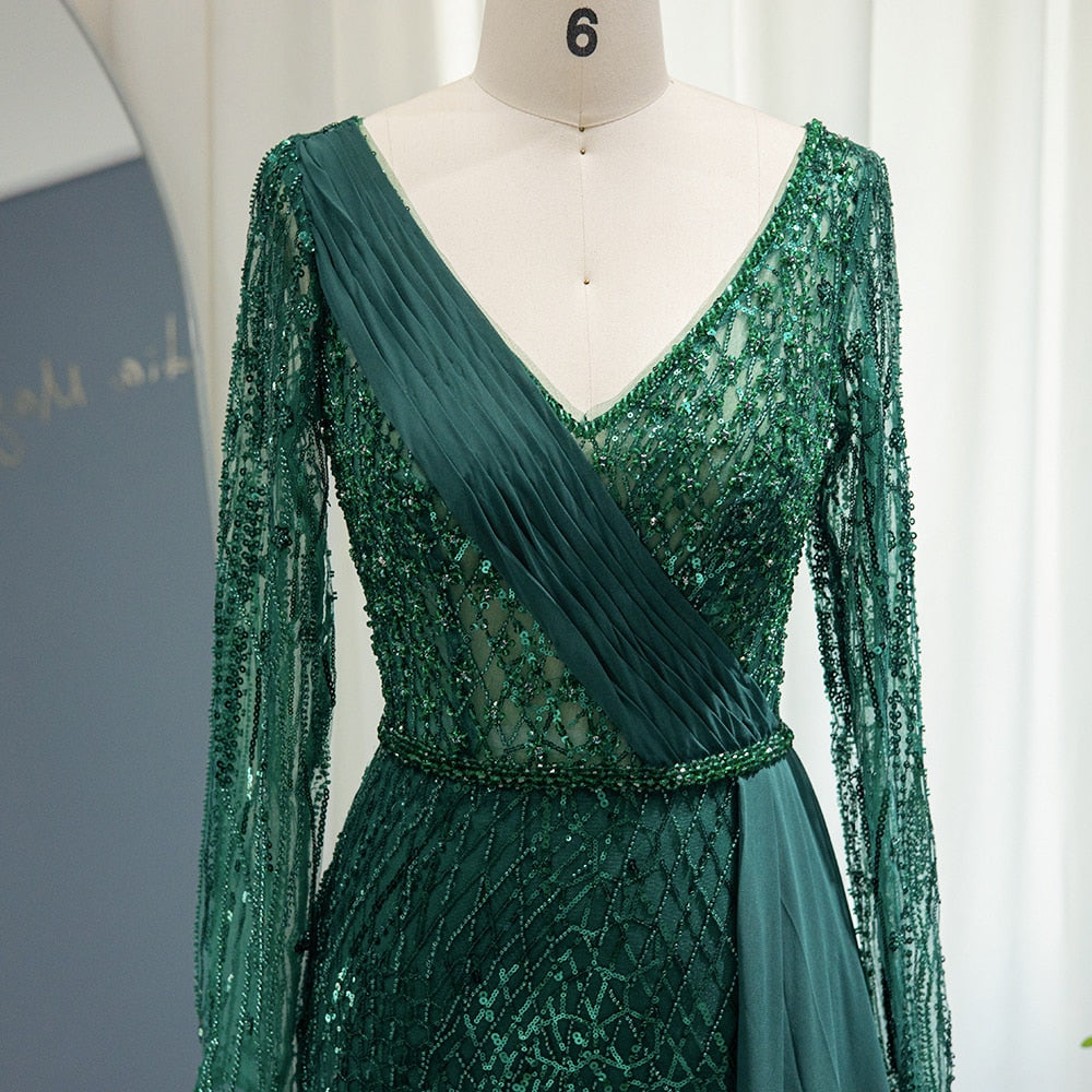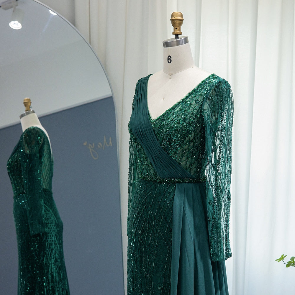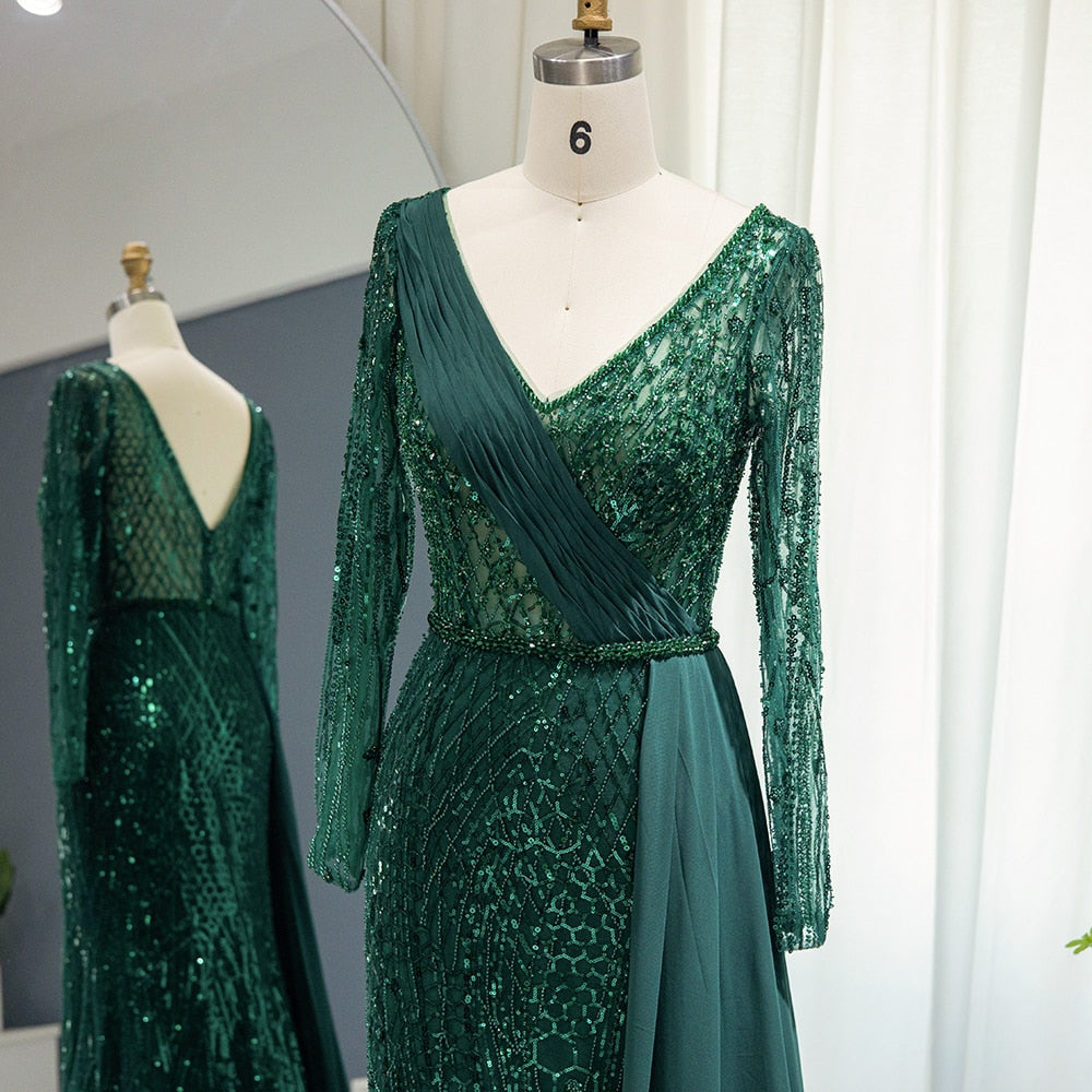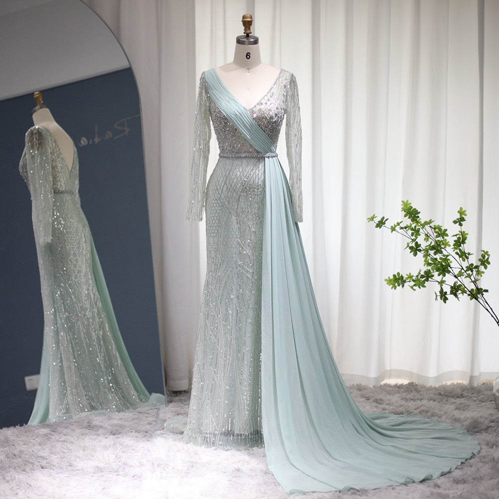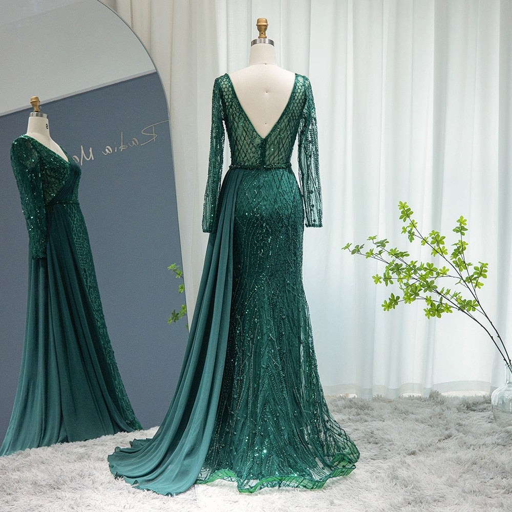 Vestido de Festa Maxi Luxo Adornado em Cristais com Capa Detalhada