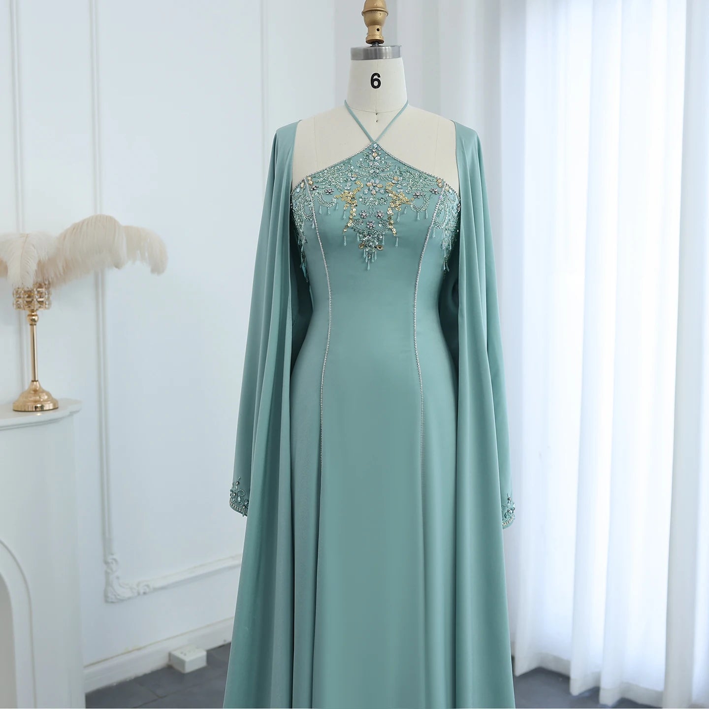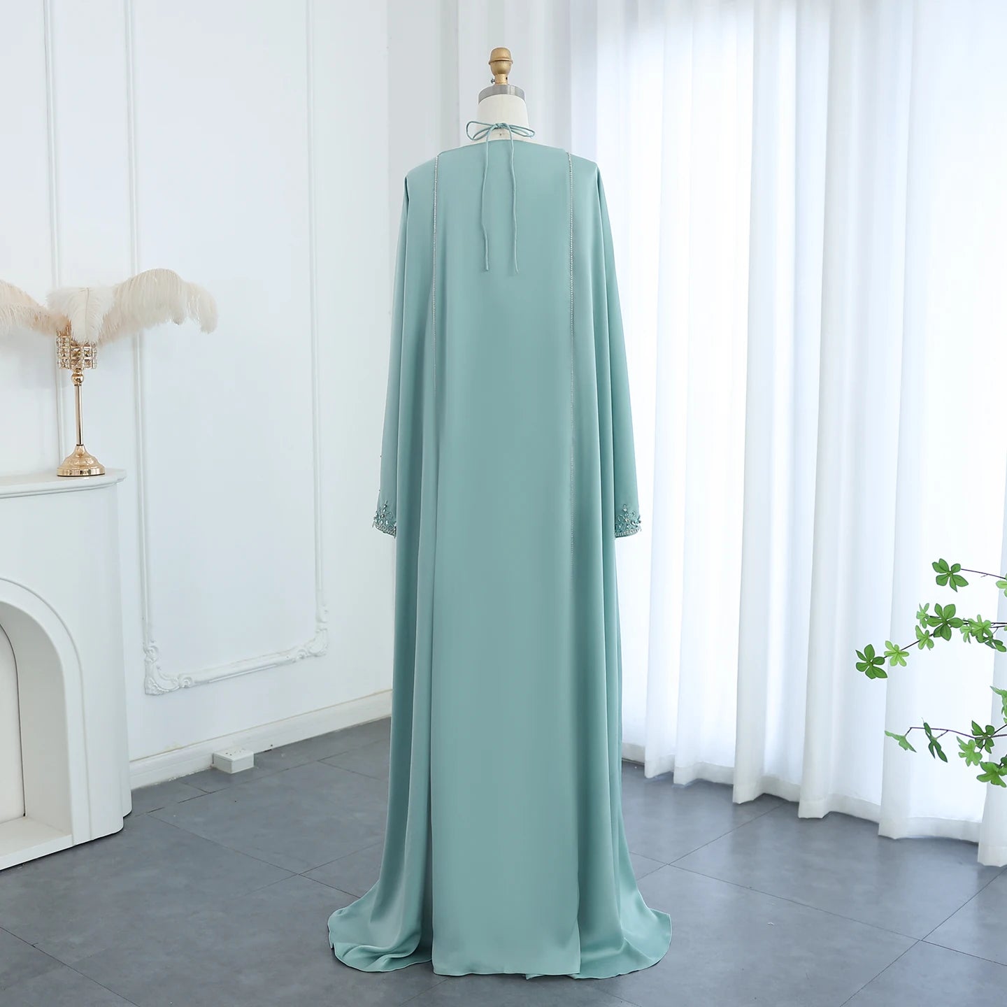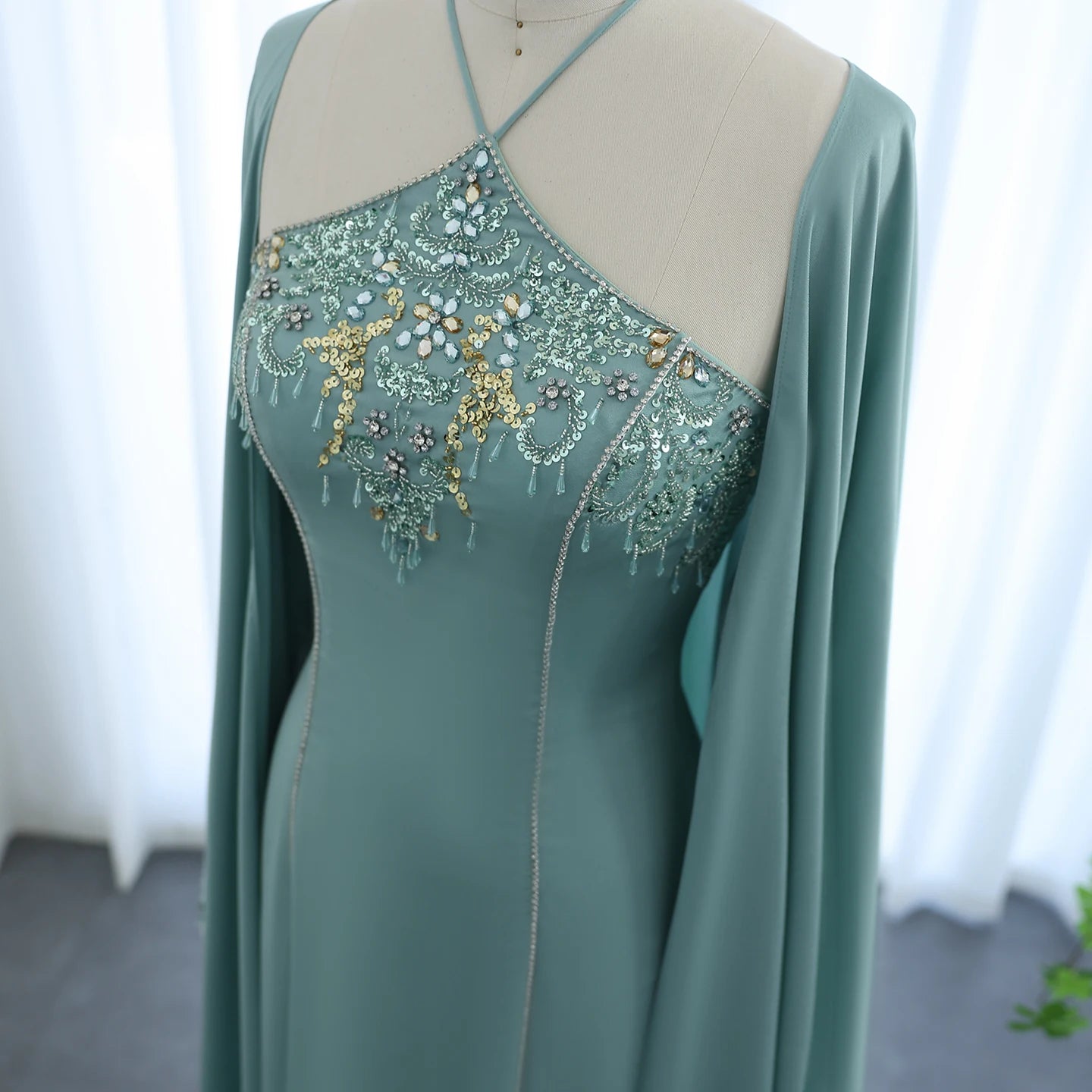 Vestido de Festa Jade com Pedrarias e Capa Luxuria - Modelo Especial