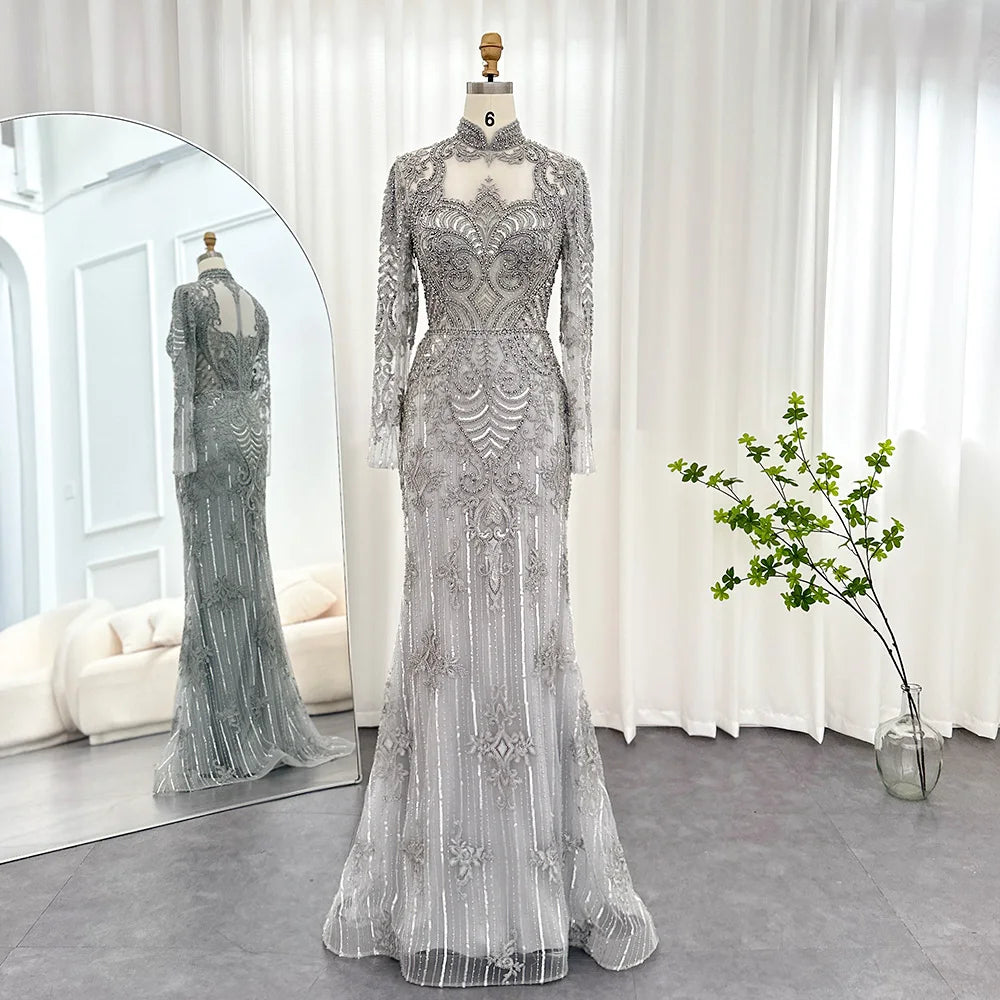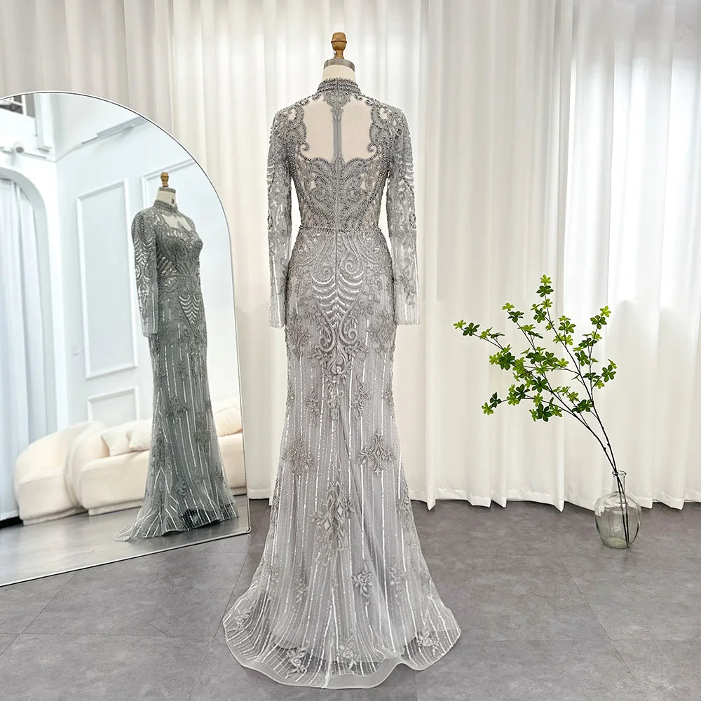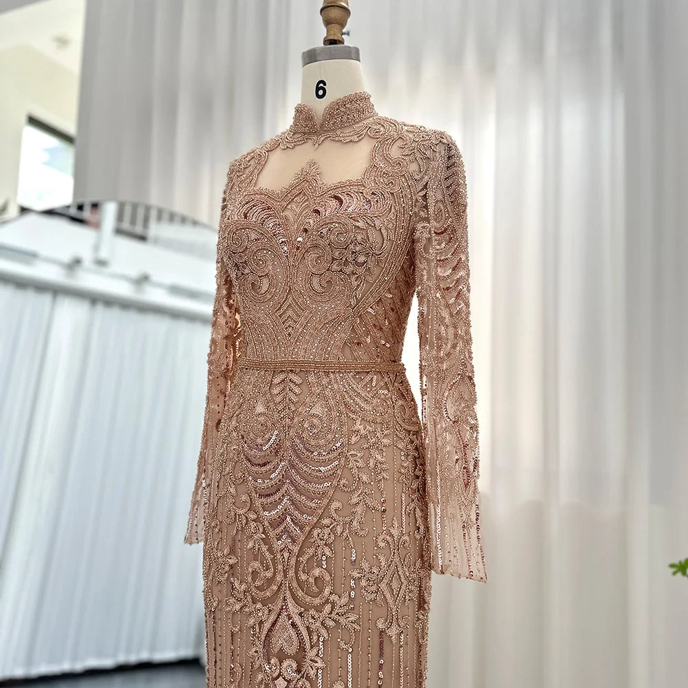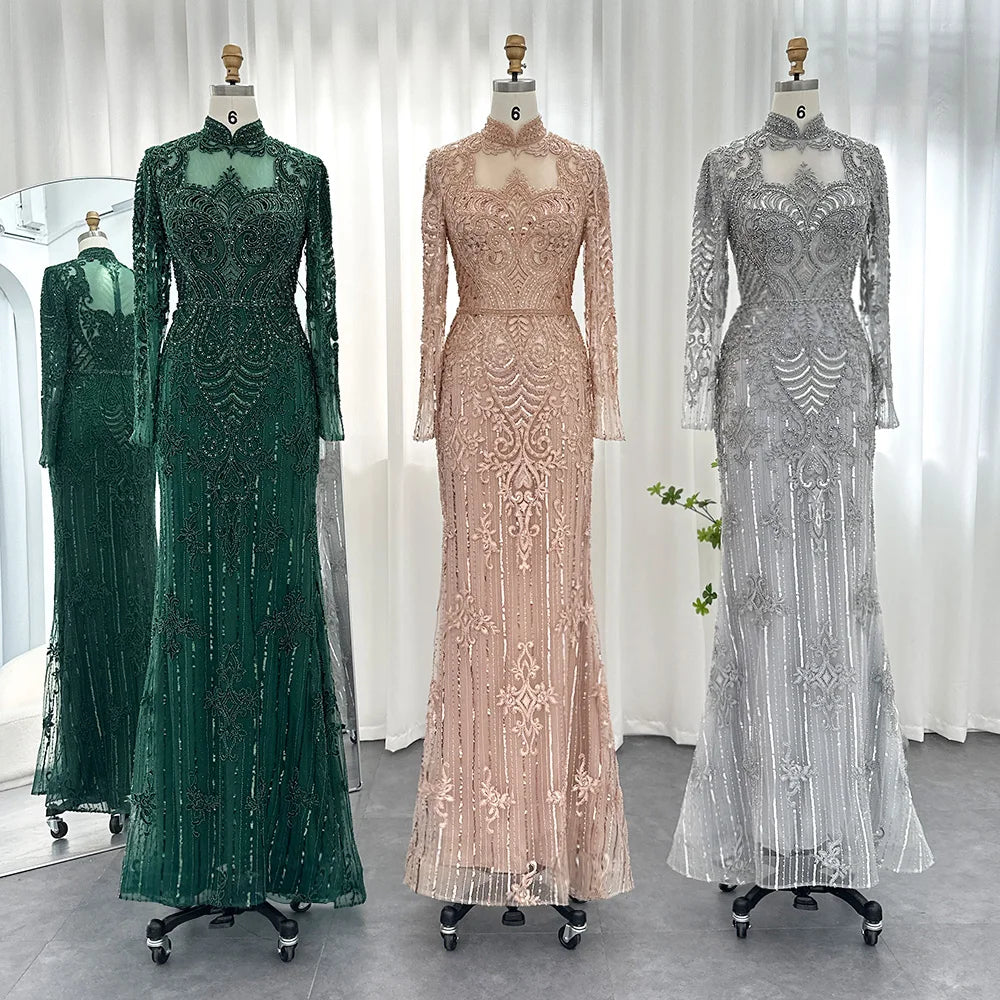 Vestido de Festa Longo Charmoso com Manga Longa e Brilho - Modelo Especial