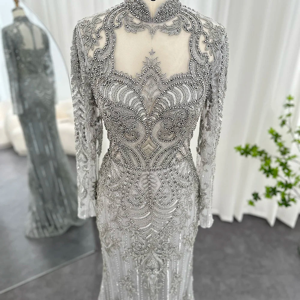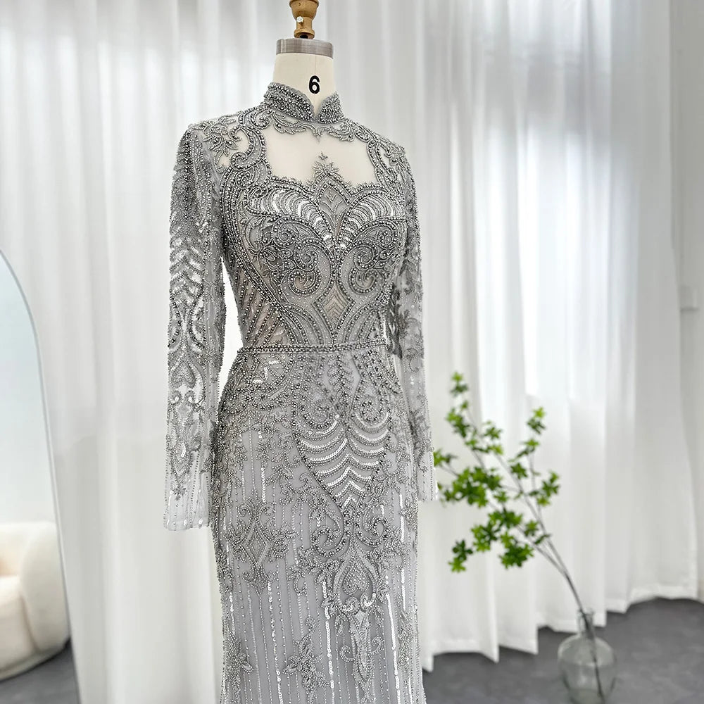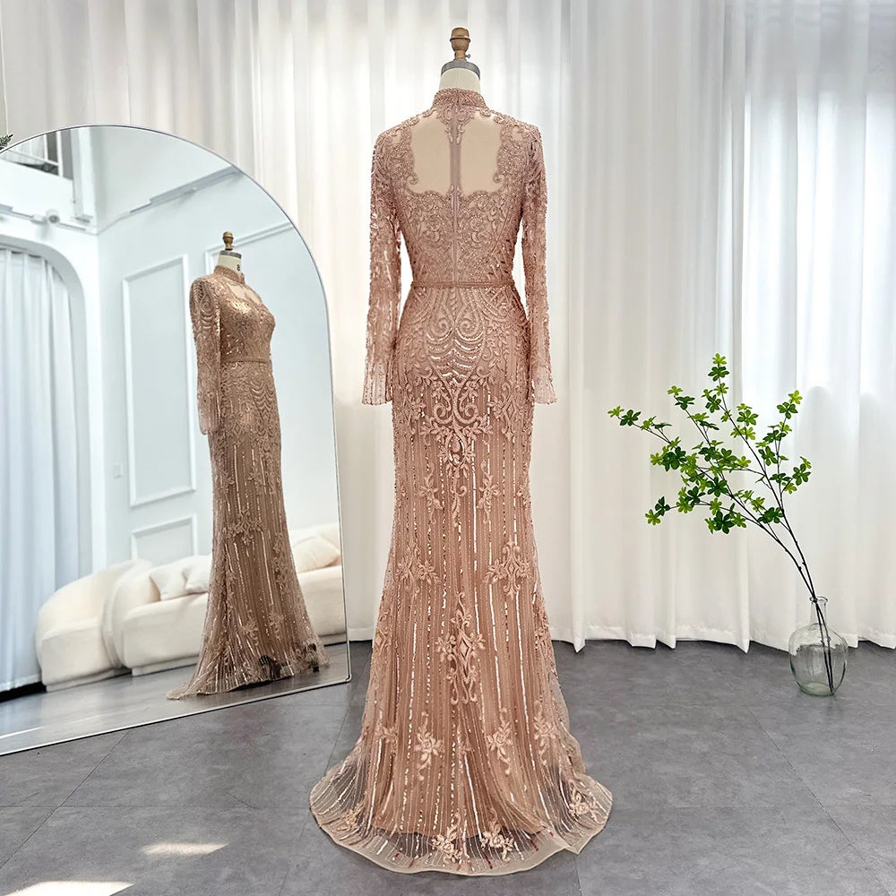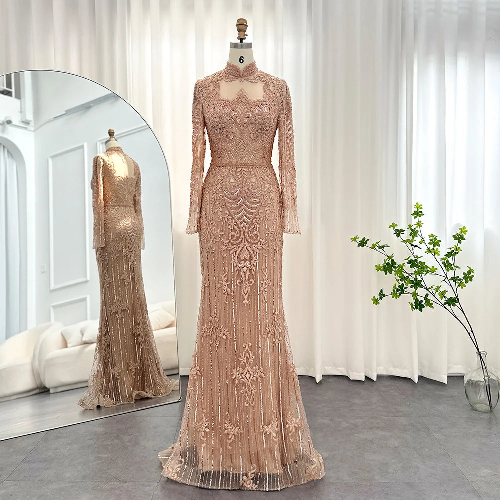 Vestido de Festa Longo Charmoso com Manga Longa e Brilho - Modelo Especial