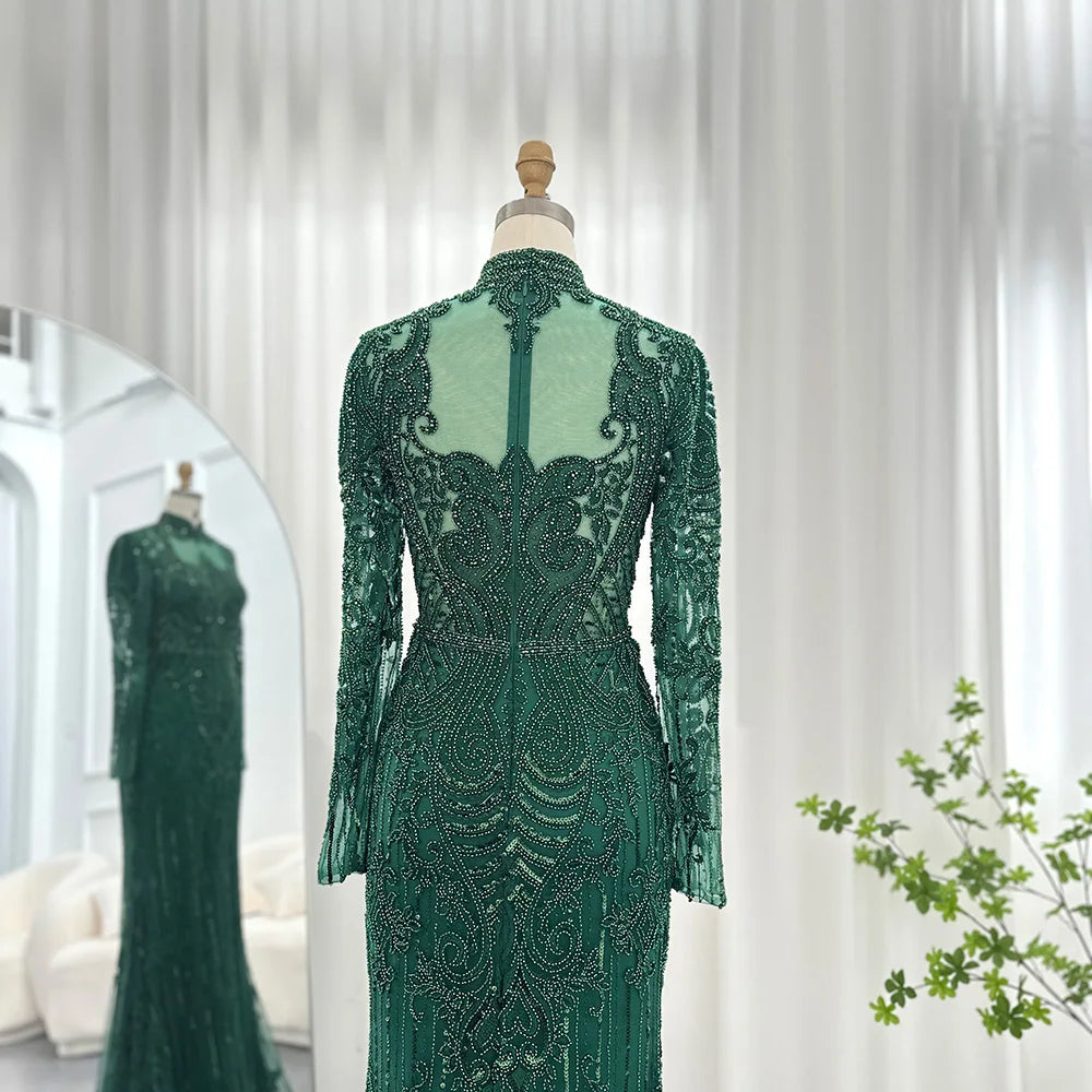 Vestido de Festa Maxi Luxo Adornado em Cristais com Capa Detalhada