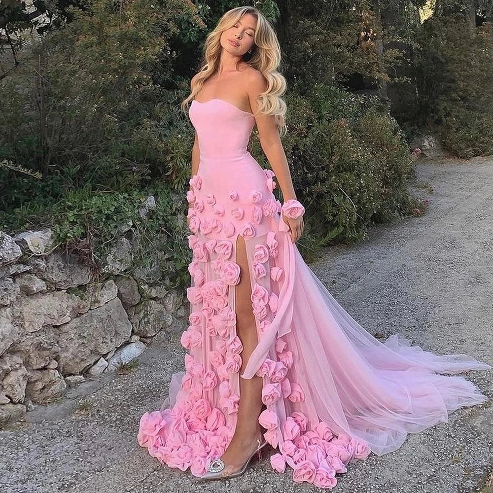 Vestido de Festa Luxo Maxi Flor Decorado em Camadas