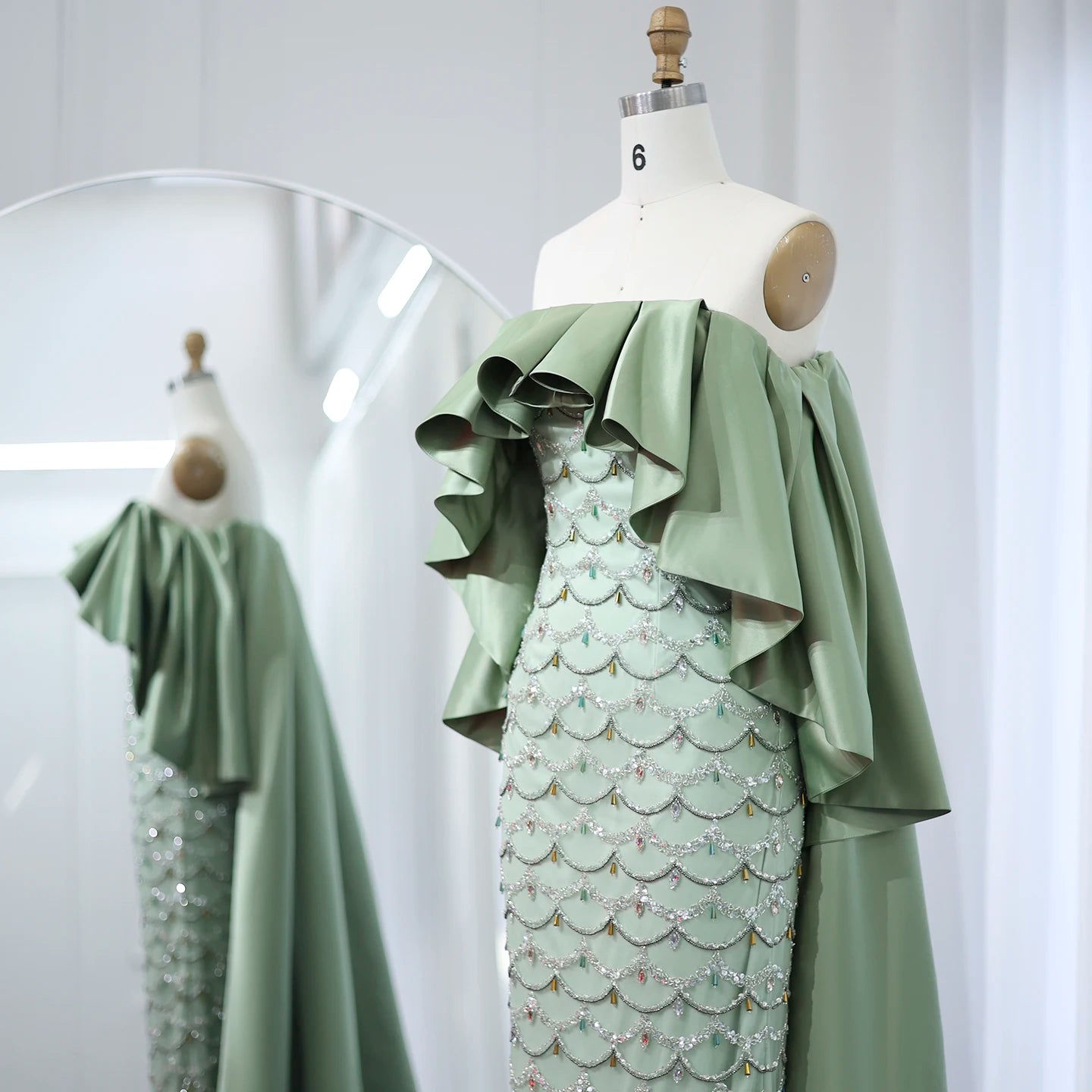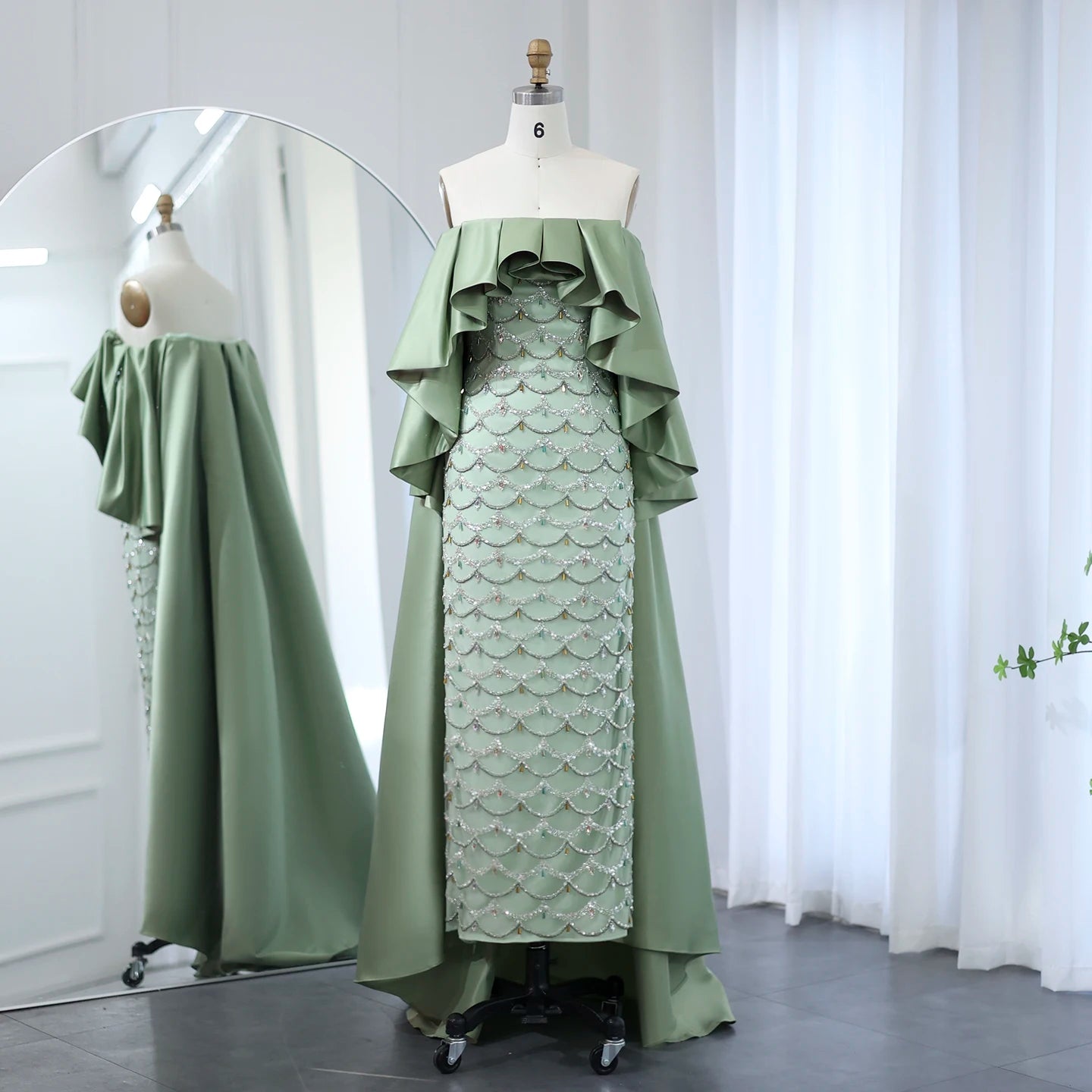 Vestido de Festa Luxuoso com Pérolas e Capa