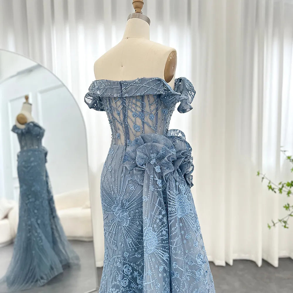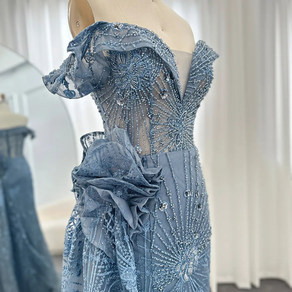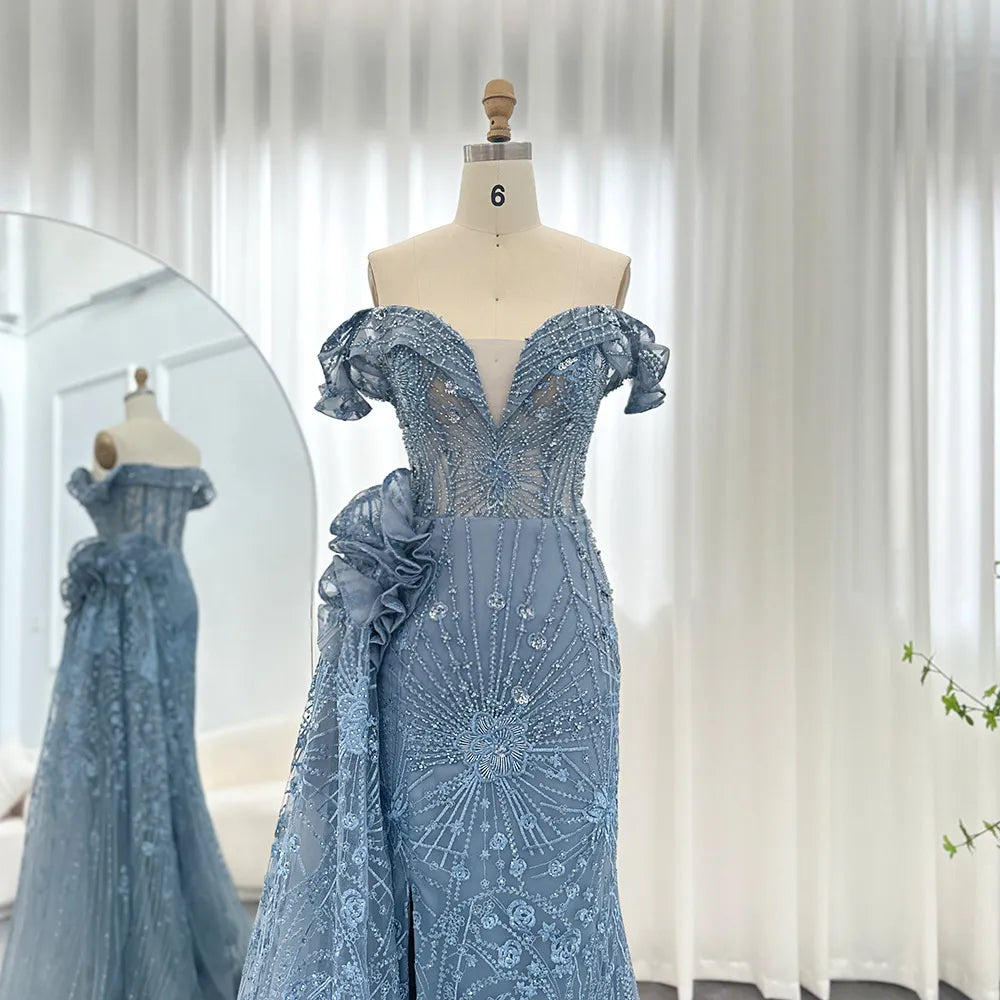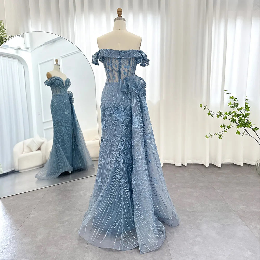 Vestido de Festa Longo Overskirt Azul Empoeirado