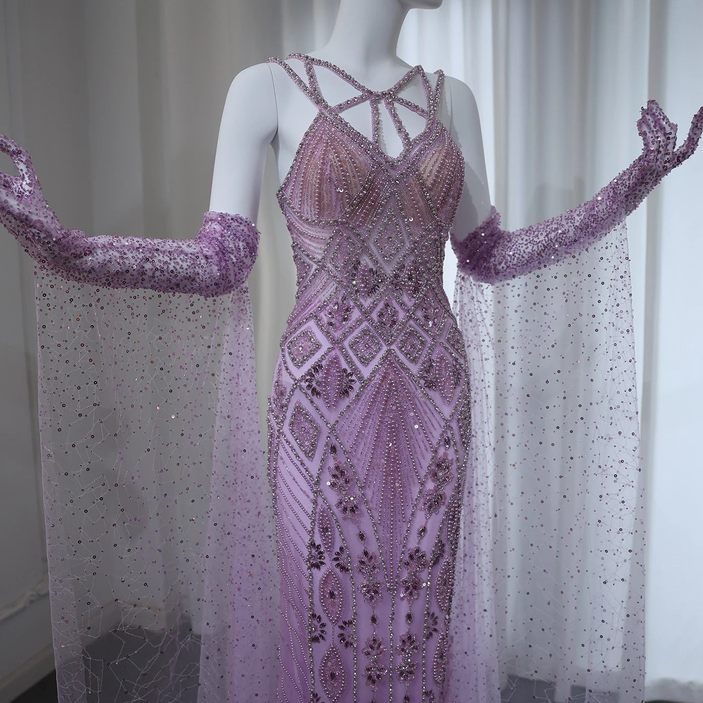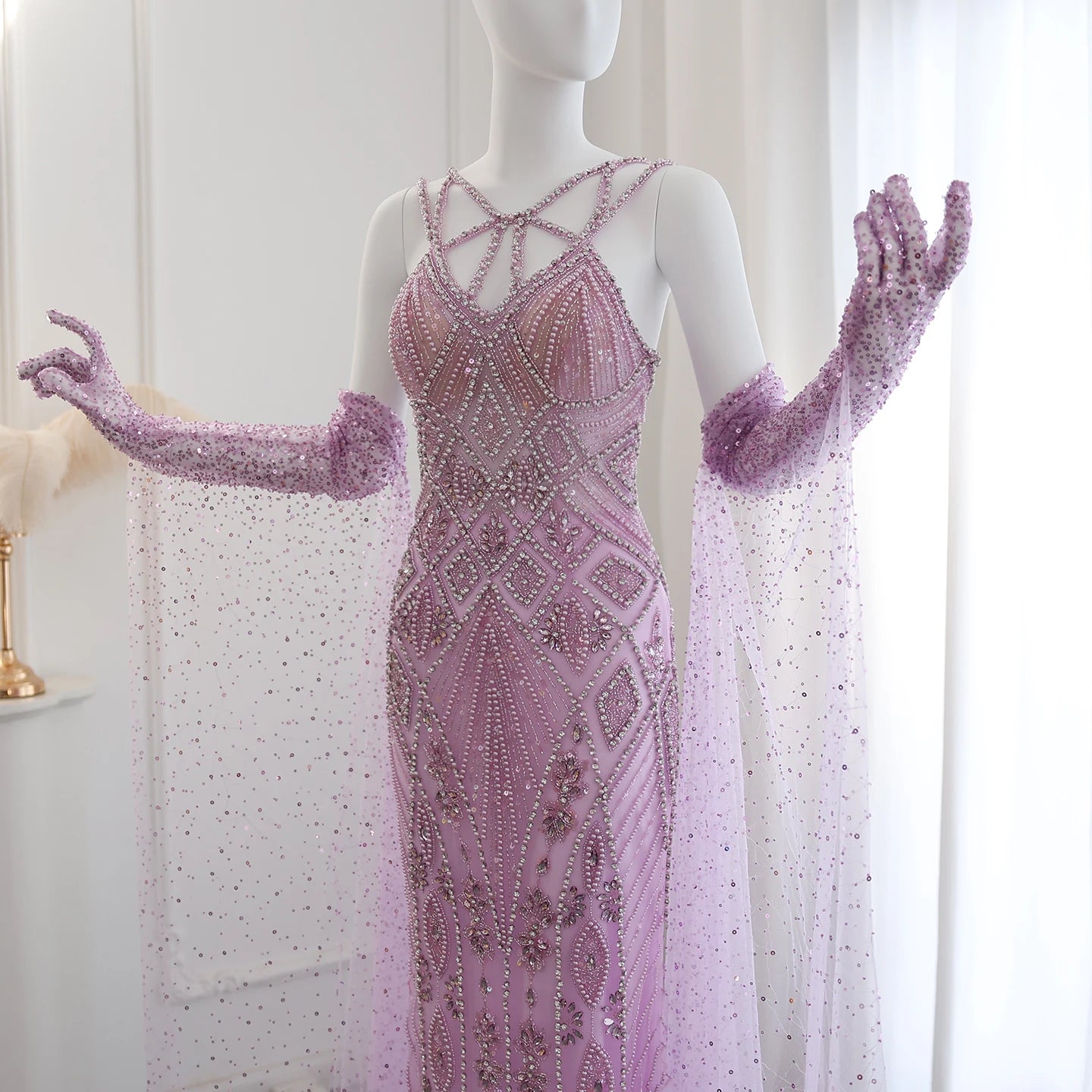 Vestido de Festa Longo Decorado com Strass e Luvas Adornadas - Modelo Especial