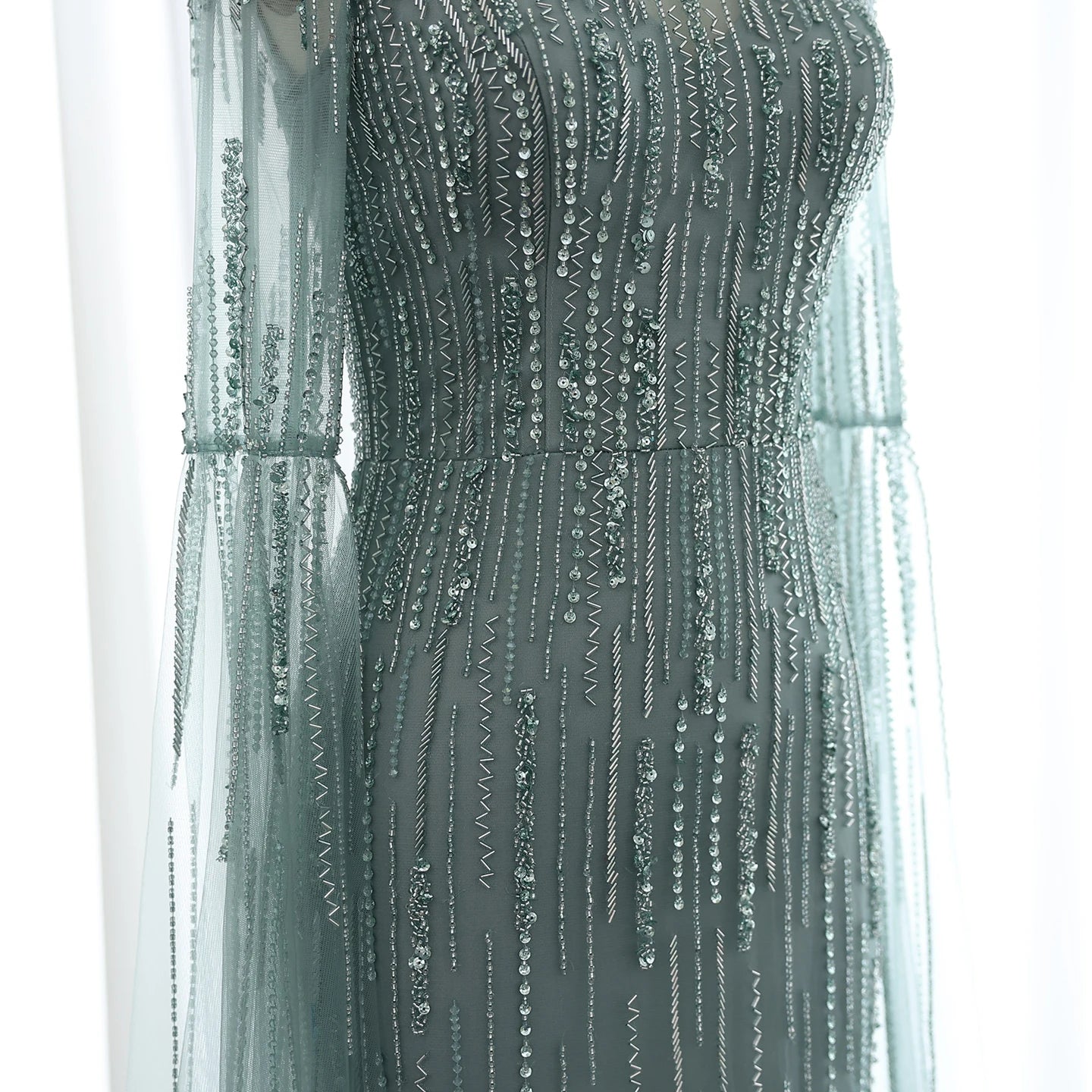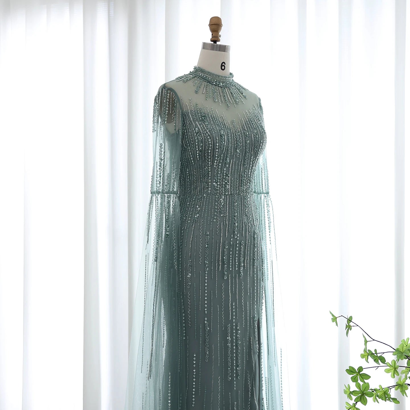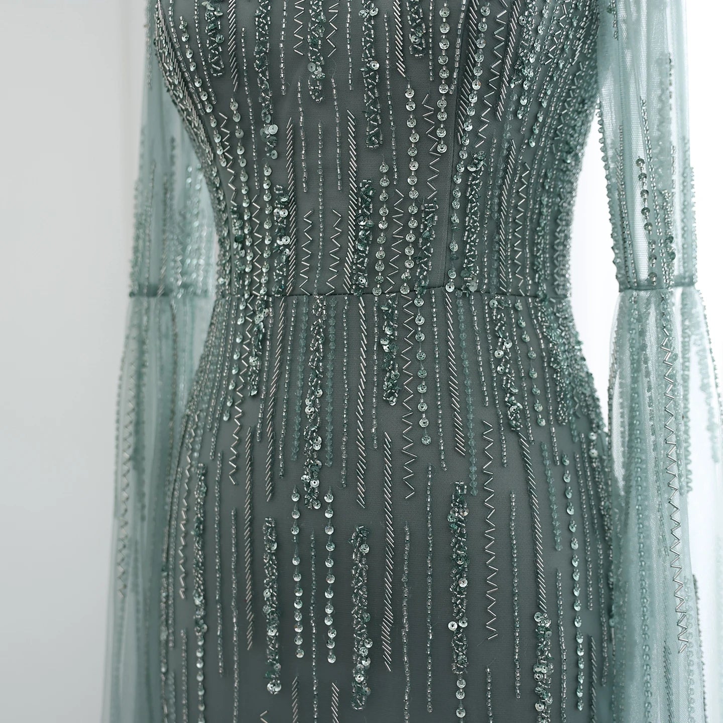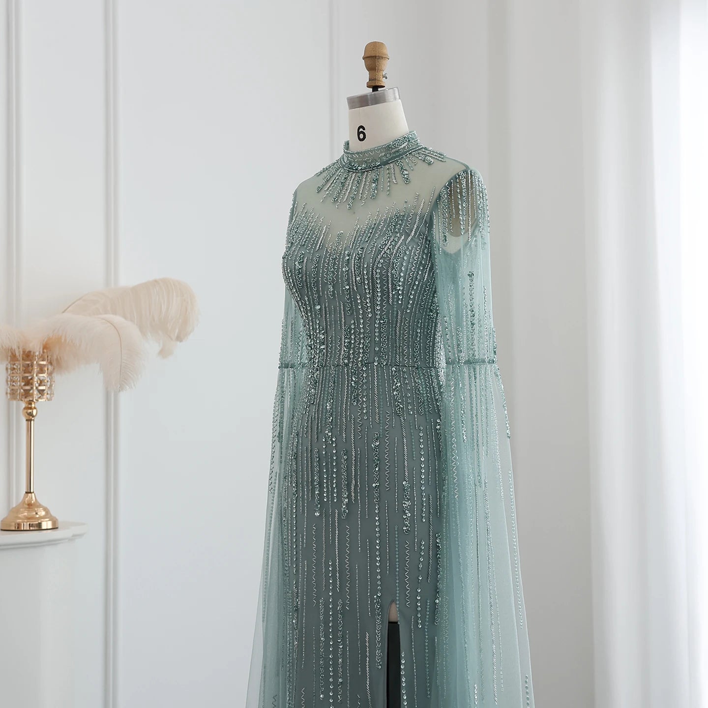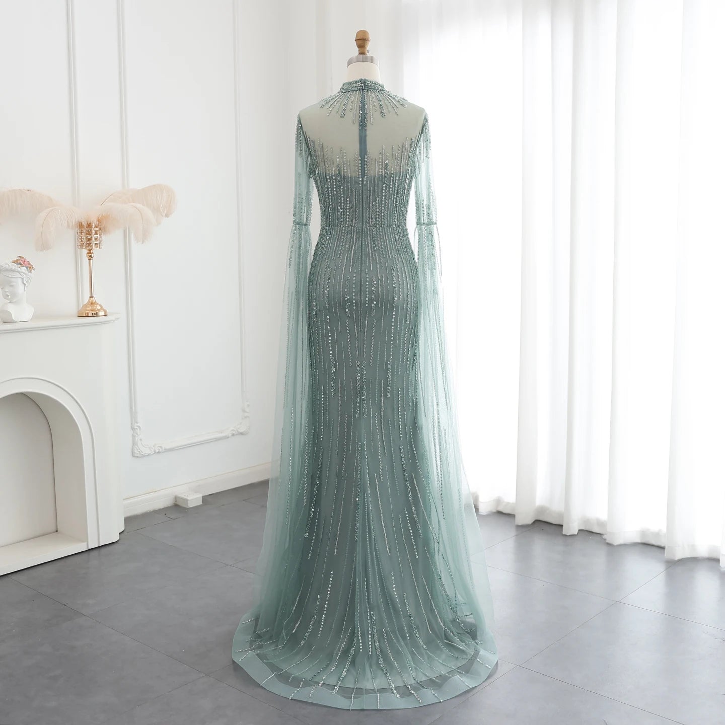 Vestido de Festa Maxi Luxo Adornado em Cristais com Capa Detalhada