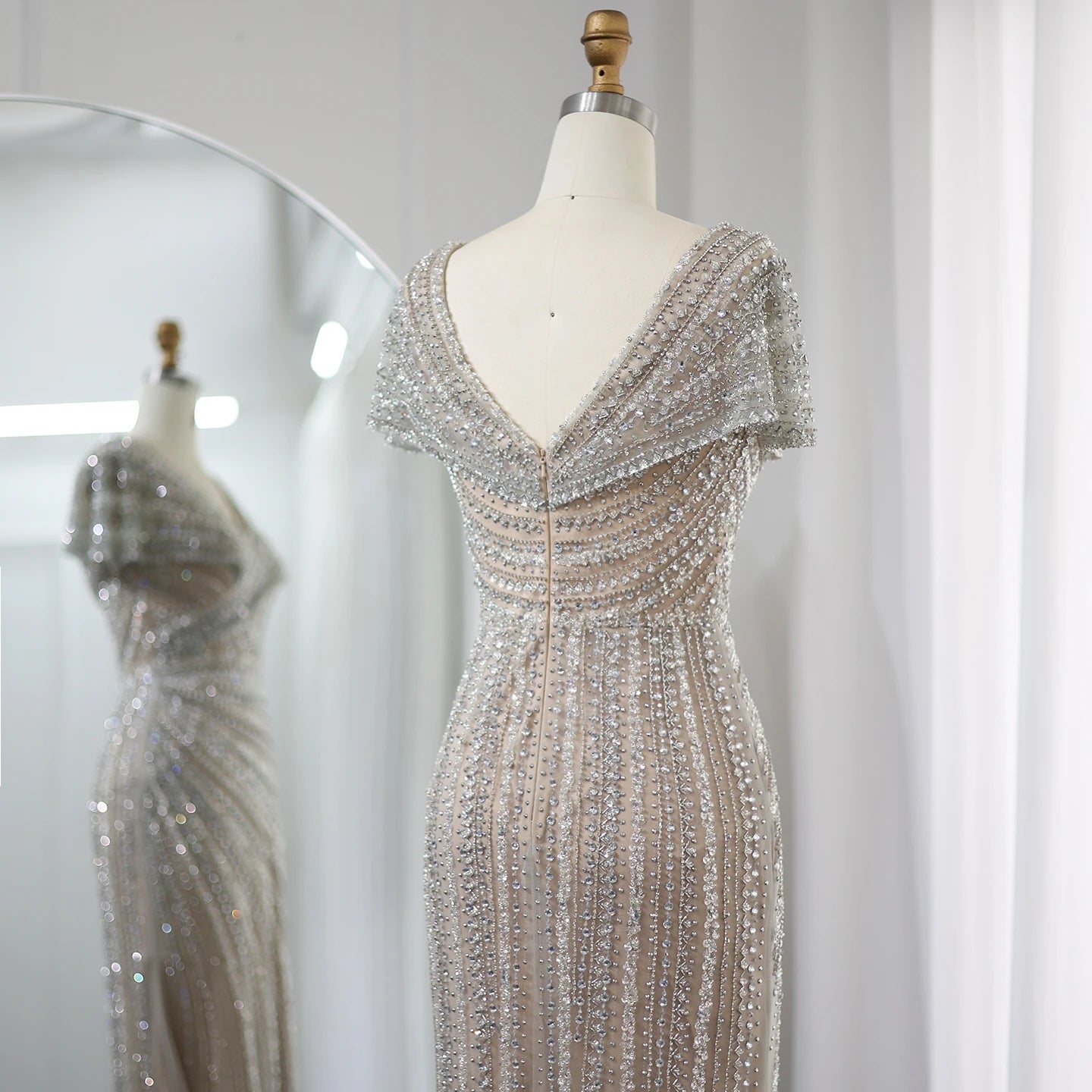 Vestido de Festa Maxi Luxo Adornado em Cristais com Capa Detalhada