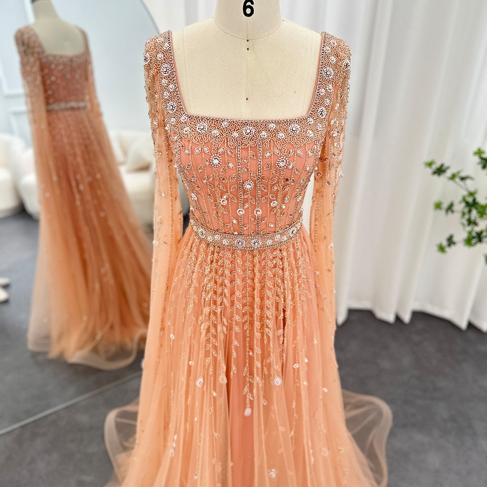 Vestido de Festa Luxuoso com Pérolas e Capa