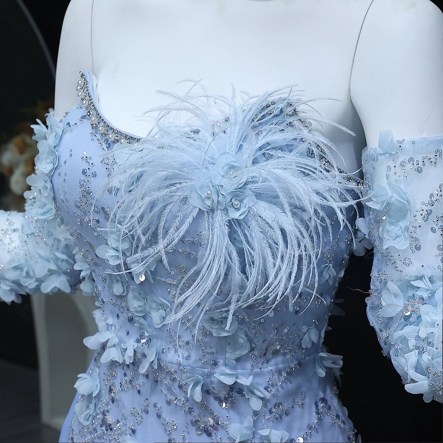 O Vestido de Festa com Flores 3D e Plumas Charmosas é uma peça de elegância única, perfeita para eventos formais e noites inesquecíveis. Confeccionado em tule de alta qualidade, o vestido apresenta uma silhueta sereia que destaca as curvas femininas de maneira sofisticada e graciosa. O design e o decote ousado proporcionam um visual elegante e atemporal, enquanto a cauda adiciona um toque dramático ao conjunto.