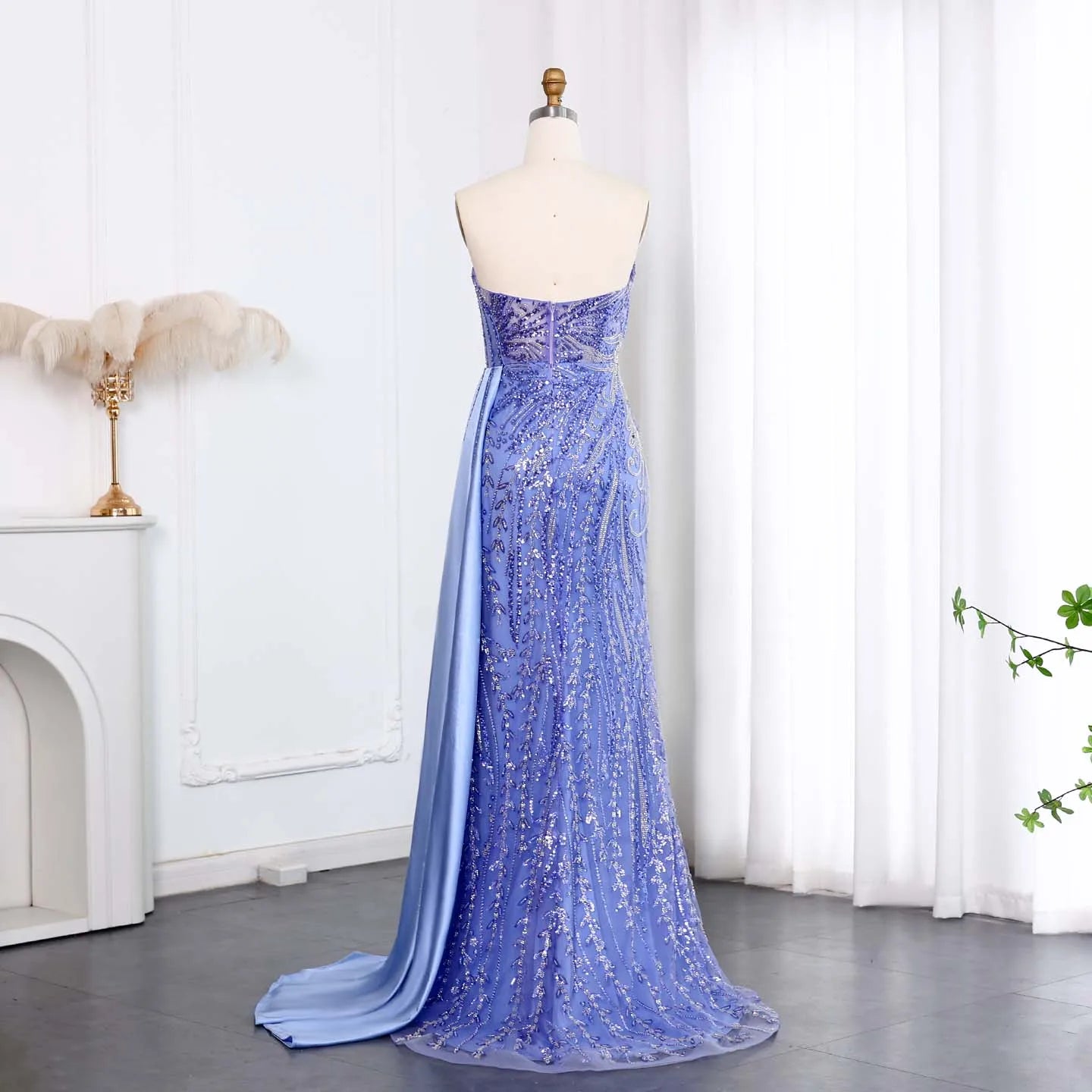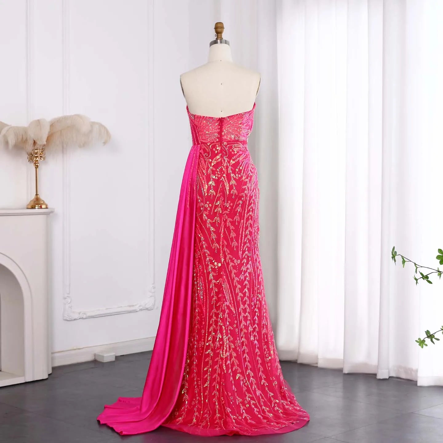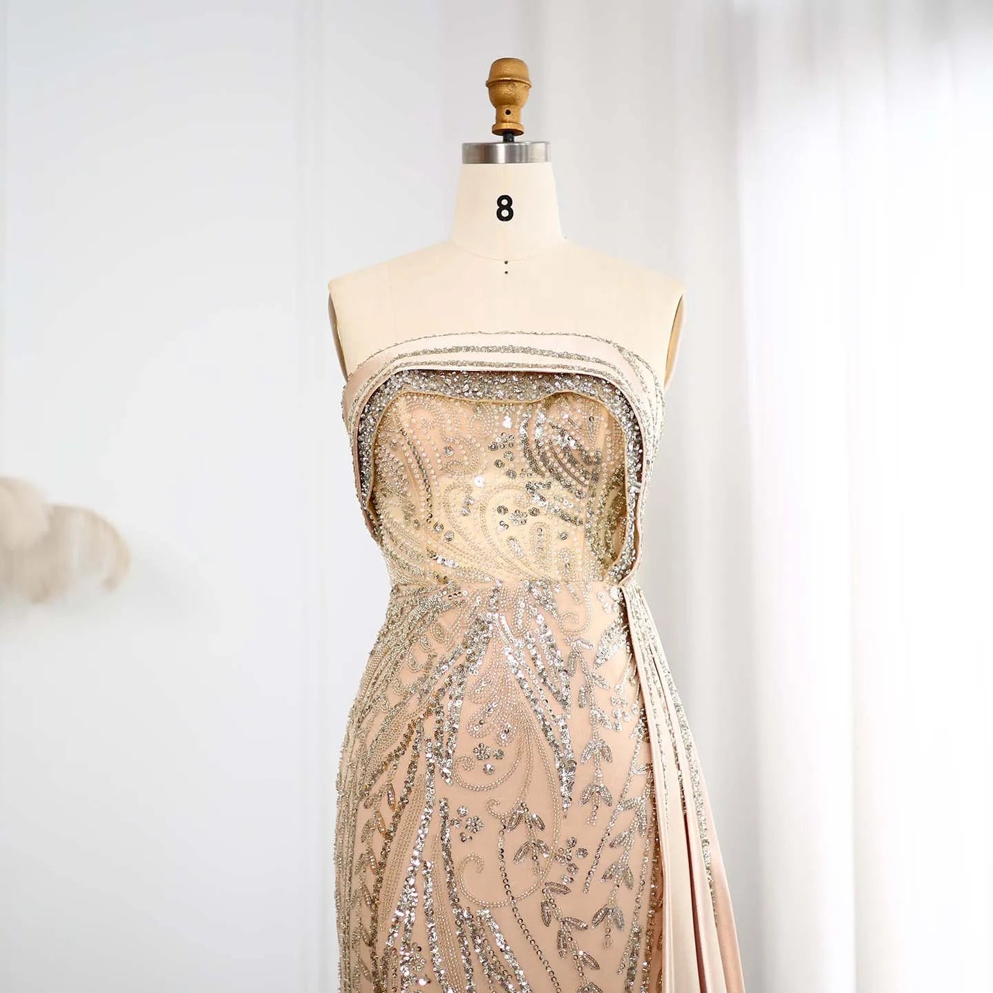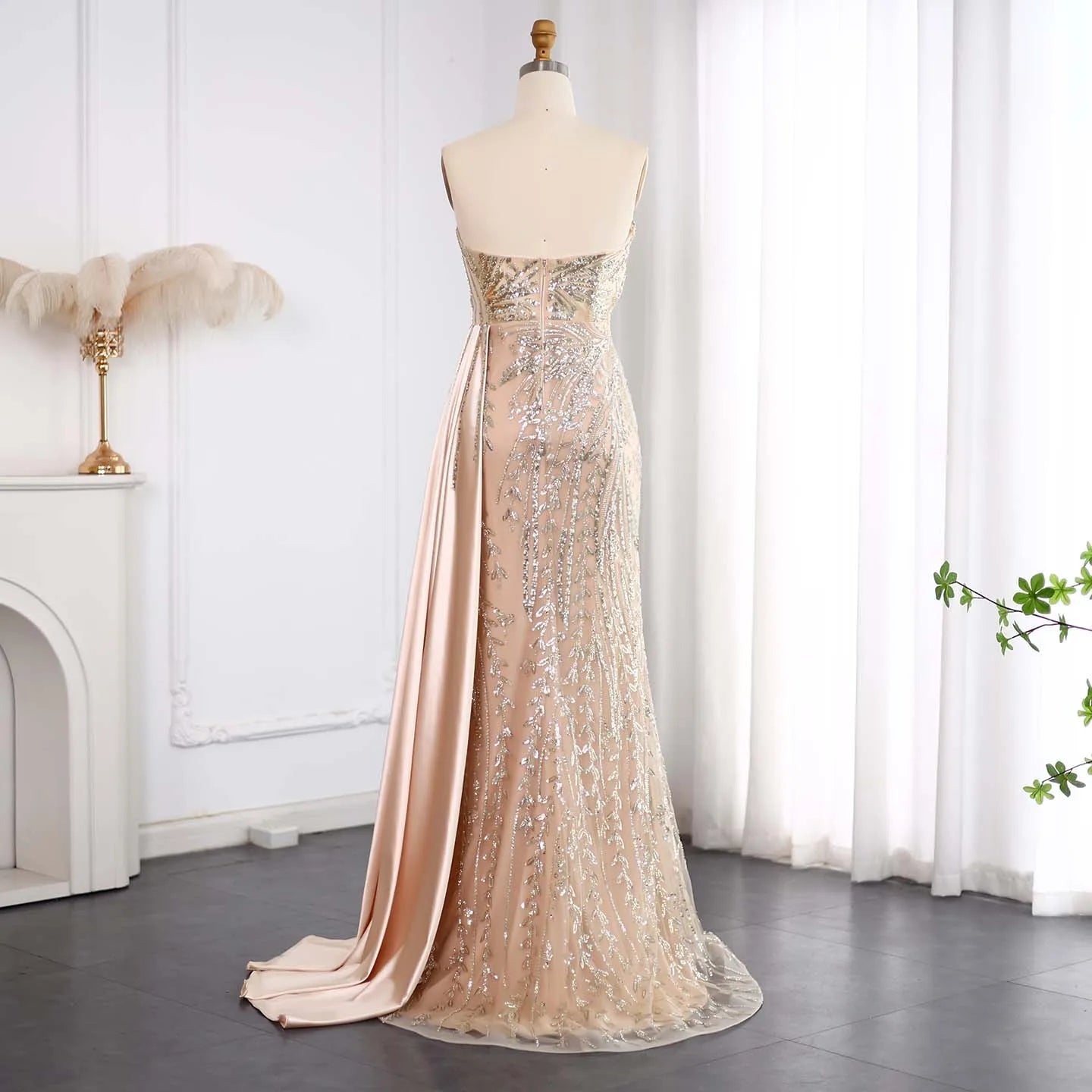 Vestido de Festa Luxuoso com Pérolas e Capa