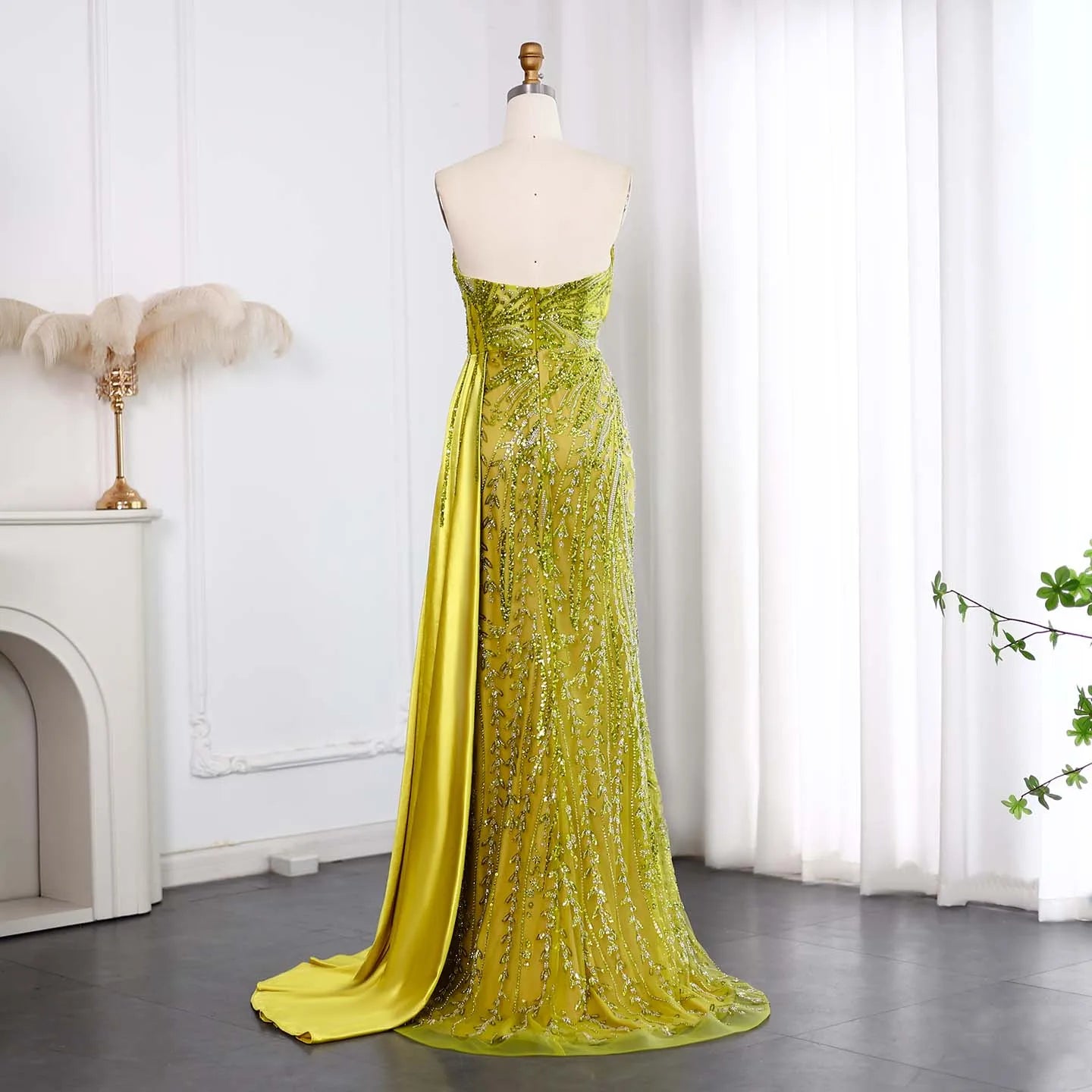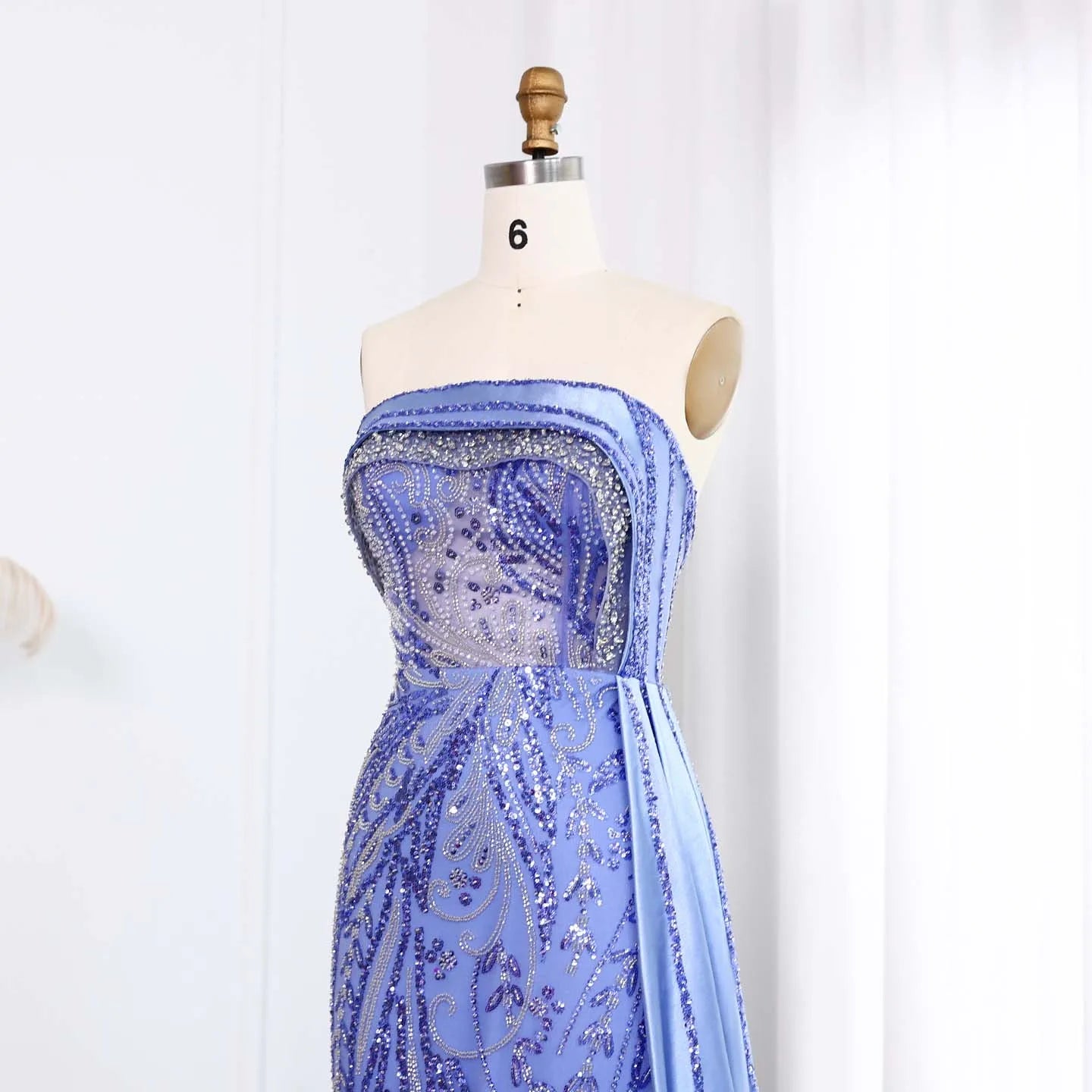 Vestido de Festa Maxi Luxo Adornado em Cristais com Capa Detalhada