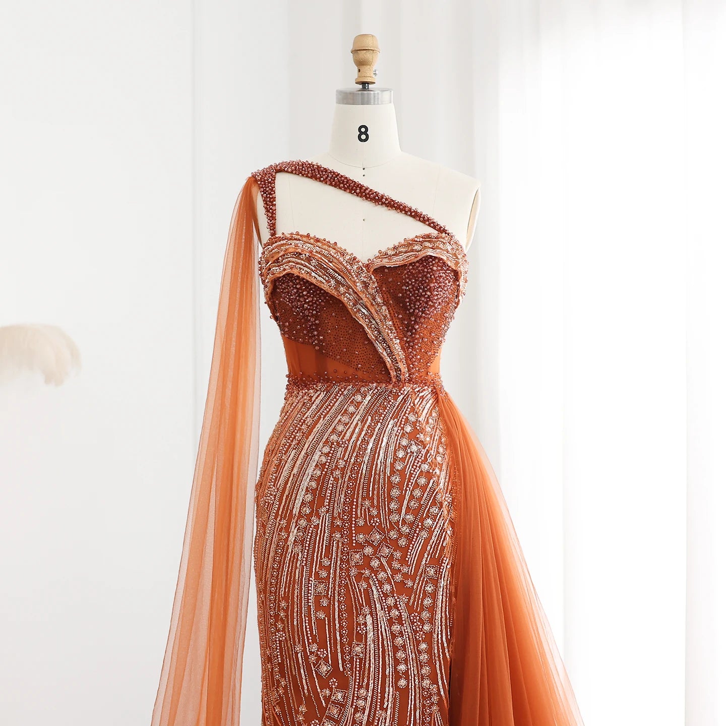 Vestido de Festa Luxuoso com Pérolas e Capa