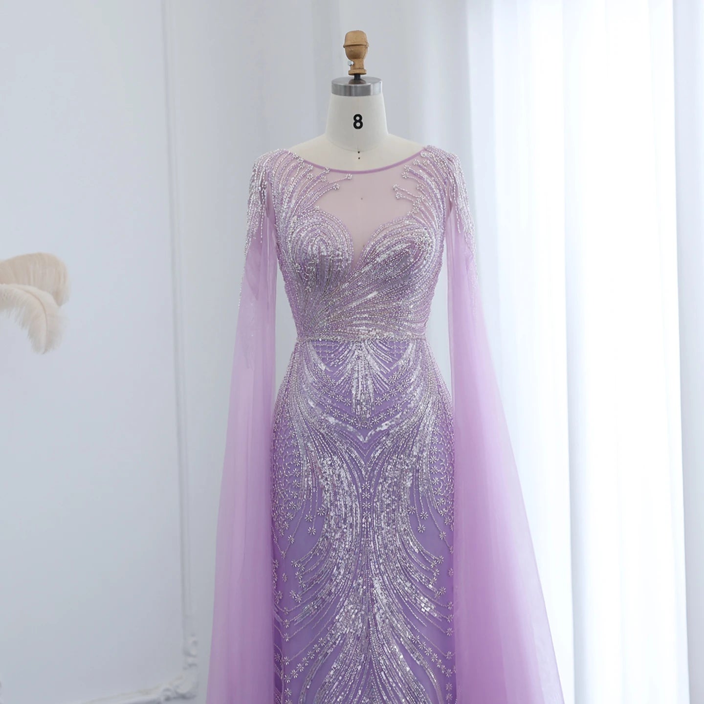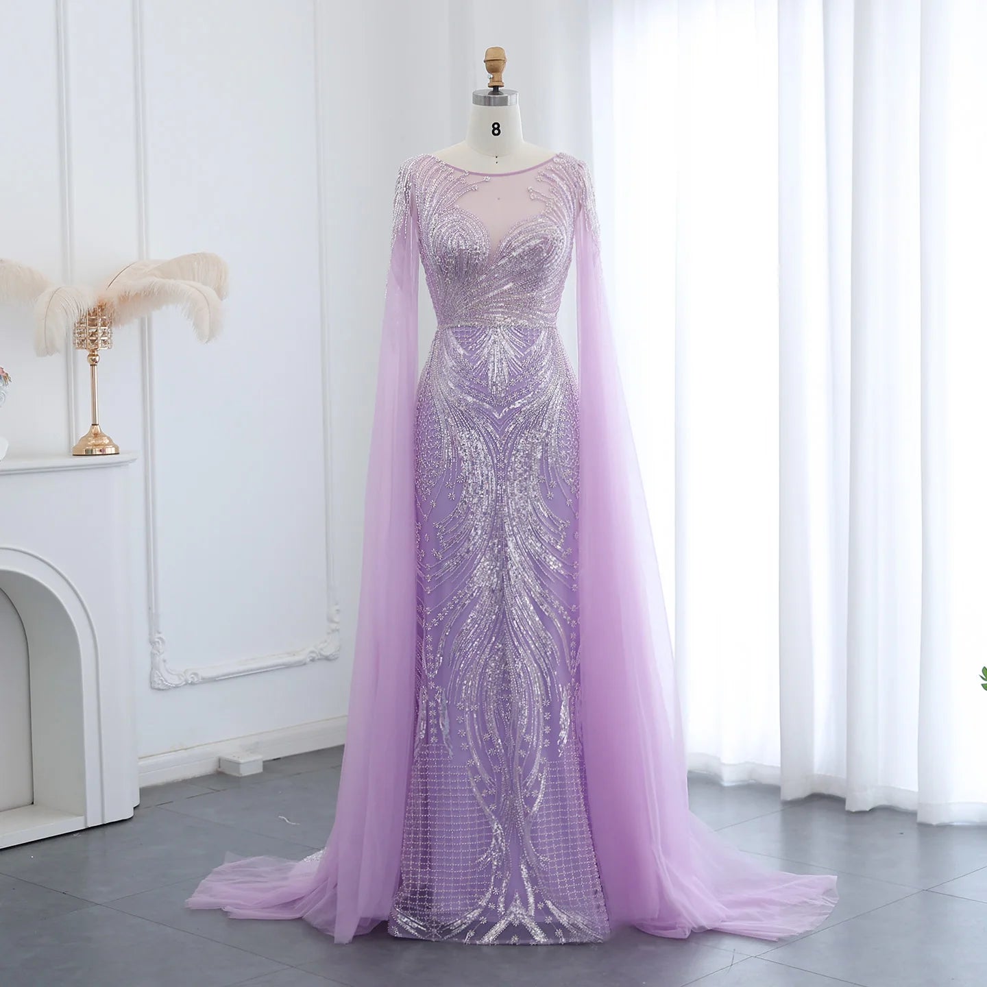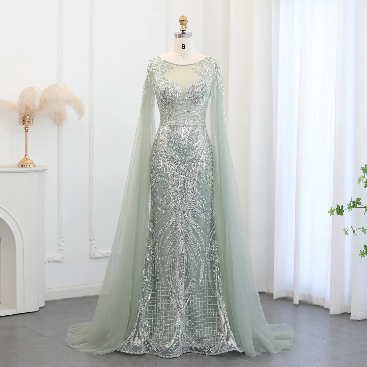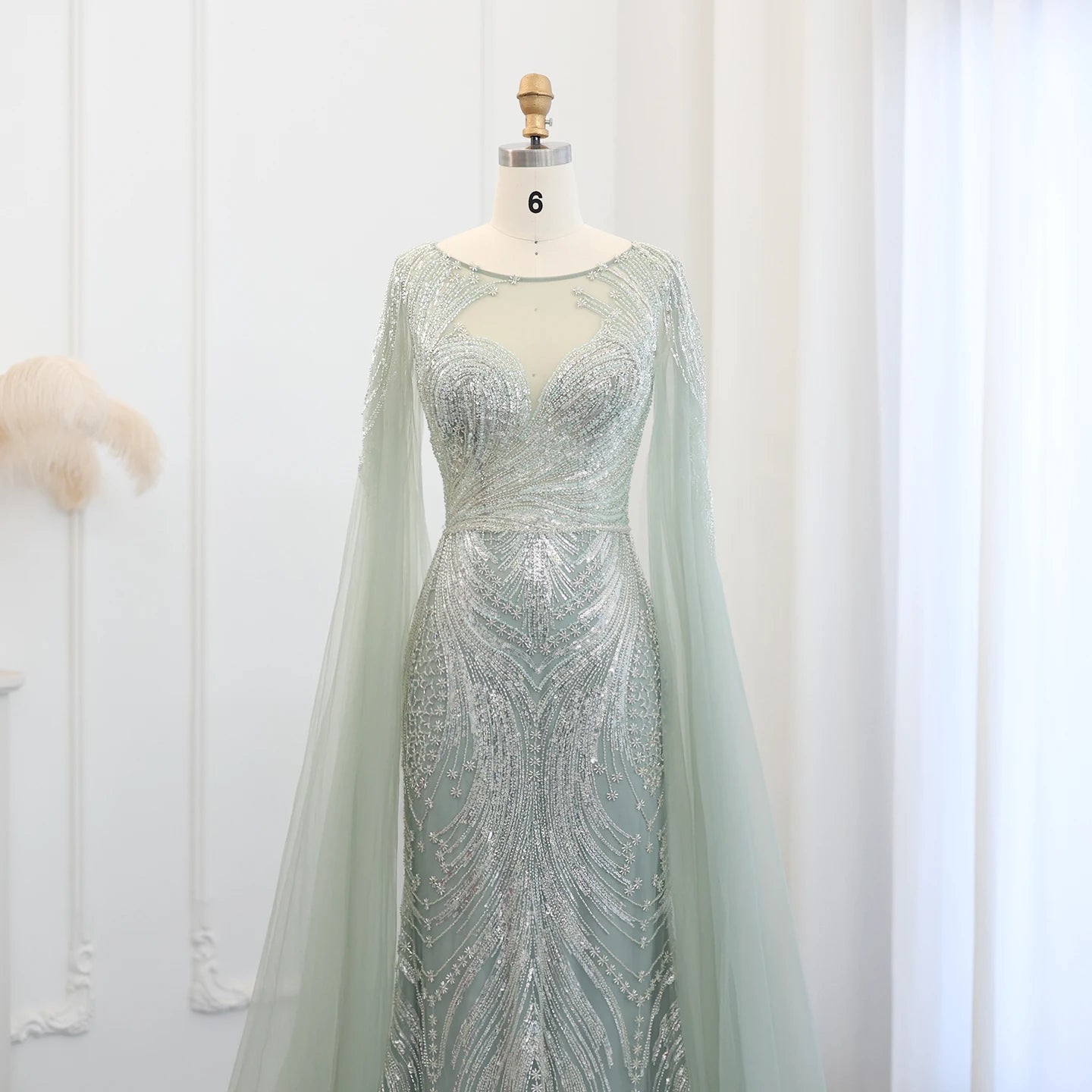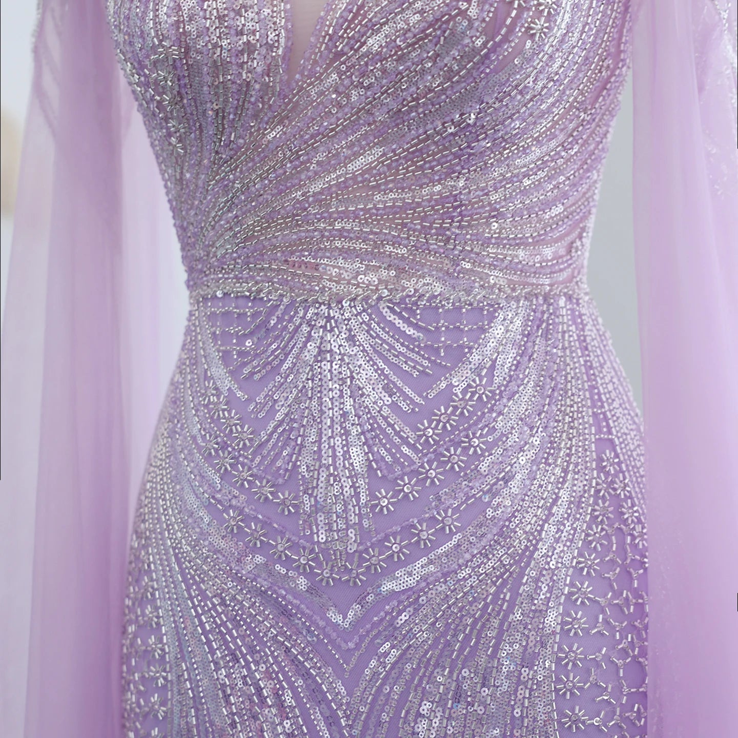 Vestido de Festa Longo Sereia com Capa Fluida em Tule