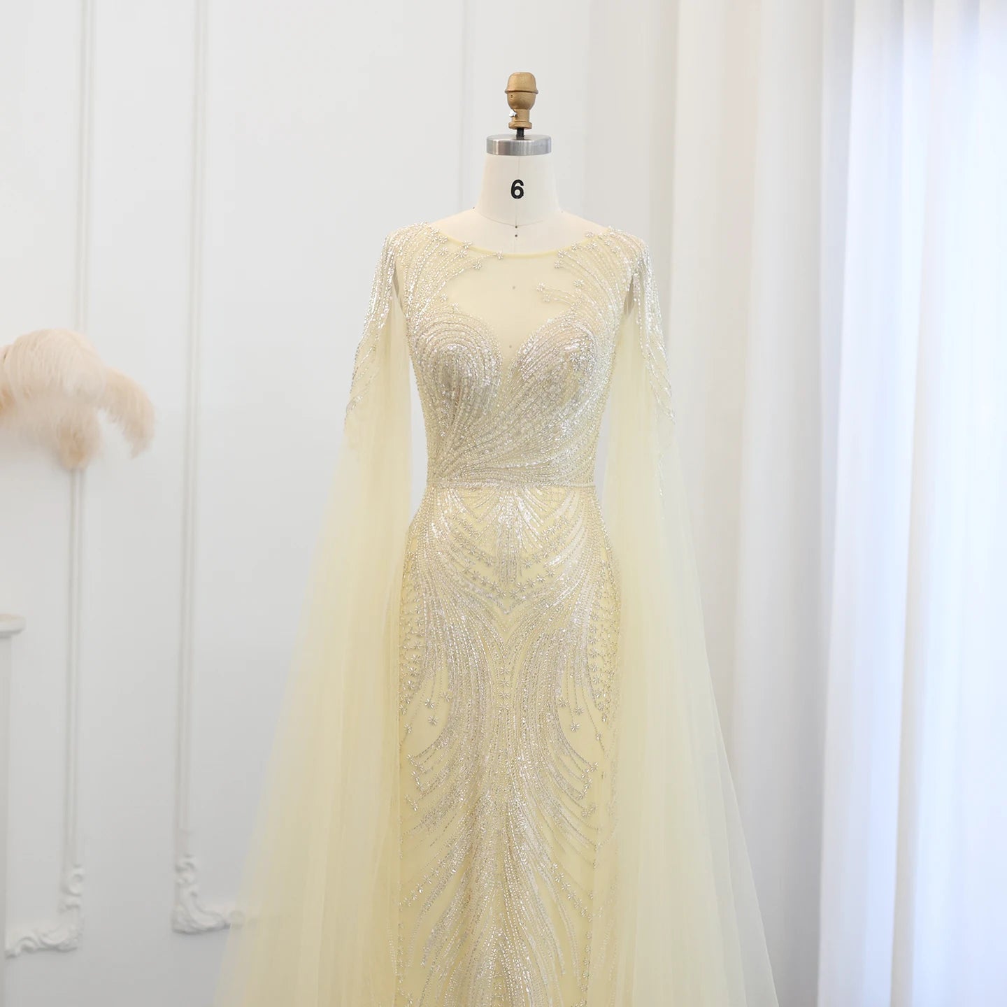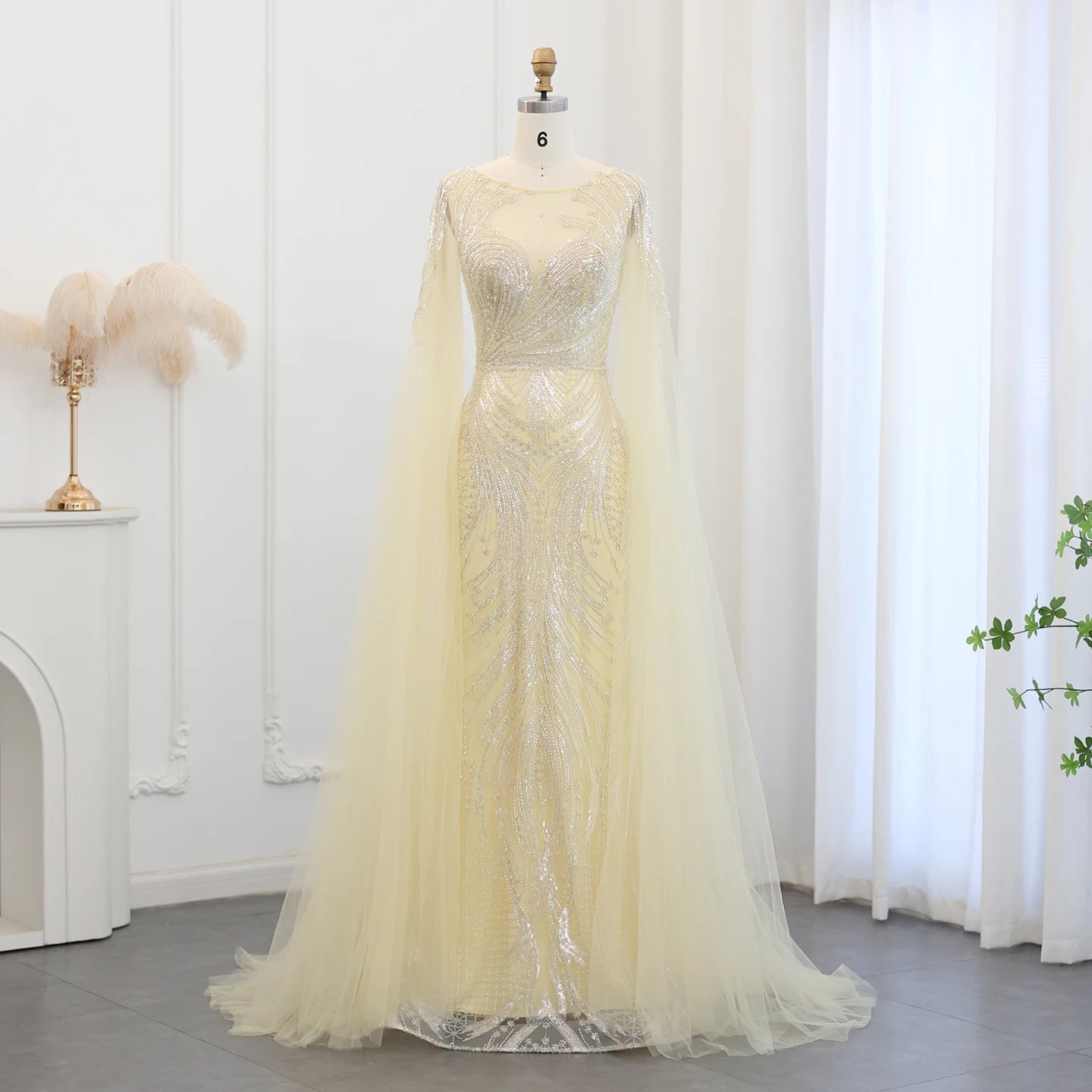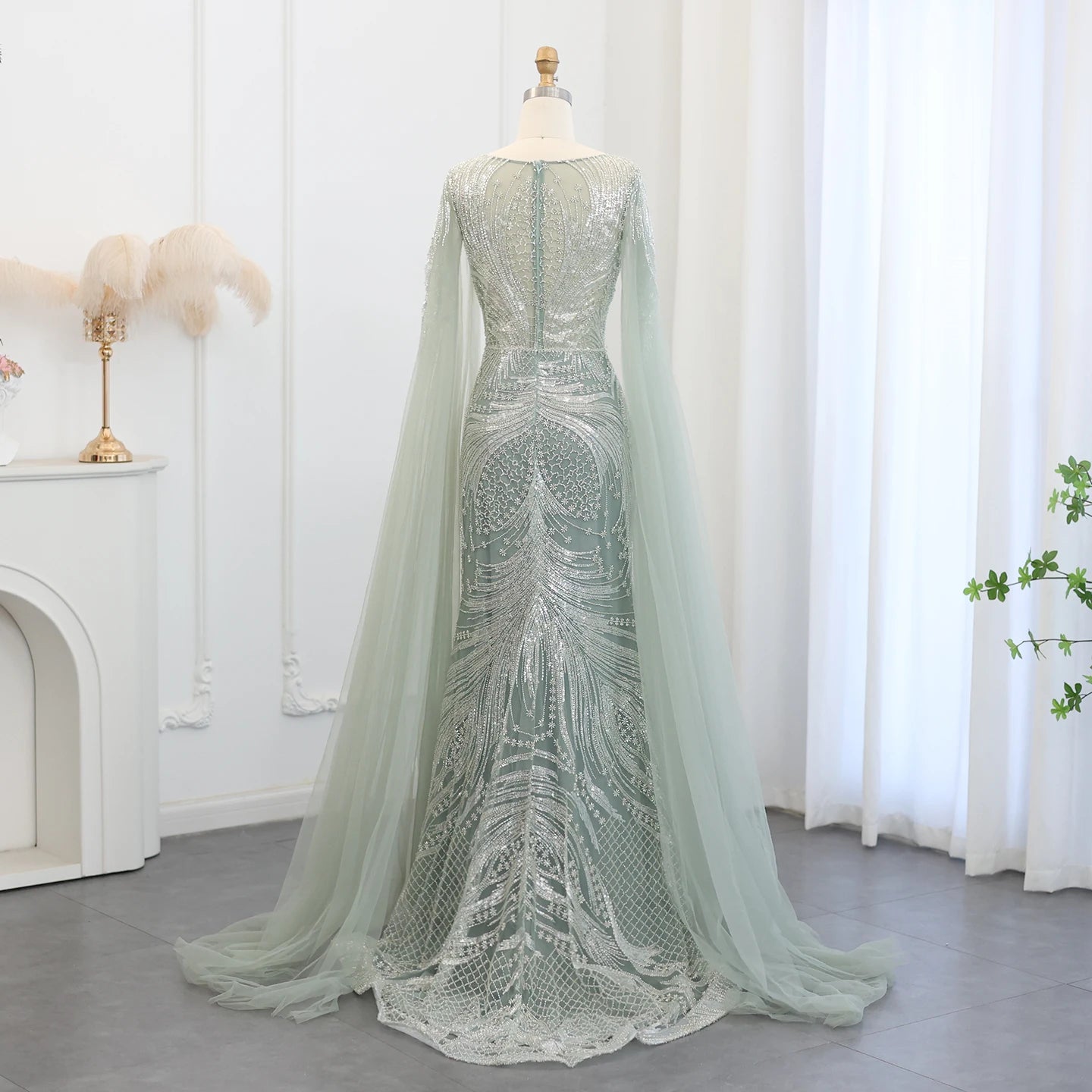 Vestido de Festa Luxuoso com Pérolas e Capa
