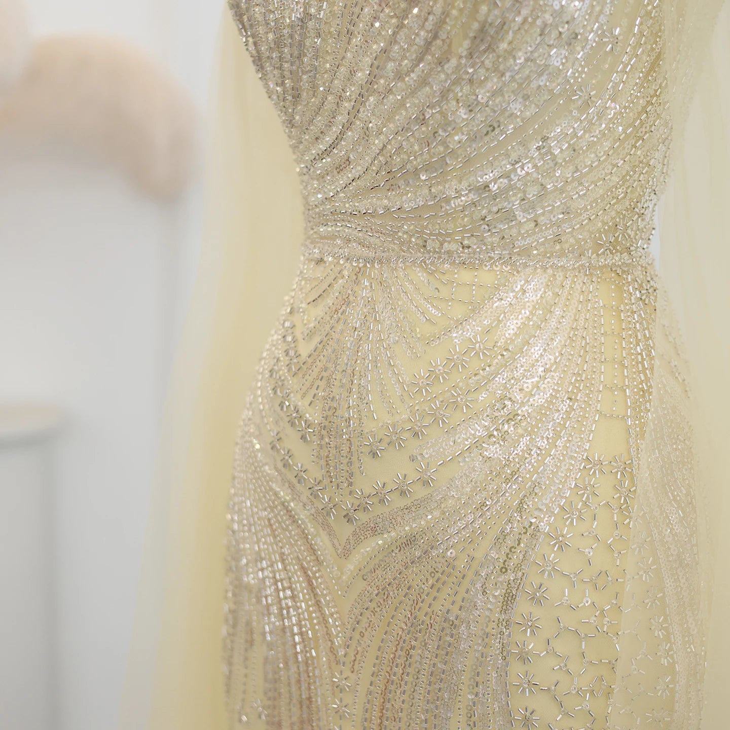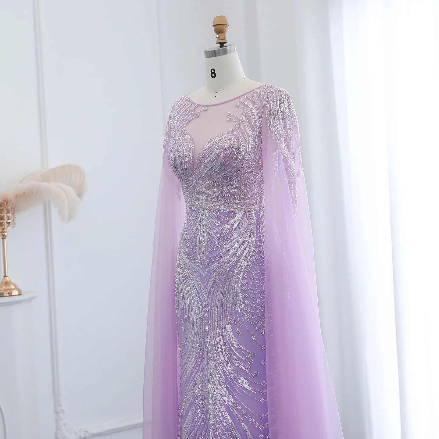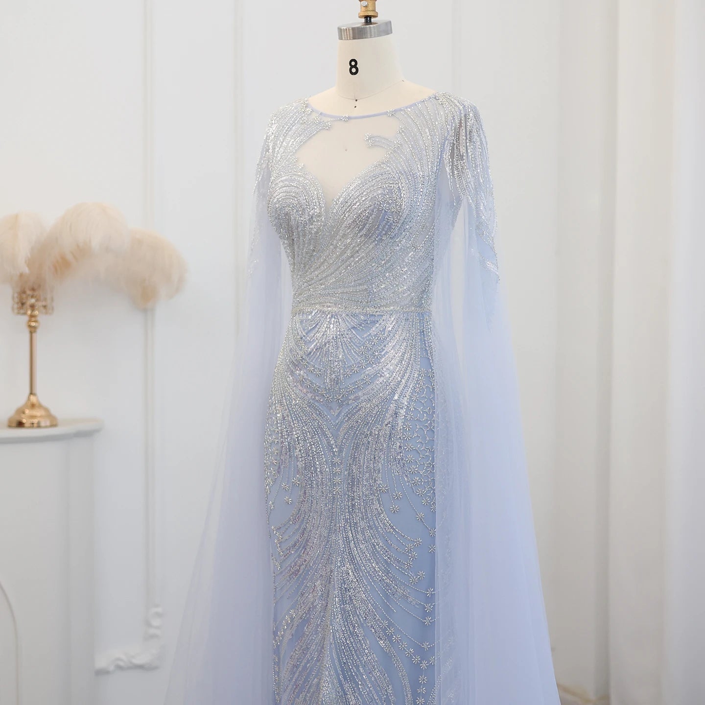 Vestido de Festa Luxuoso com Pérolas e Capa