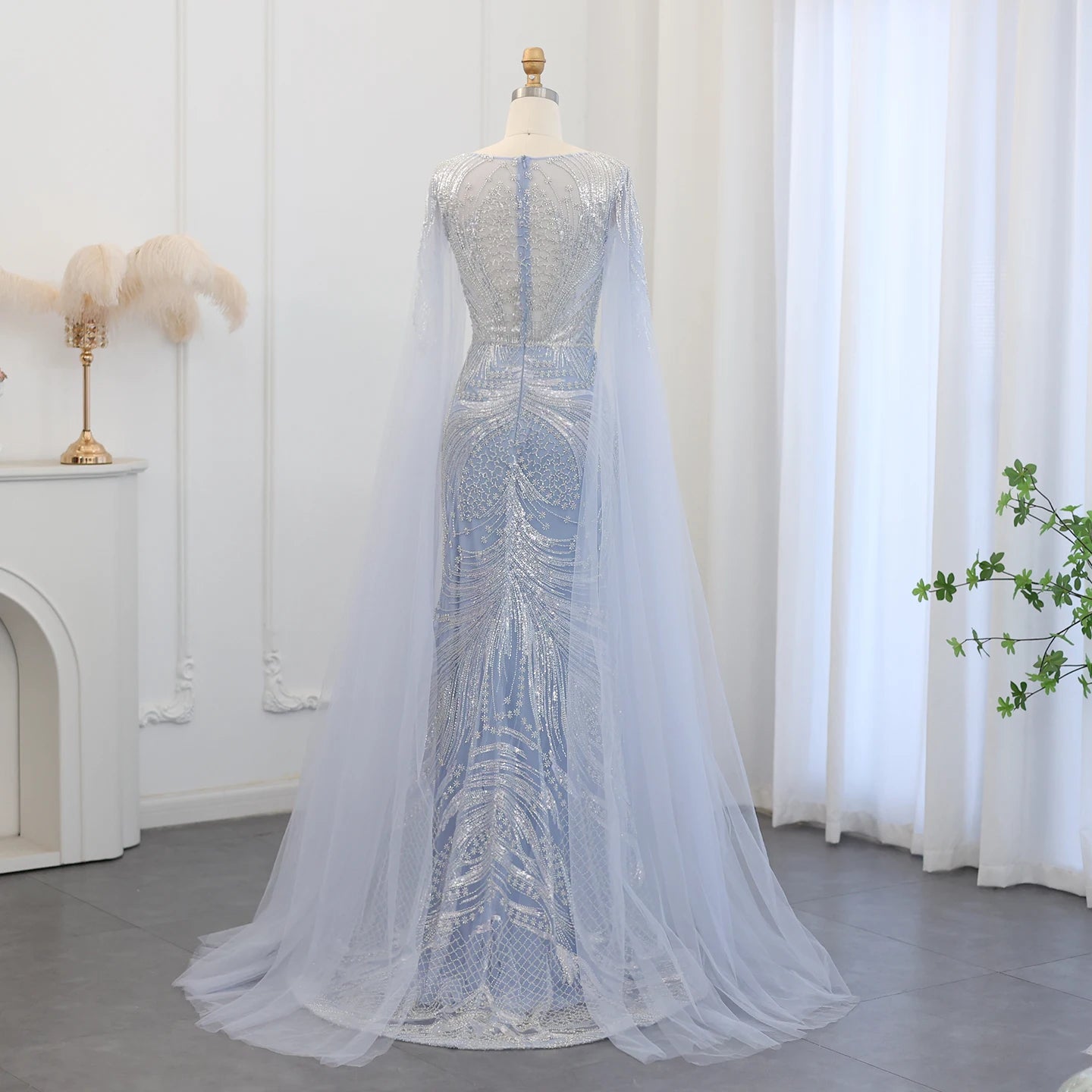 A capa fluida, que acompanha o vestido, é o detalhe que eleva ainda mais o visual, dando um toque de mistério e imponência. Ela flui delicadamente pelos ombros e se estende suavemente, criando uma silhueta alongada e de grande impacto visual. A combinação do tule com a capa garante um efeito visual impressionante, misturando romantismo e sofisticação de maneira harmoniosa. Seja para um evento de gala ou uma festa de grande porte, o Vestido de Festa Longo Sereia com Capa Fluida em Tule é a escolha perfeita para quem quer arrasar e deixar uma impressão inesquecível.