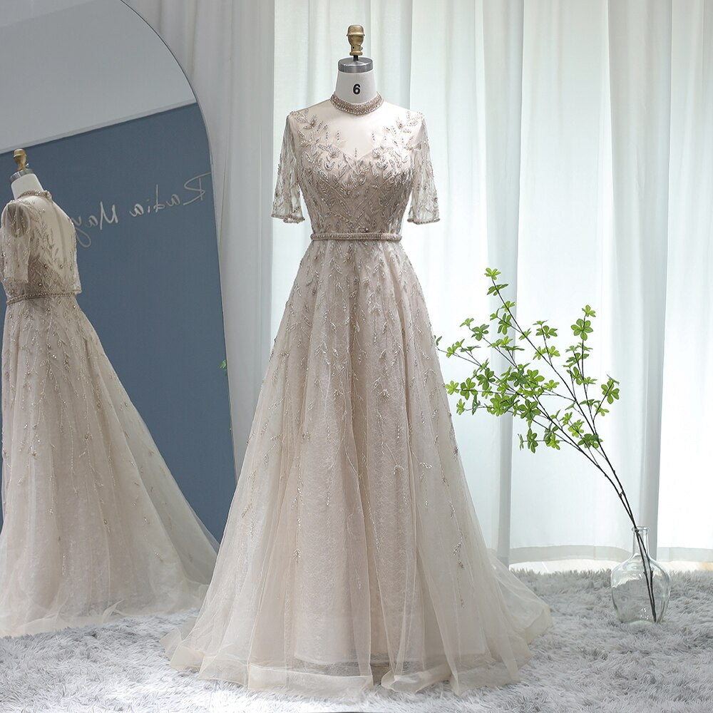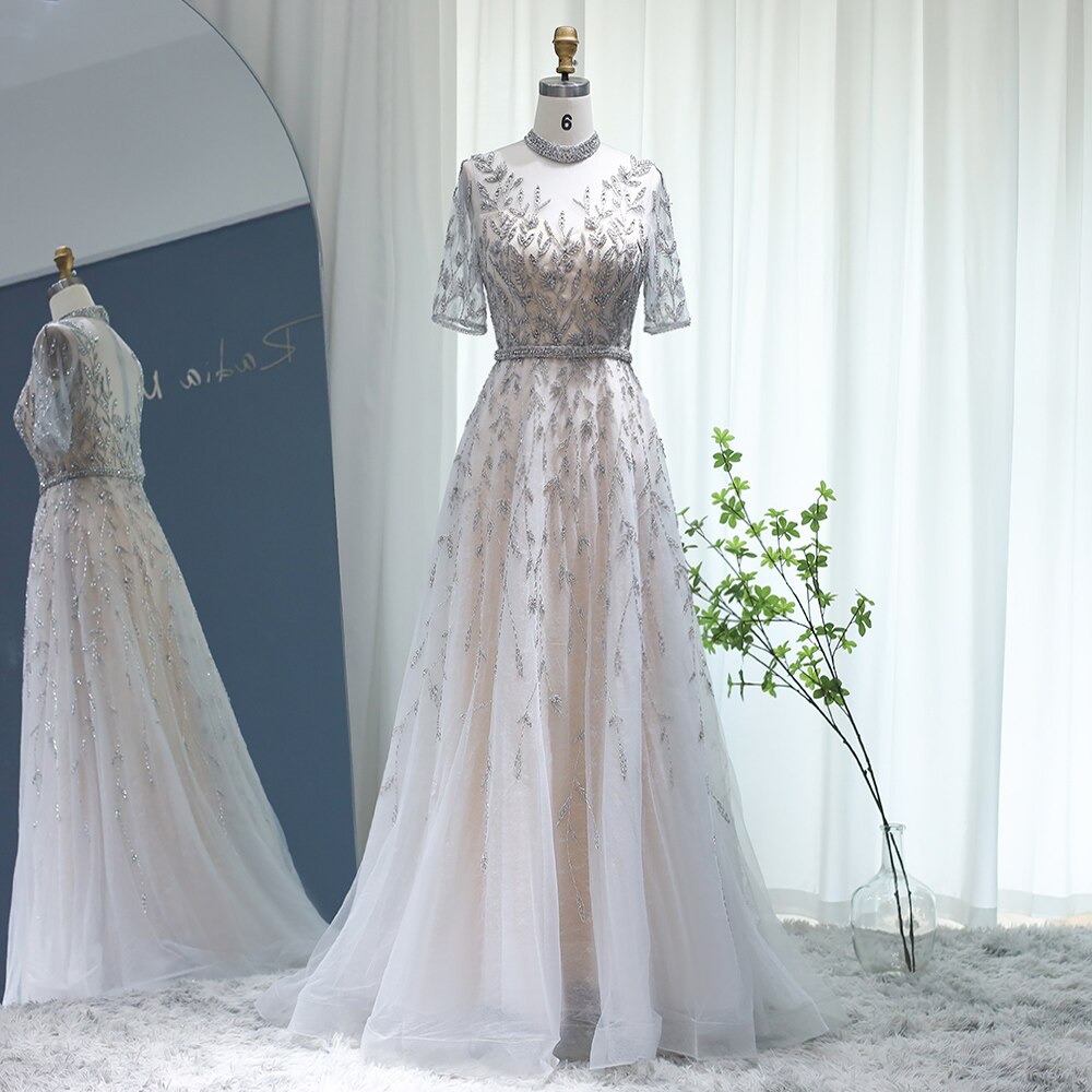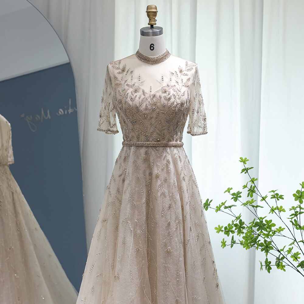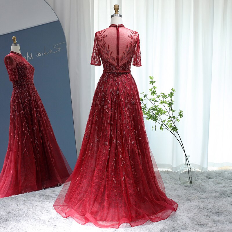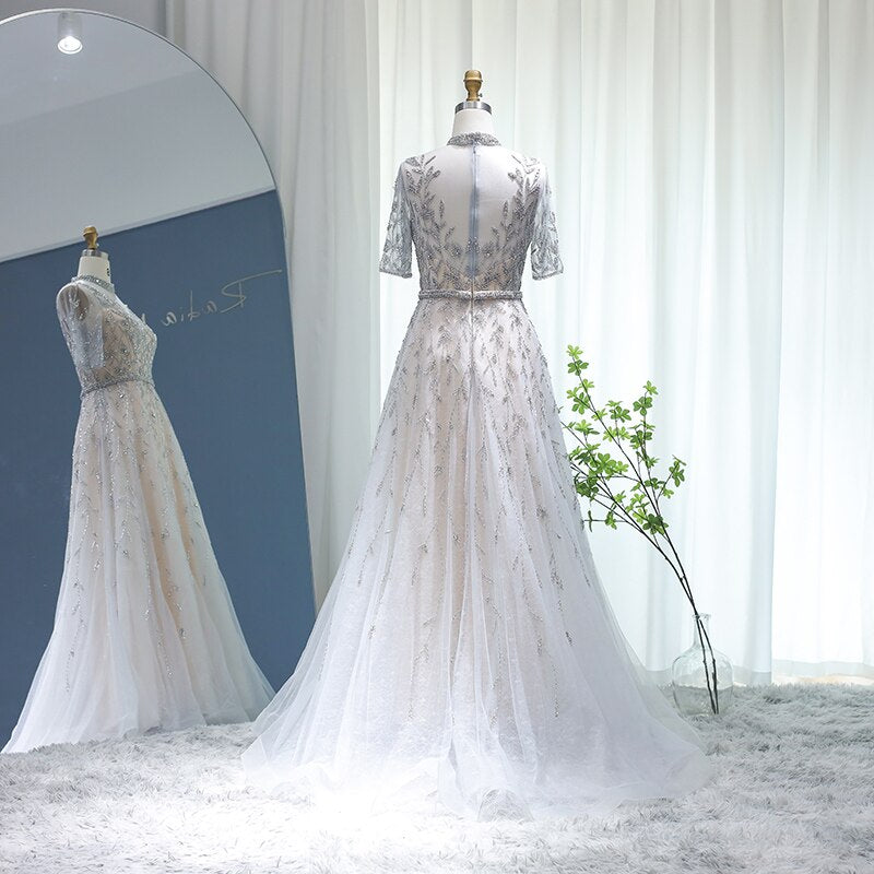 Este vestido de festa luxuoso é um exemplo de elegância refinada. Feito com um tecido de alta qualidade, ele é adornado com cristais em um padrão folhagem sofisticado. Esses cristais são dispostos de maneira delicada e elegante, criando um efeito visual deslumbrante e luxuoso.