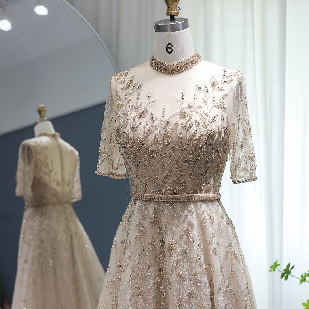 Vestido de Festa Luxuoso com Pérolas e Capa