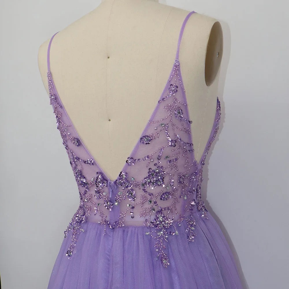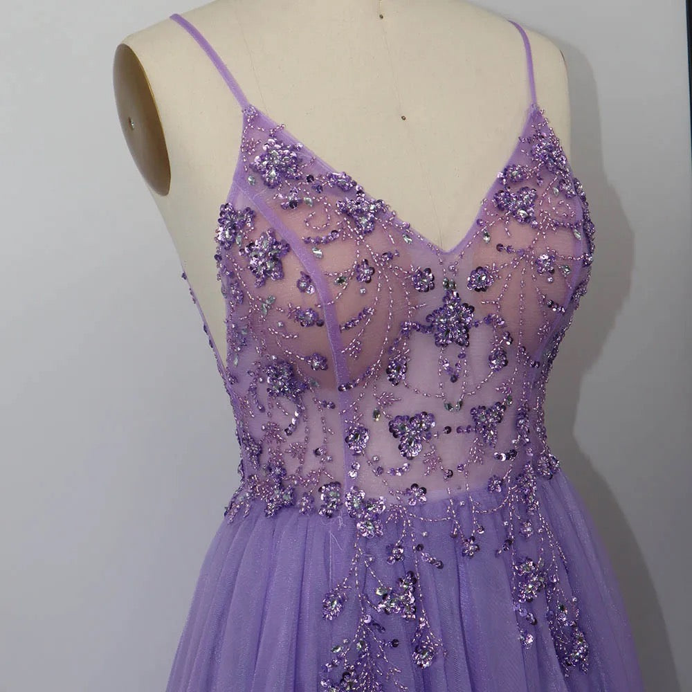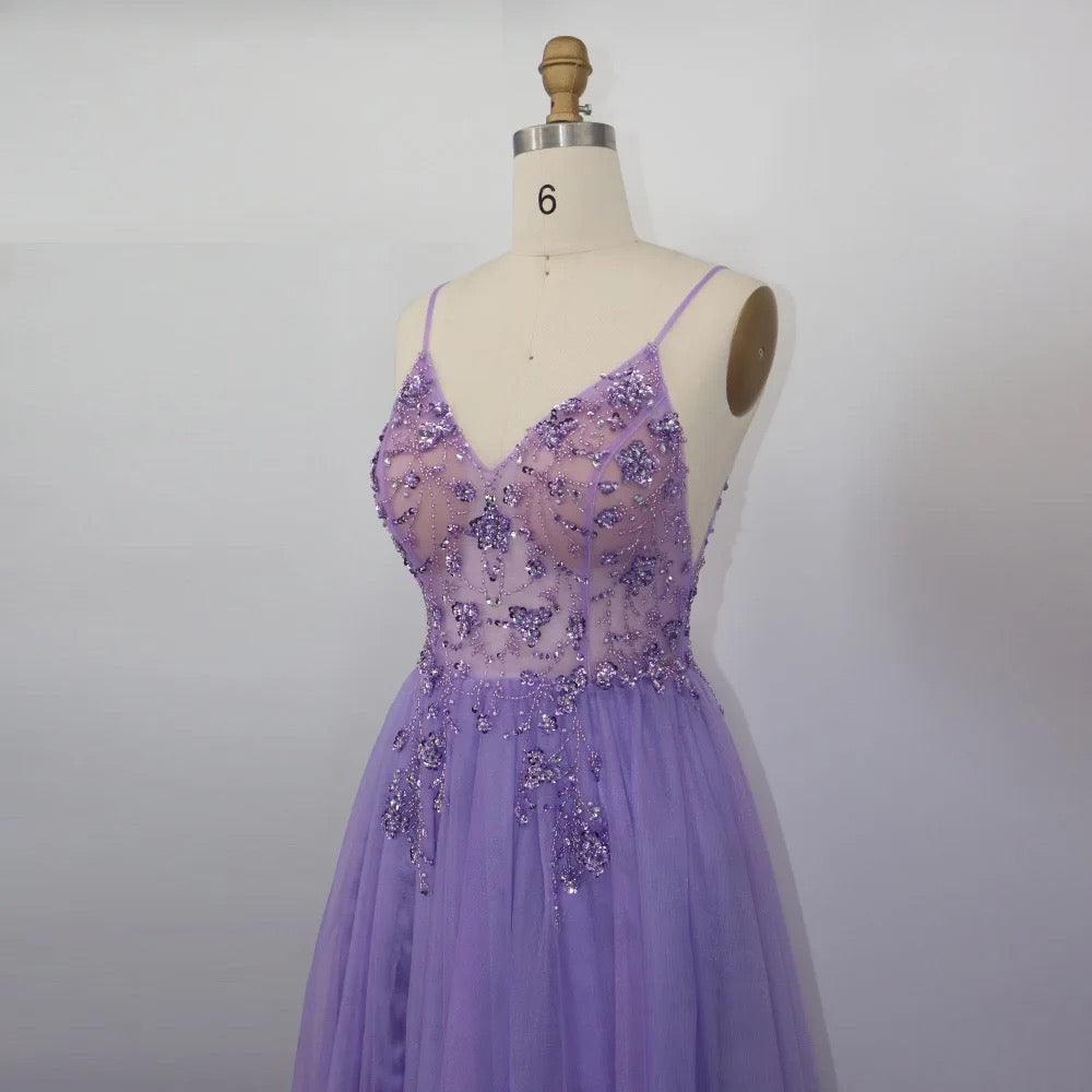 Este vestido de festa longo é um verdadeiro showstopper. Feito de um tecido suave e elegante em azul empoeirado, lavanda e marsala. Ele é decorado com uma chuva de cristais brilhantes que brilham a cada passo. O corte é clássico, com uma silhueta reta que se estende até o chão . O decote é discreto adiciona um toque de elegância. Com sapatos de salto alto e acessórios de jóias, este vestido de festa será o destaque da noite.