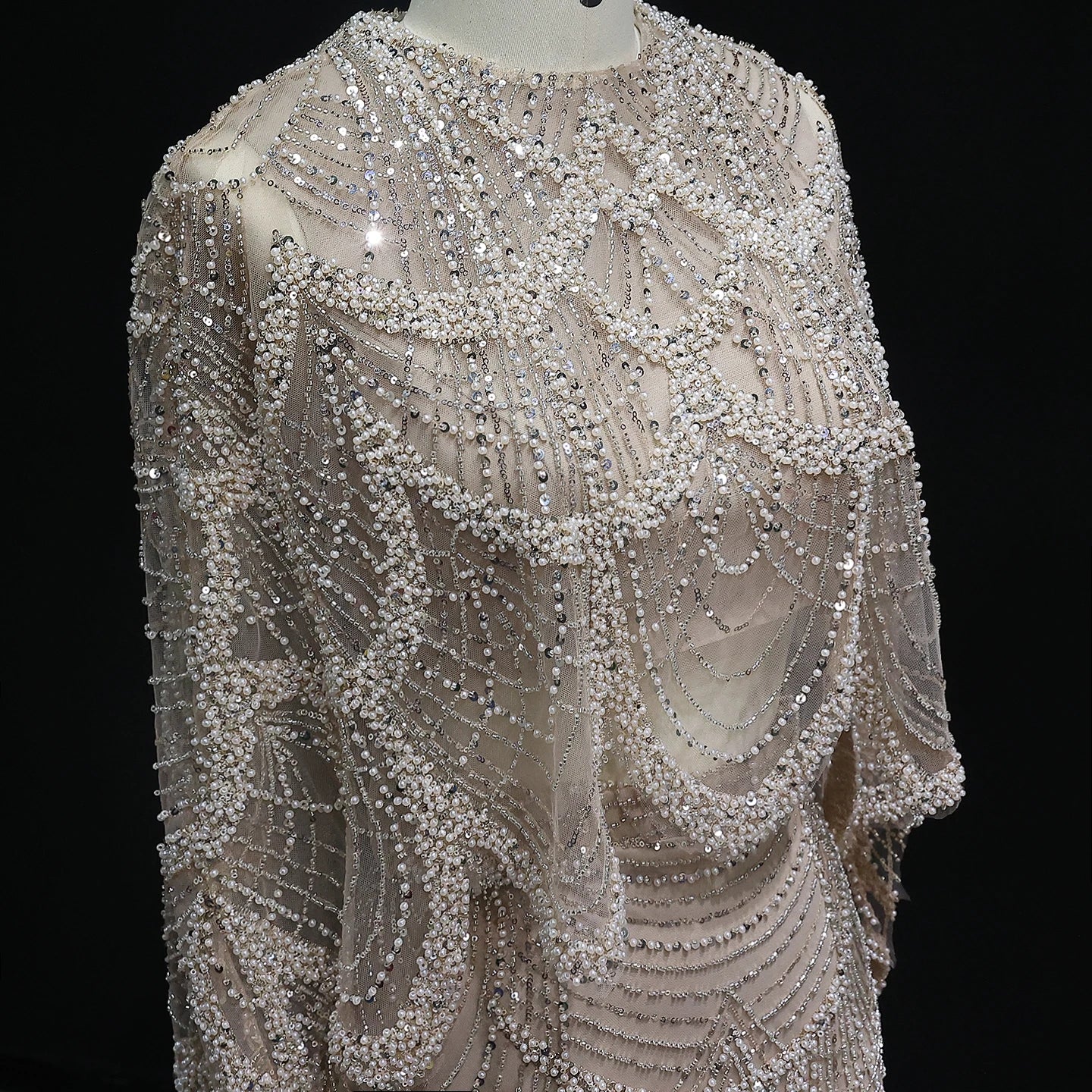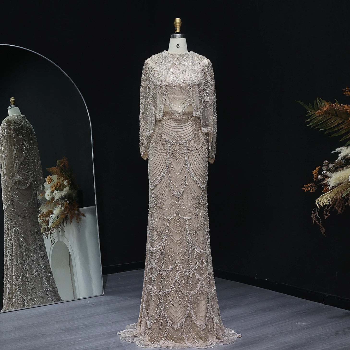 Vestido de Festa Luxuoso com Pérolas e Capa