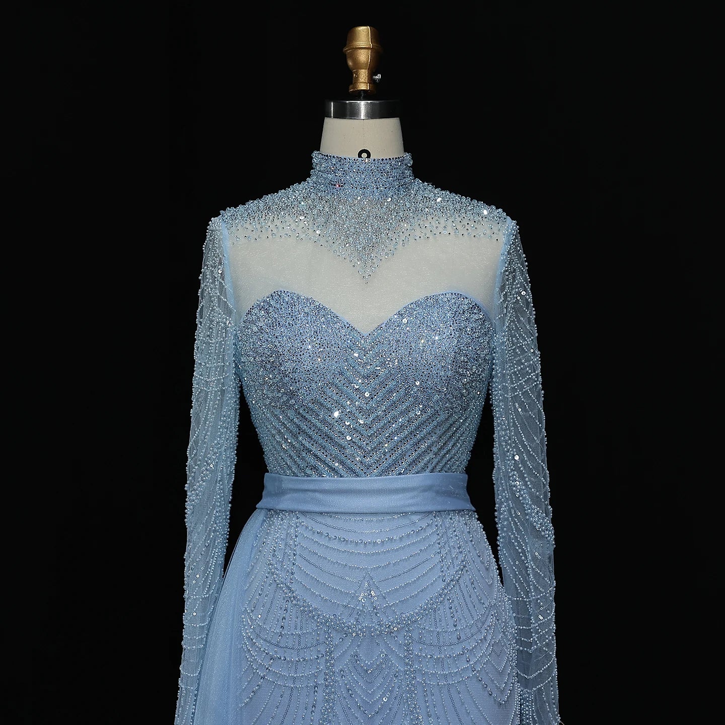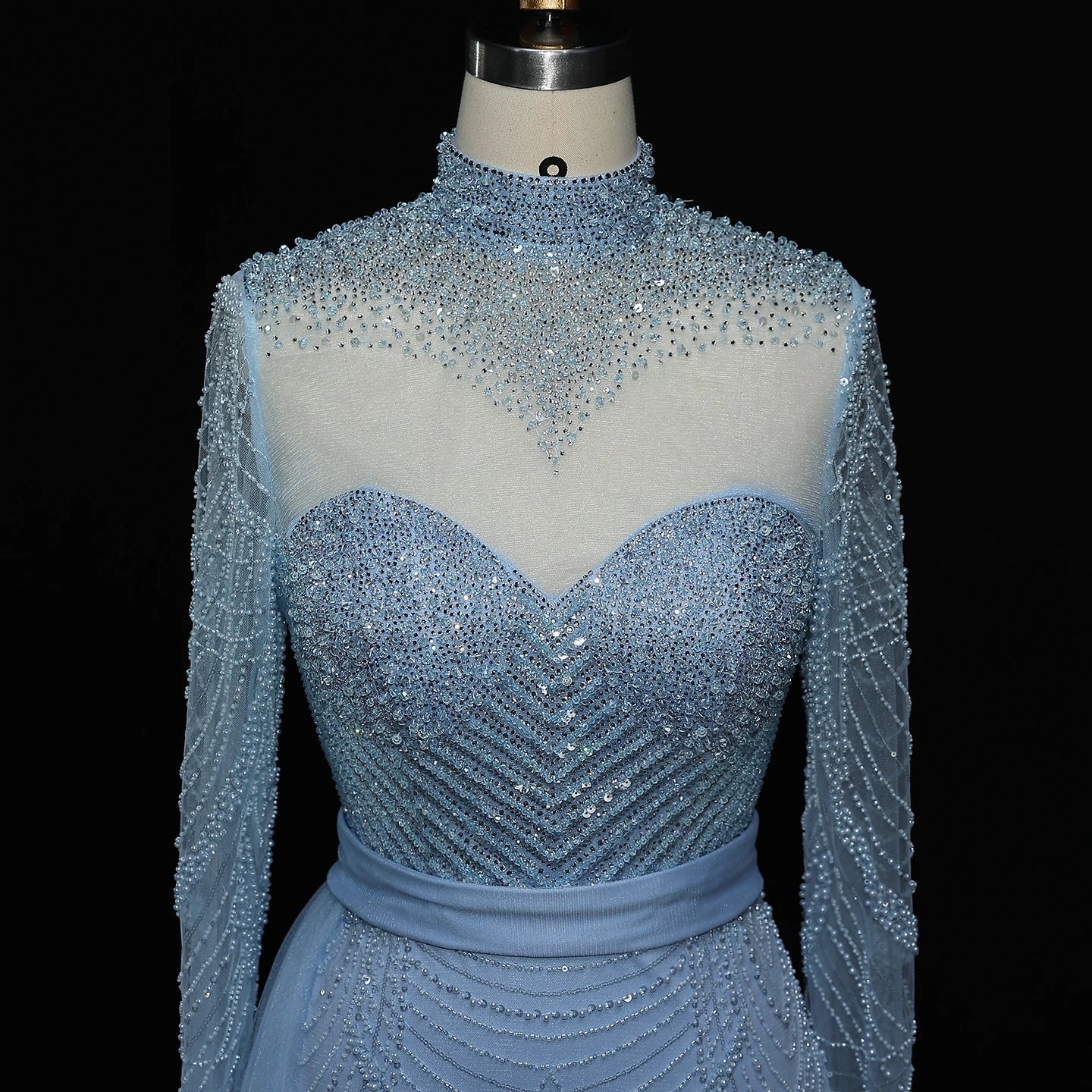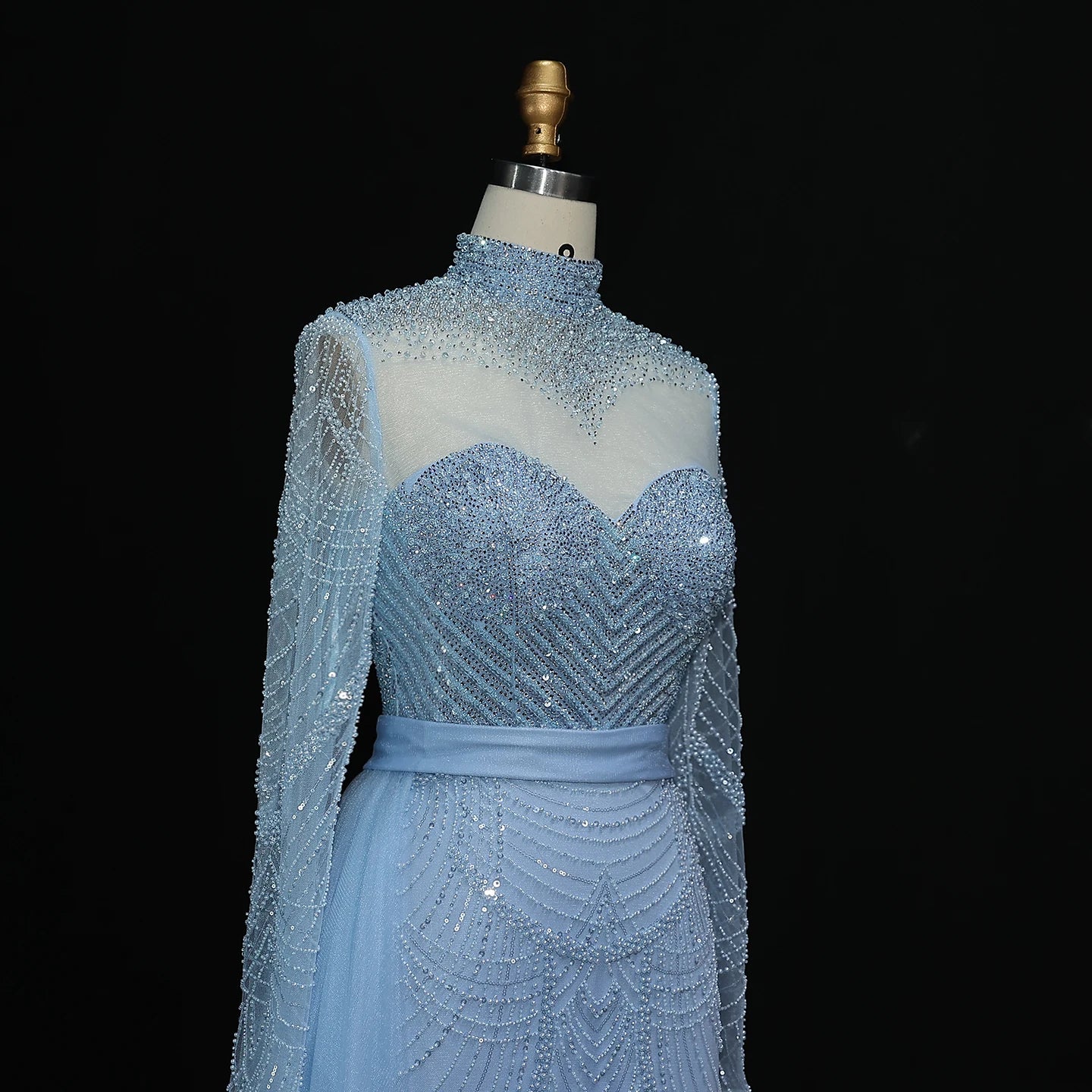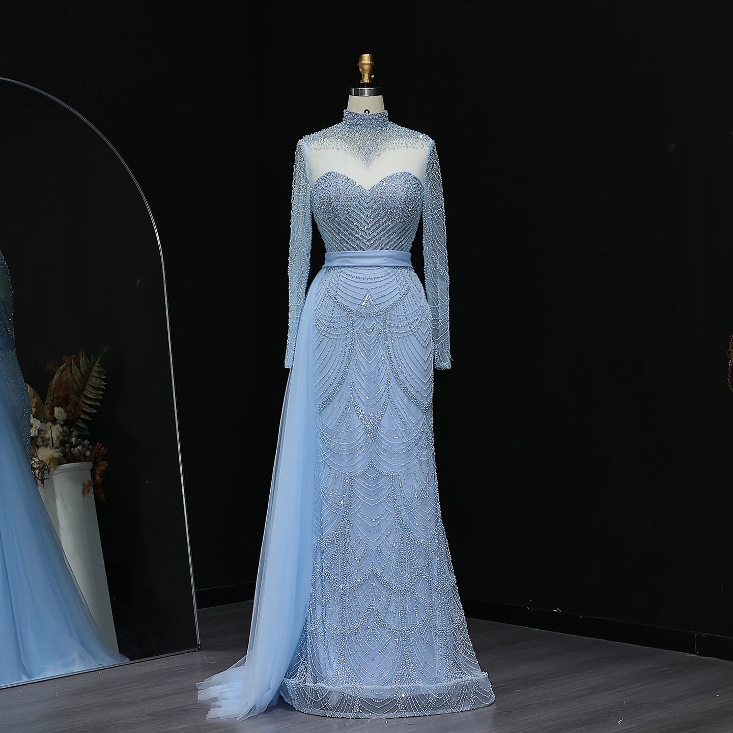 Vestido de Festa Maxi Luxo Adornado em Cristais com Capa Detalhada
