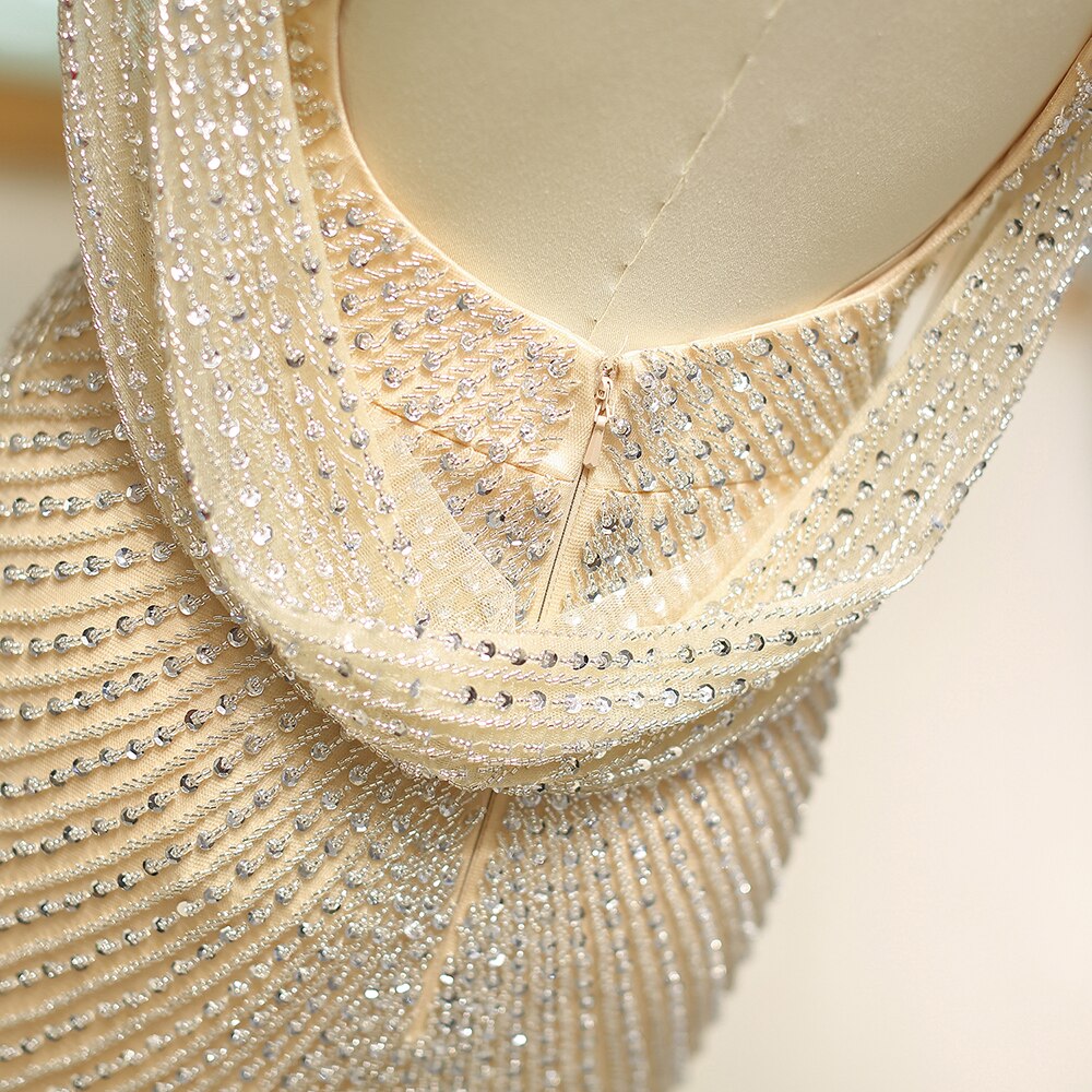 O Vestido de festa luxuoso em pedrarias nas cores dourado e prateado é uma peça impressionante e glamourosa. Seu design especial é composto por uma série de pedrarias brilhantes, que adicionam um toque de sofisticação e elegância à peça. A combinação de cores dourado e prateado dá um efeito deslumbrante e moderno ao vestido. Este modelo é ideal para quem procura um look impactante e sofisticado em ocasiões especiais, como formaturas e casamentos.
