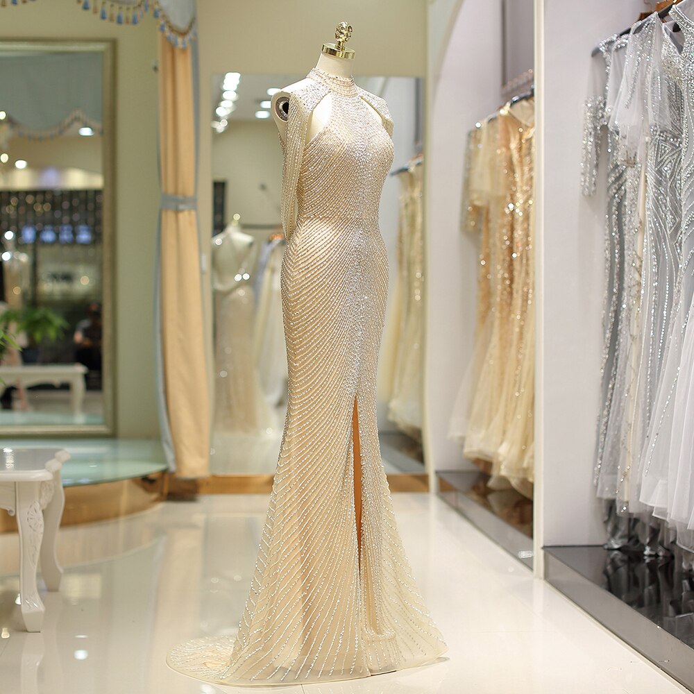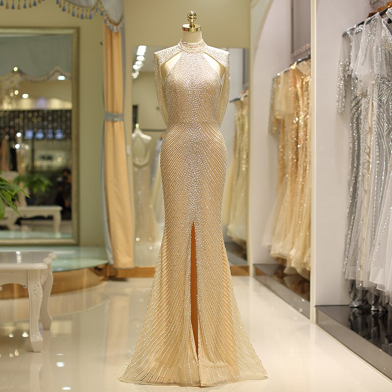 Vestido de Festa Luxuoso com Pérolas e Capa