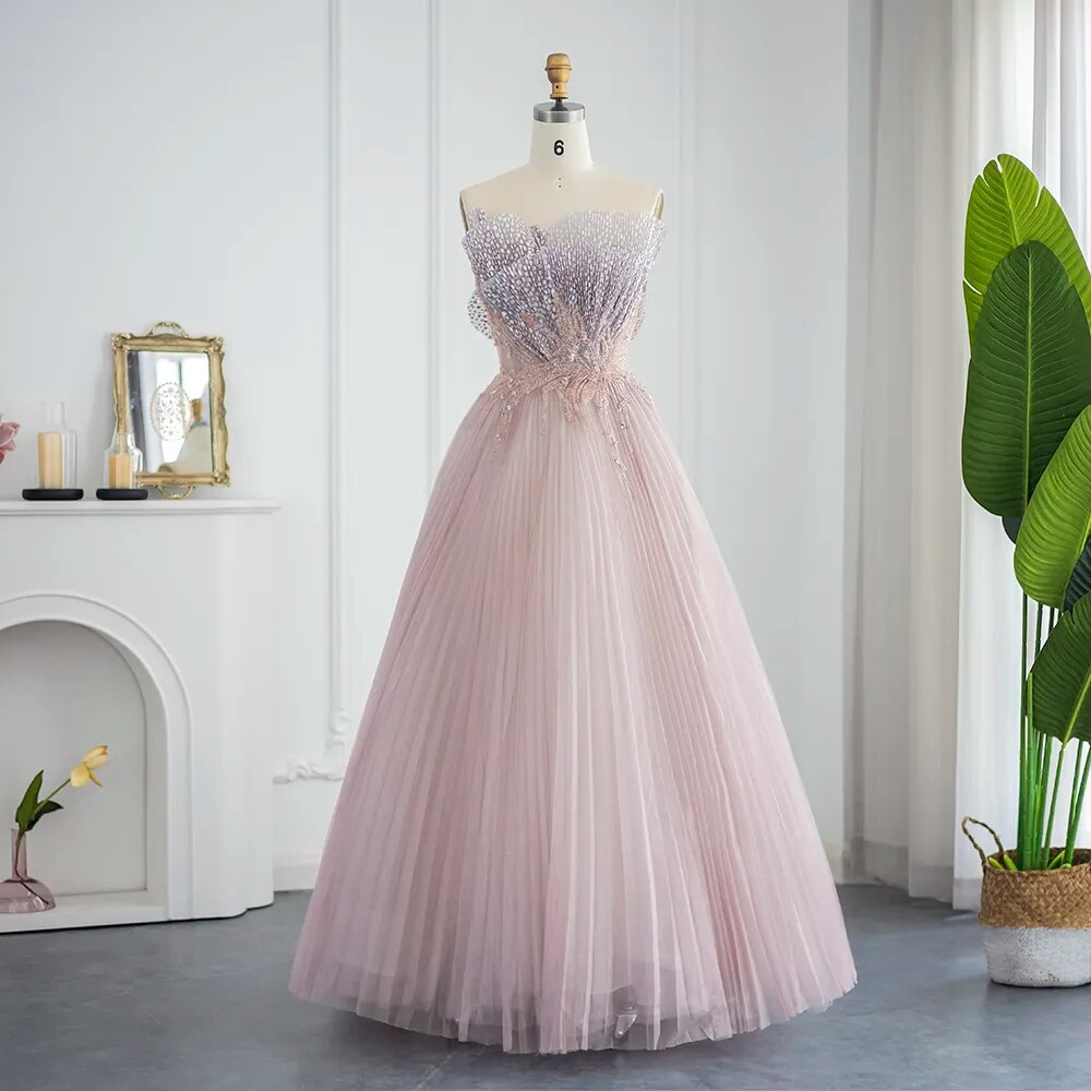 A simplicidade e a suavidade deste vestido fazem dele a escolha perfeita para ocasiões especiais, como casamentos, bailes de formatura e eventos sofisticados. Complementado por acessórios como joias de pérolas e sapatos de salto alto em tons neutros, o vestido pérola flutuante rosa se destaca pela sua elegância discreta e atemporal.