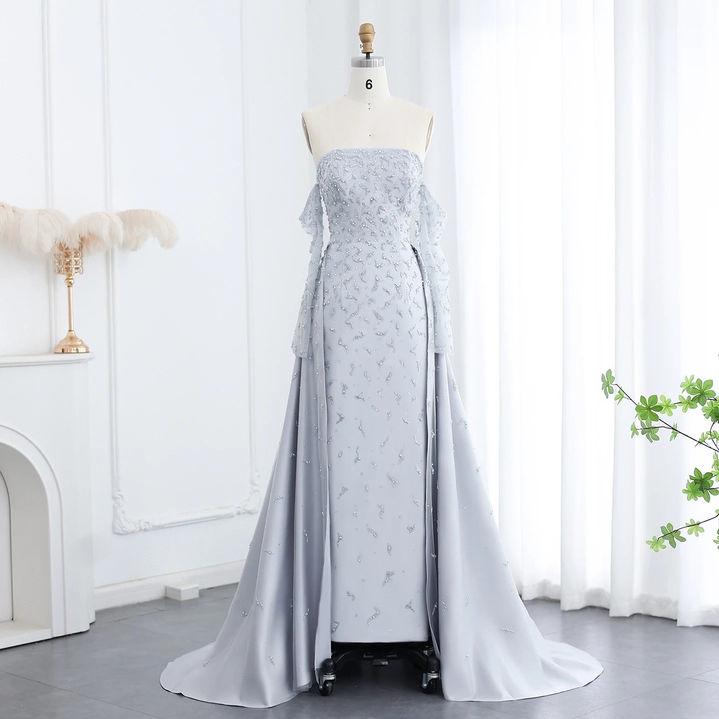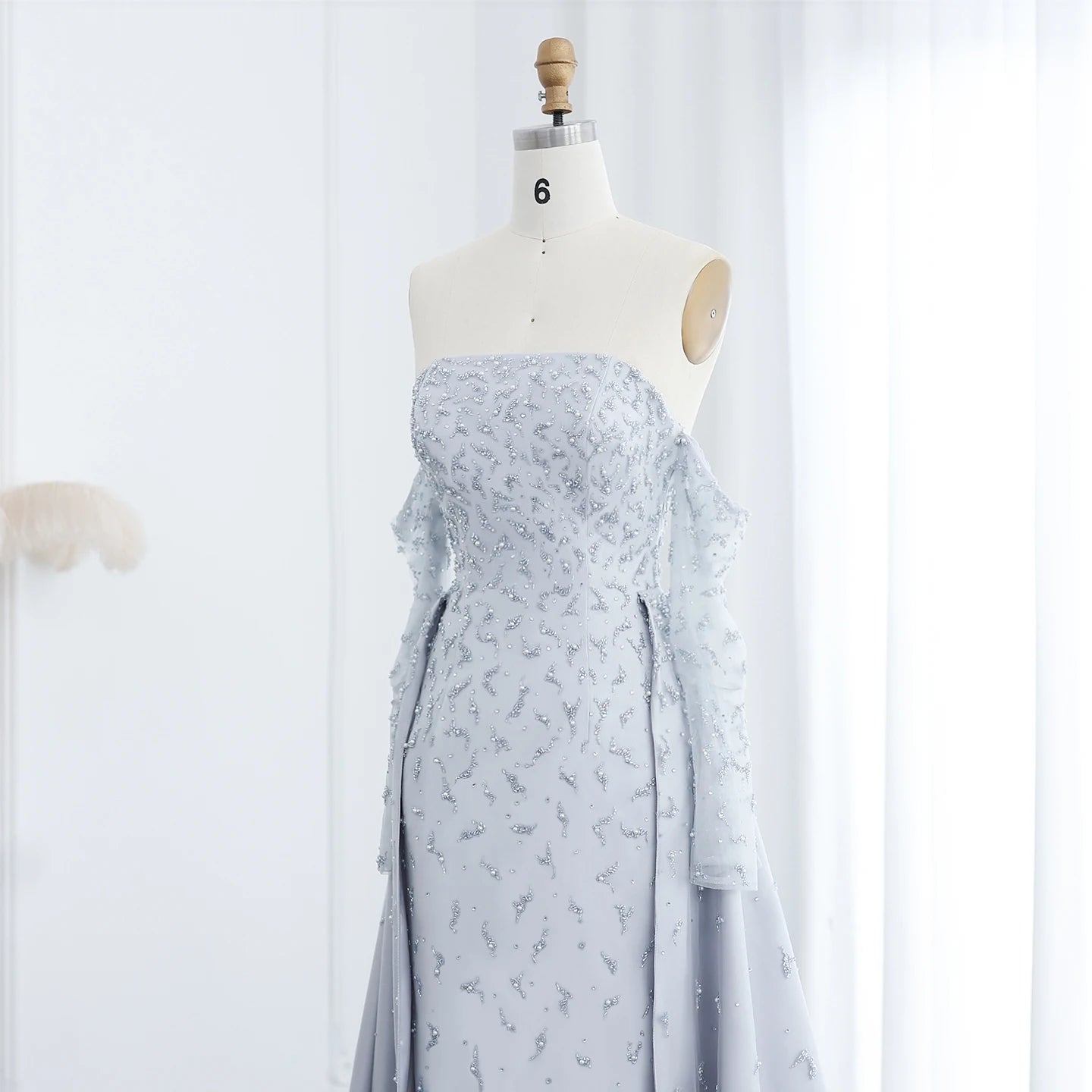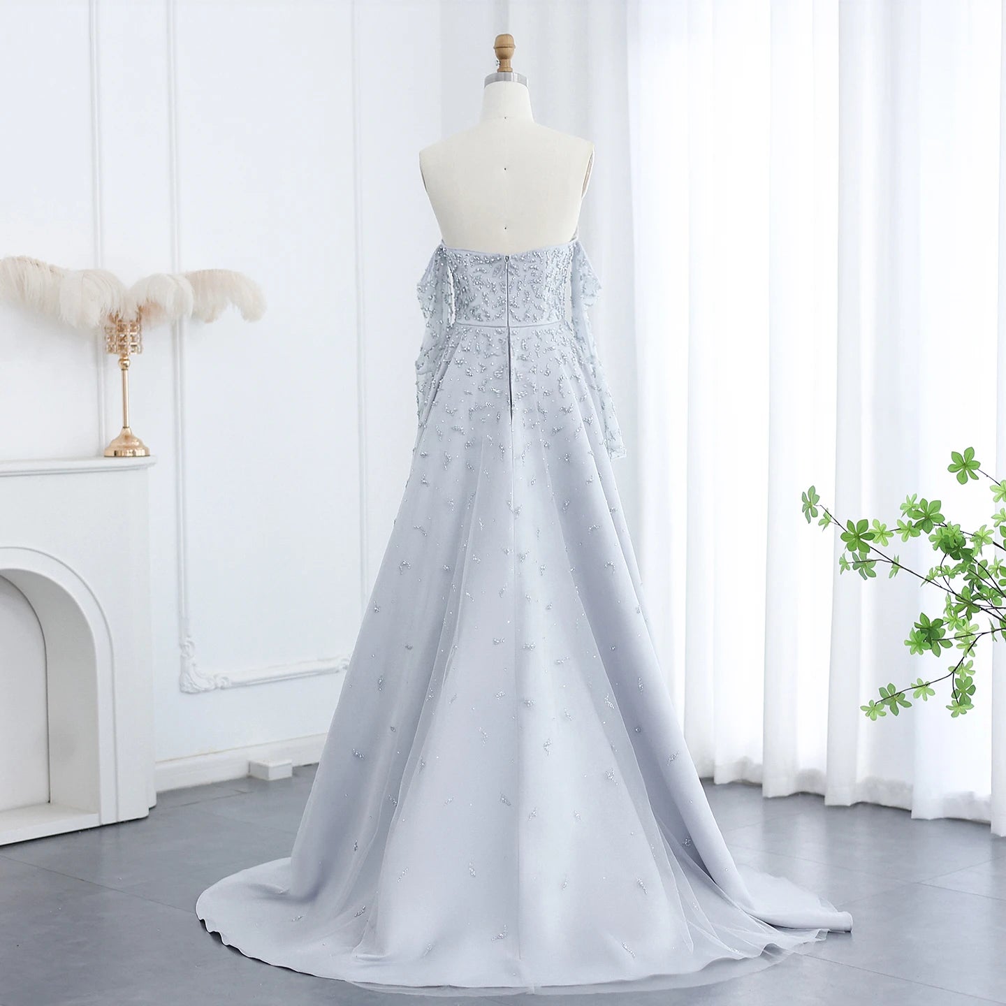 Vestido de Festa Luxuoso com Pérolas e Capa