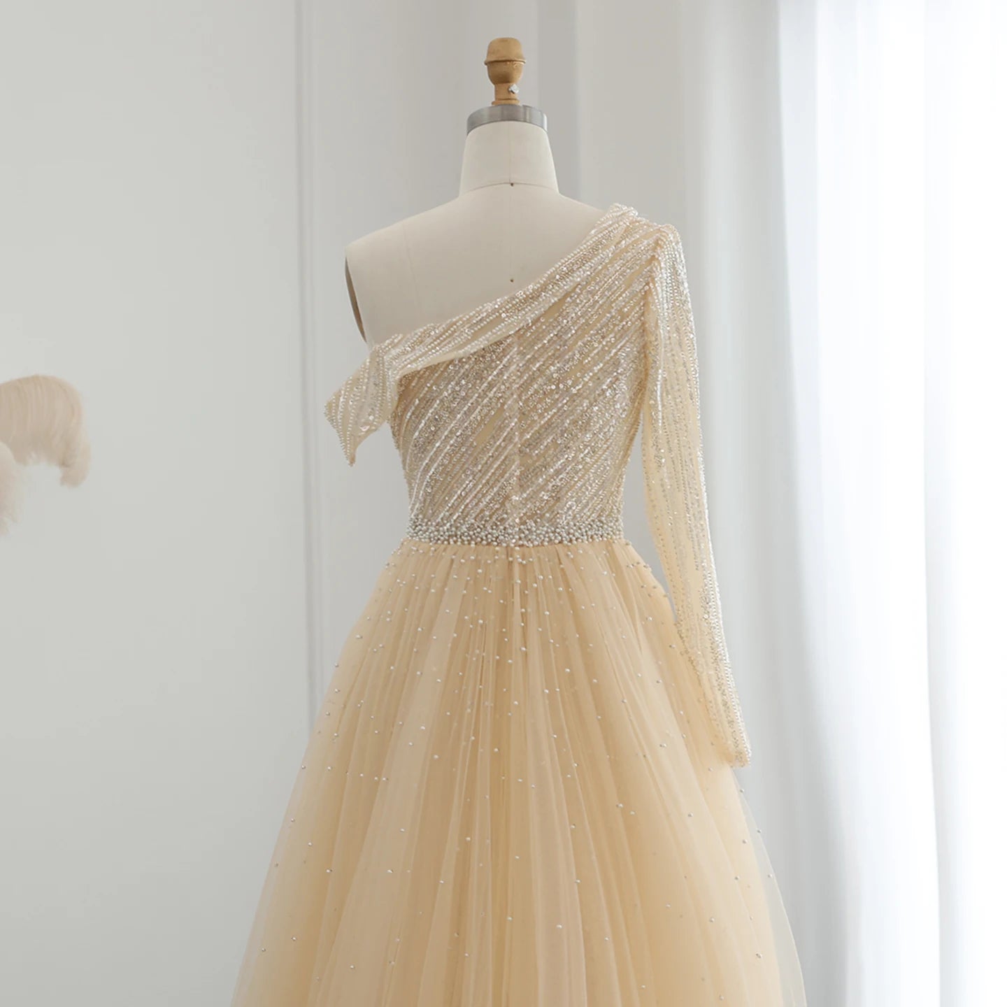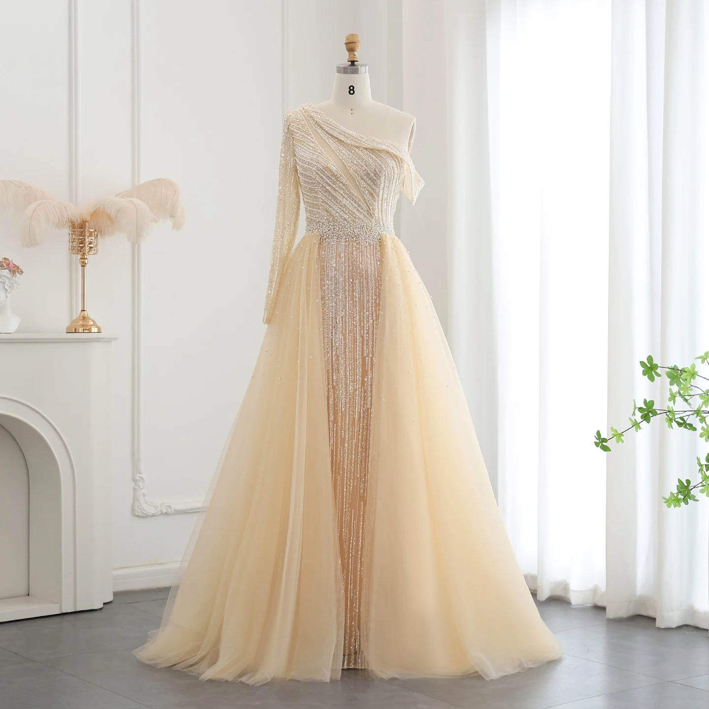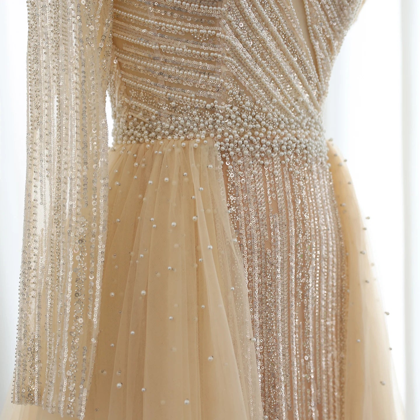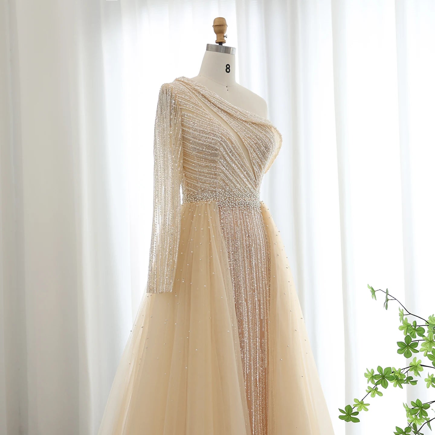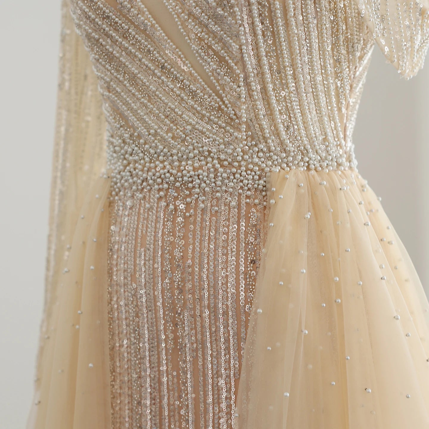 Vestido de Festa Luxuoso com Pérolas e Capa