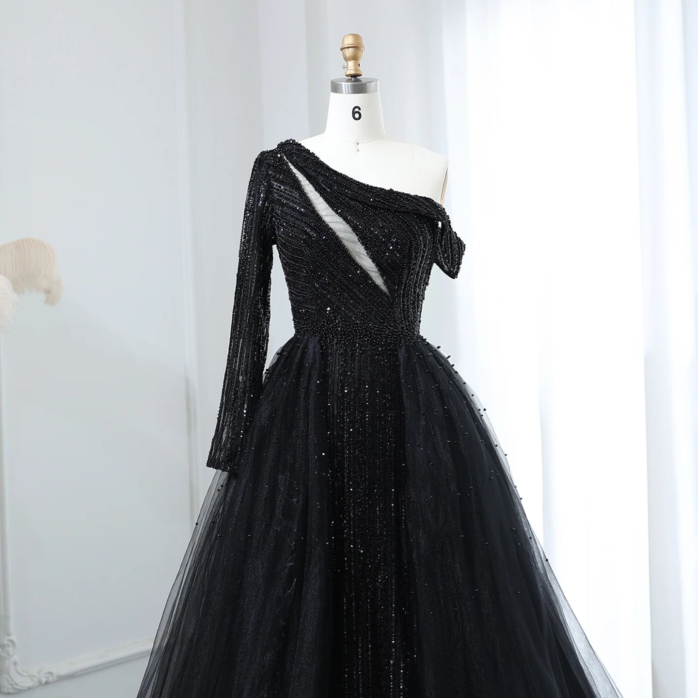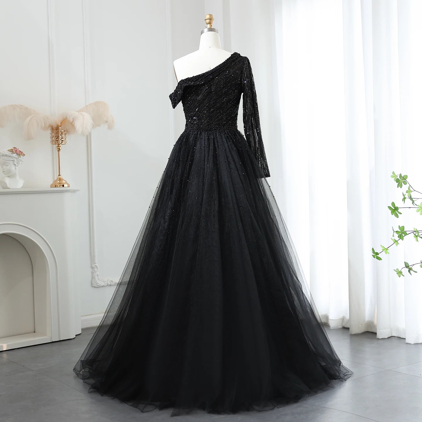Vestido Elegante de Um Ombro com Sobressaia em Renda