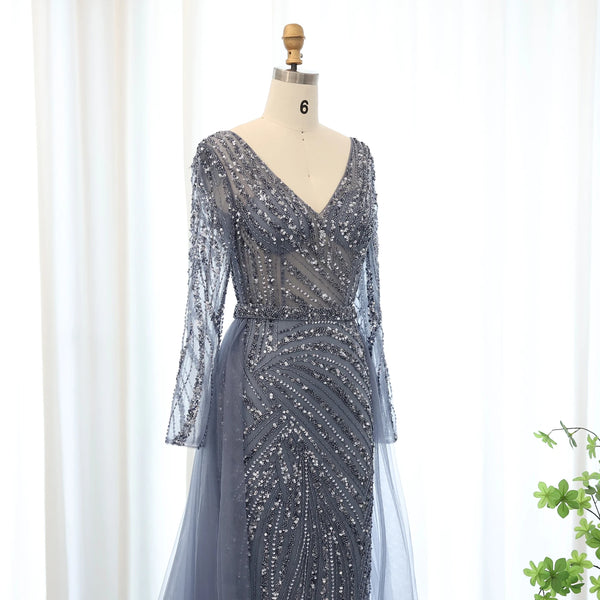 Vestido de Festa Maxi Luxo Adornado em Cristais com Capa Detalhada