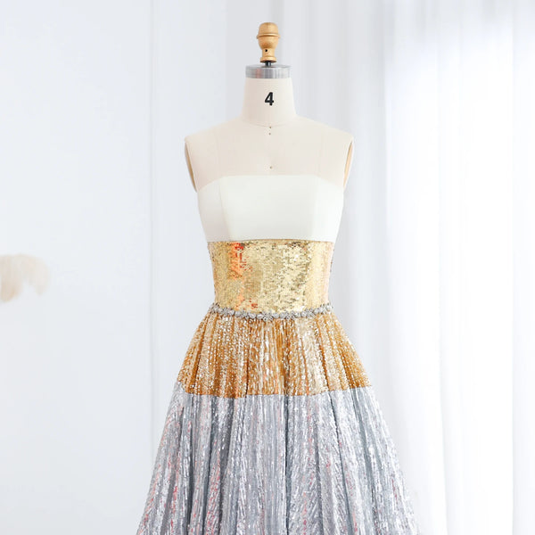 O vestido é ideal para ocasiões formais, como casamentos, bailes e galas, e pode ser combinado com acessórios delicados para um toque ainda mais sofisticado. Seu design clássico, aliado aos detalhes cintilantes dos paetês, garante um visual atemporal e deslumbrante, perfeito para momentos inesquecíveis.