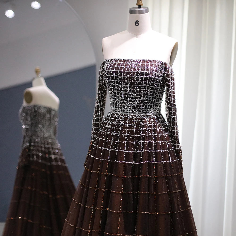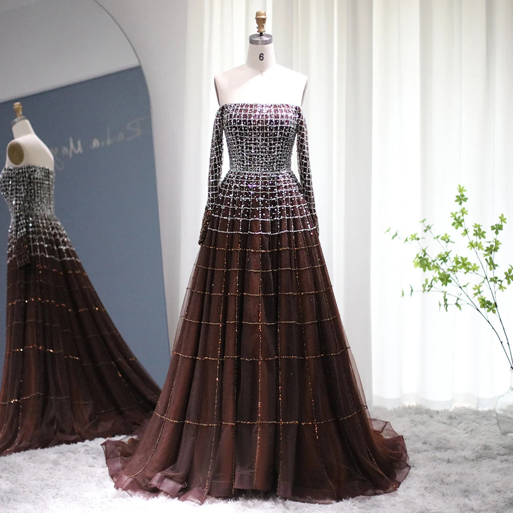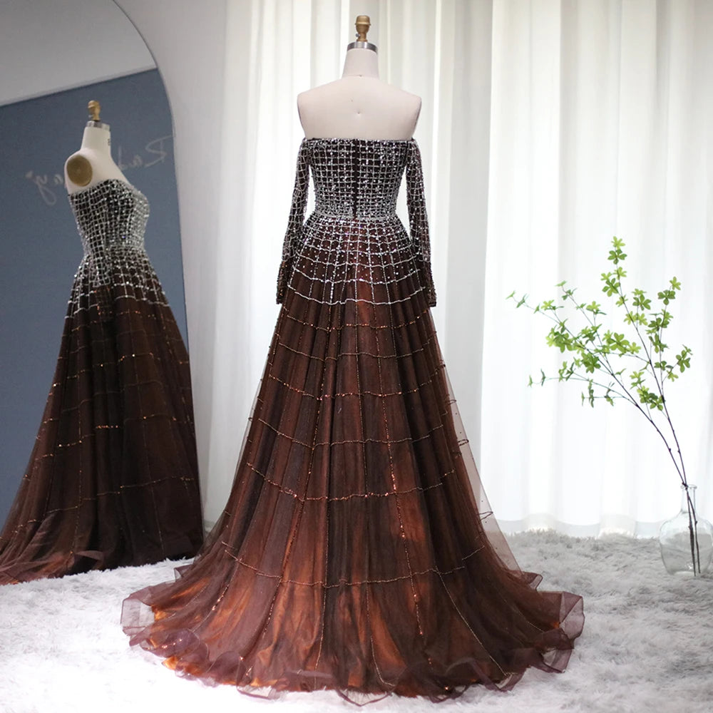 Vestido de Festa Luxo Ombro a Ombro em Terracota com Pedraria - Modelo Especial