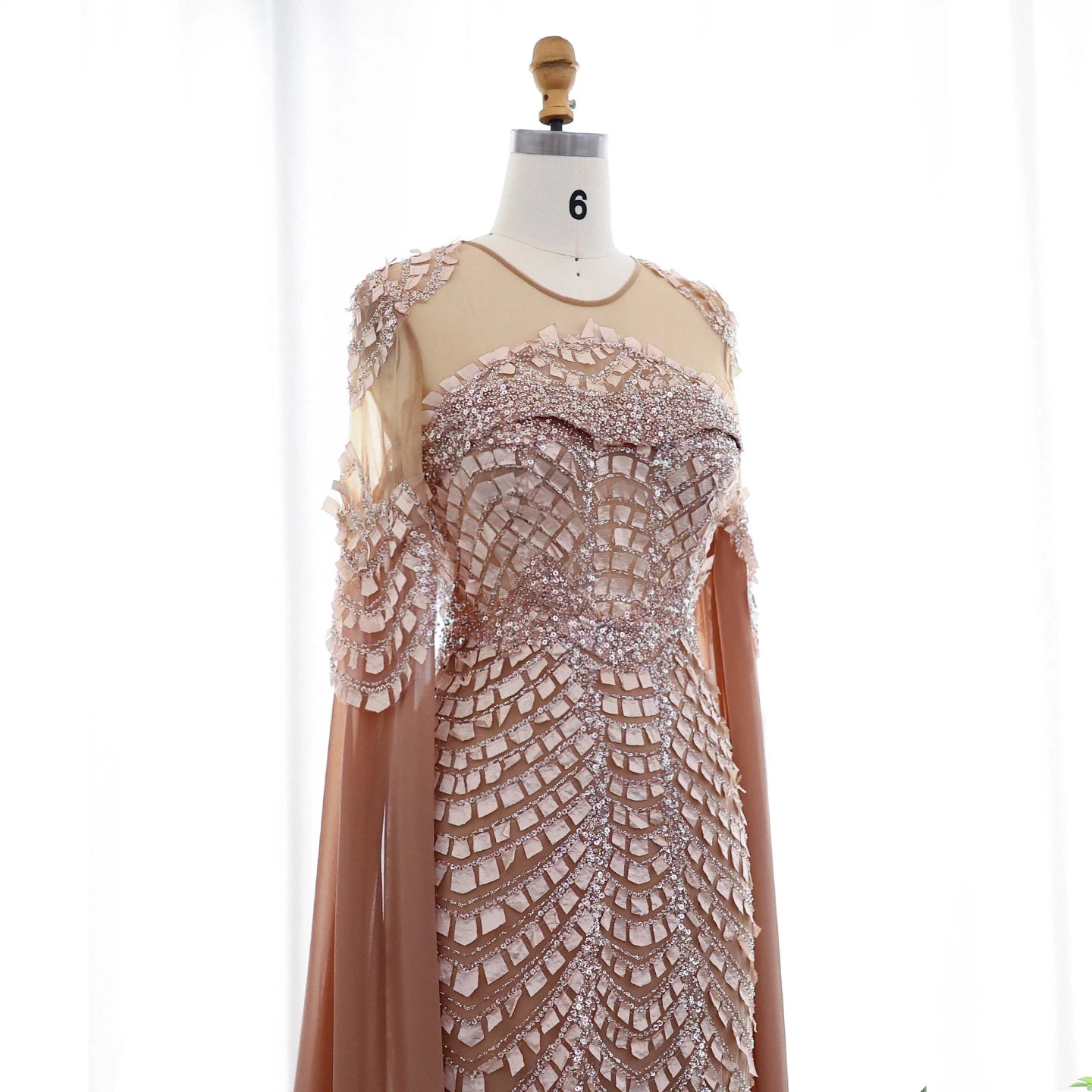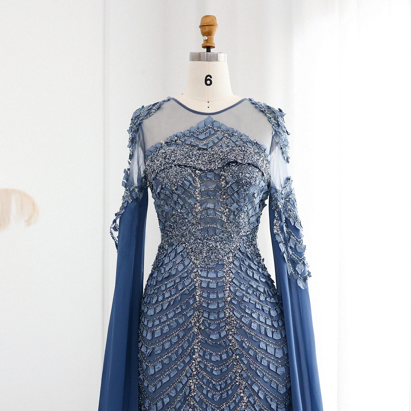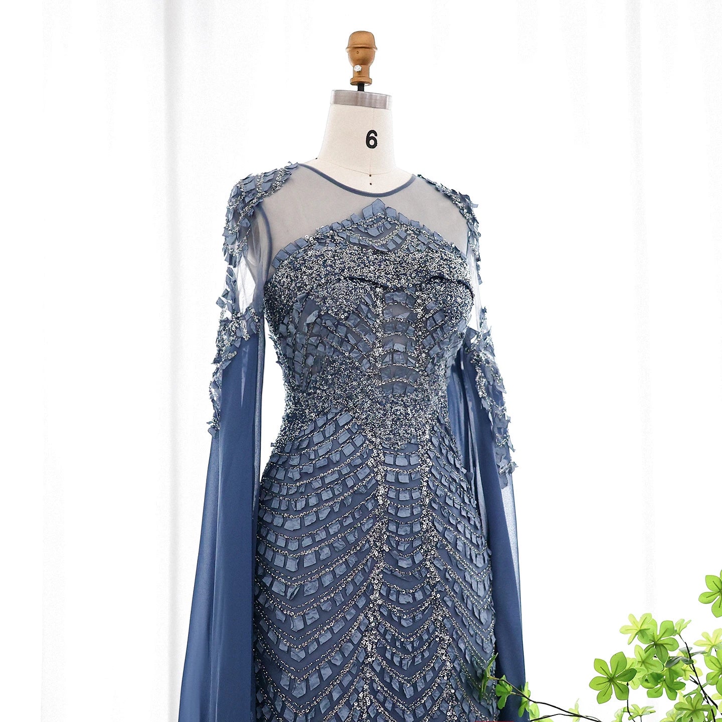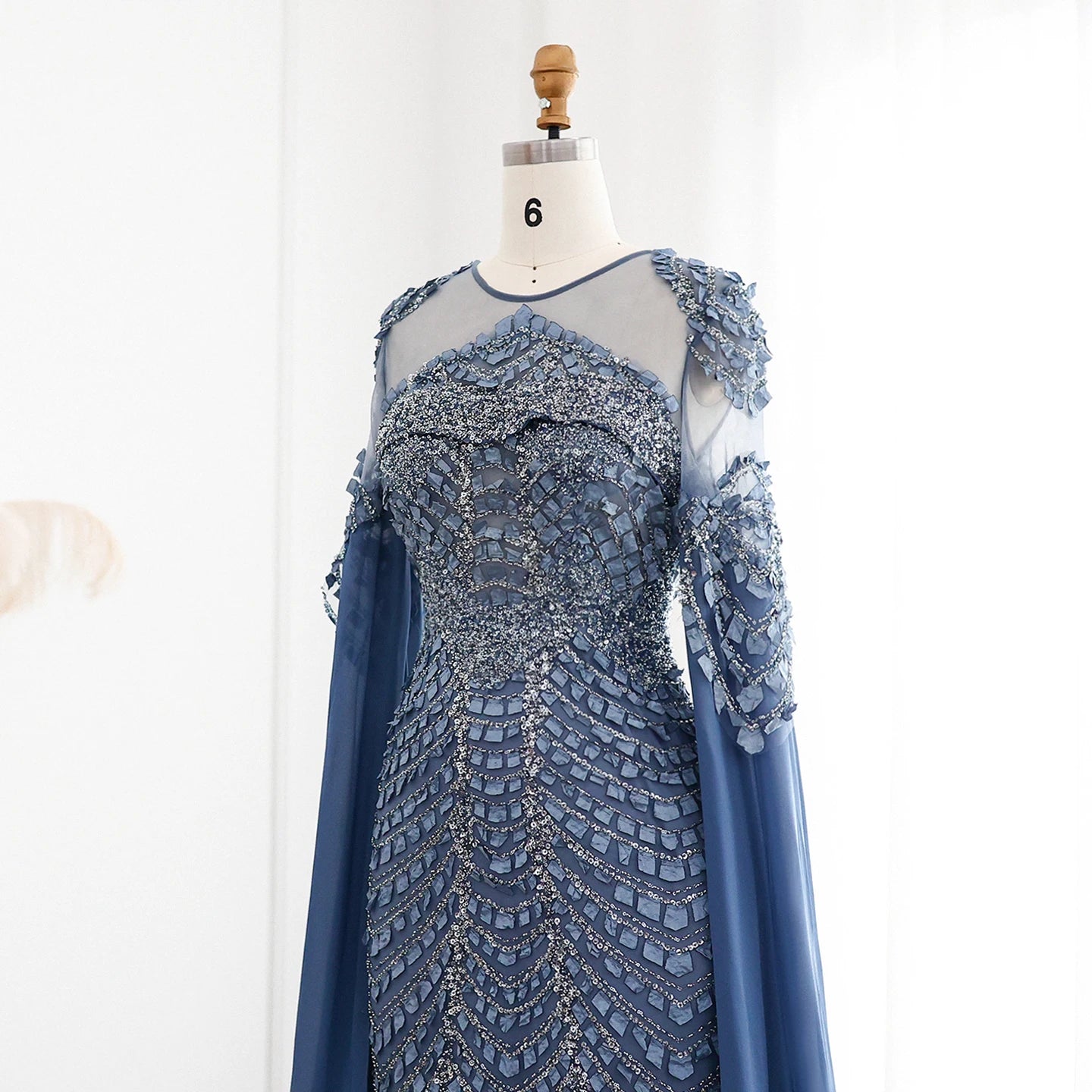 Vestido de Festa Maxi Luxo Adornado em Cristais com Capa Detalhada