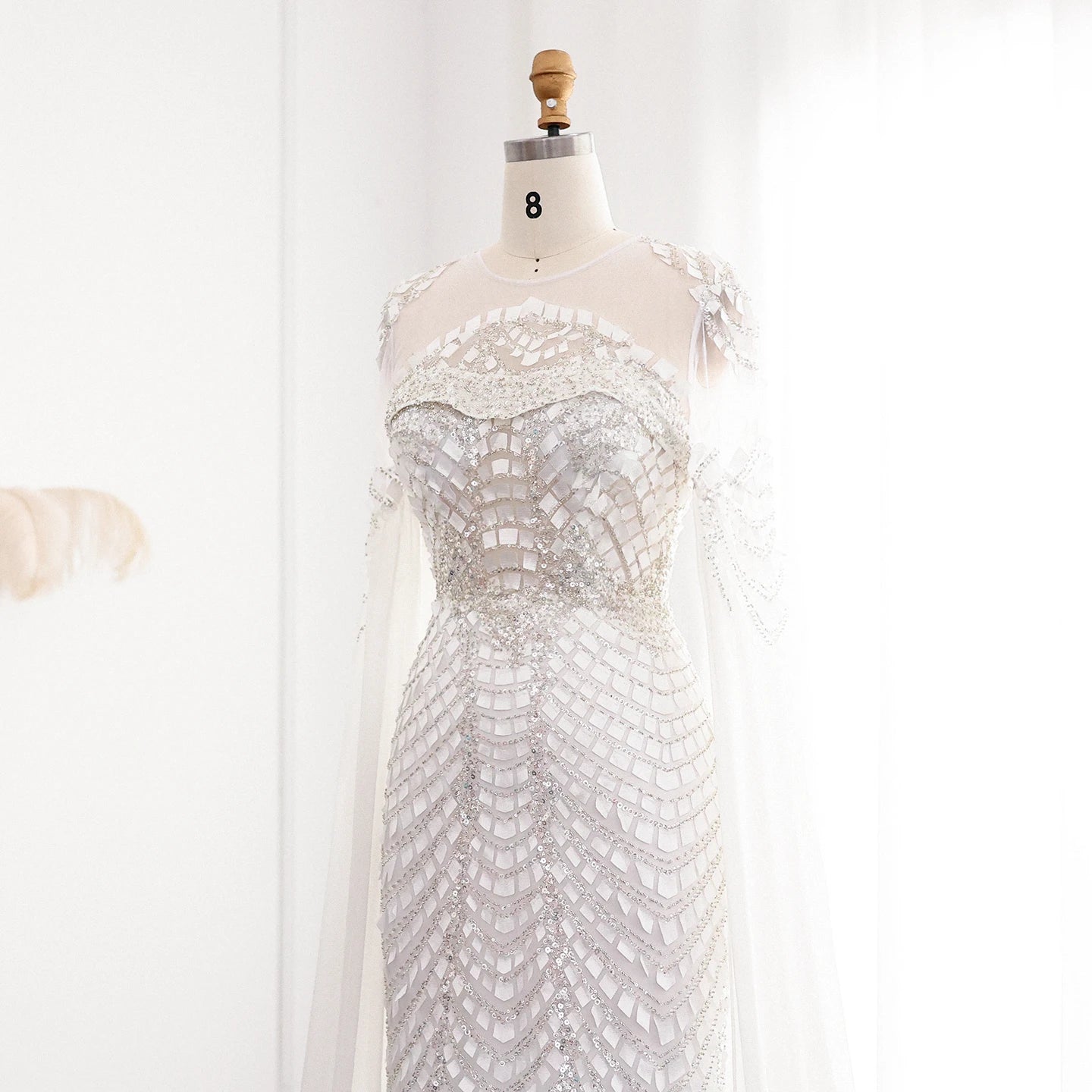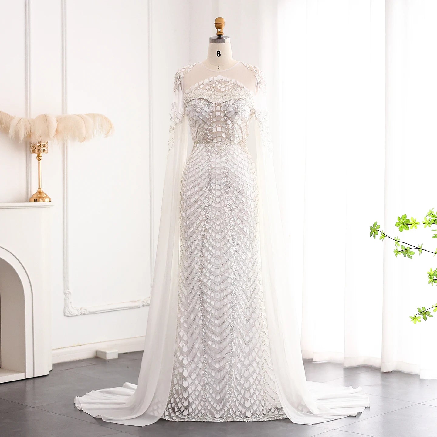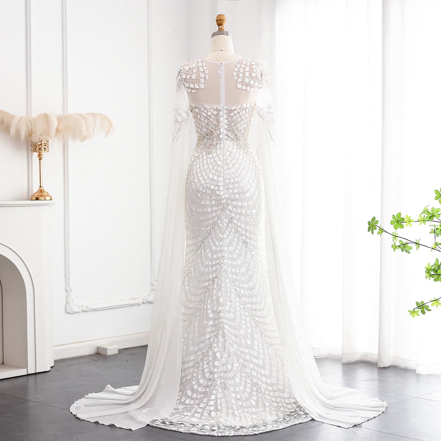 Vestido de Festa Luxuoso com Pérolas e Capa