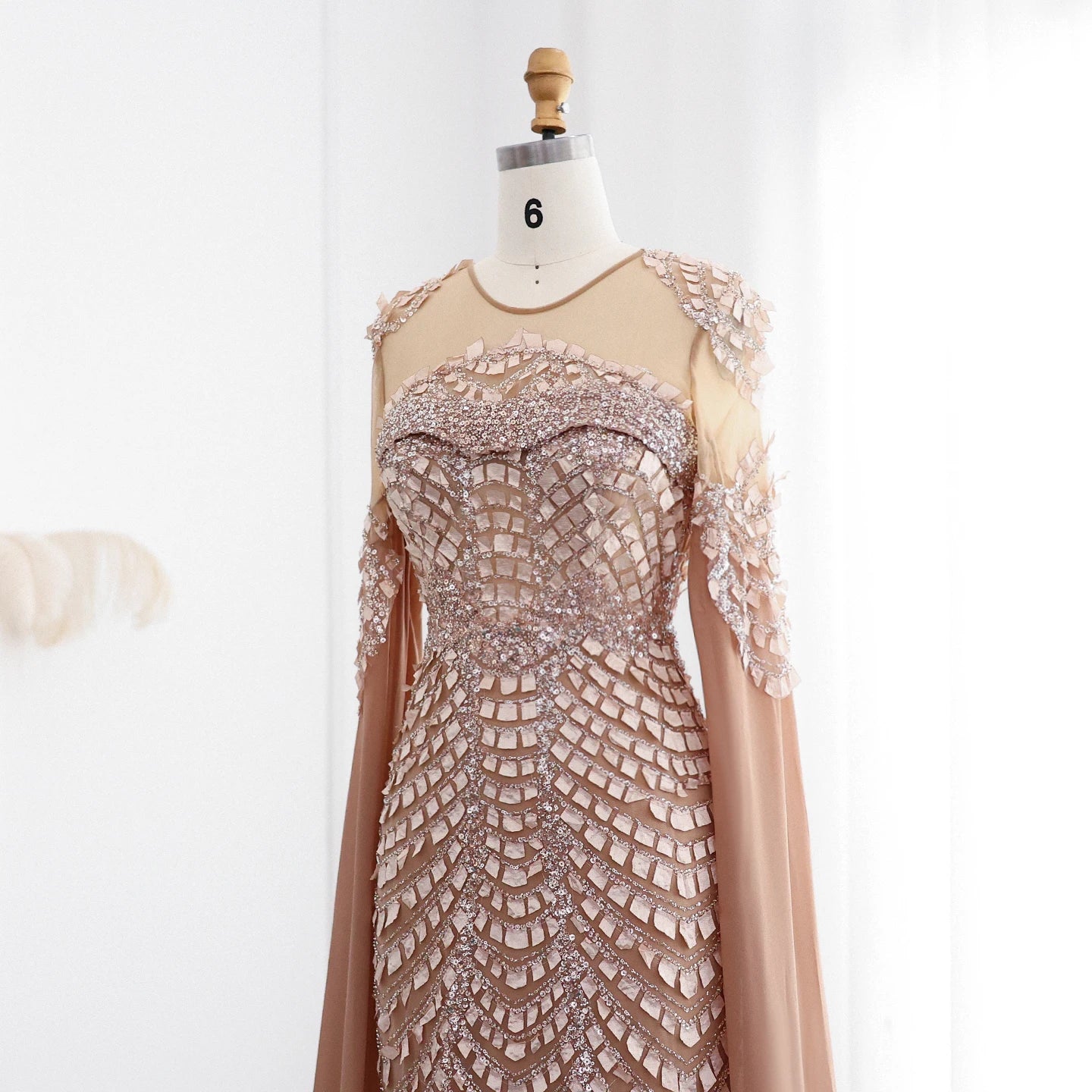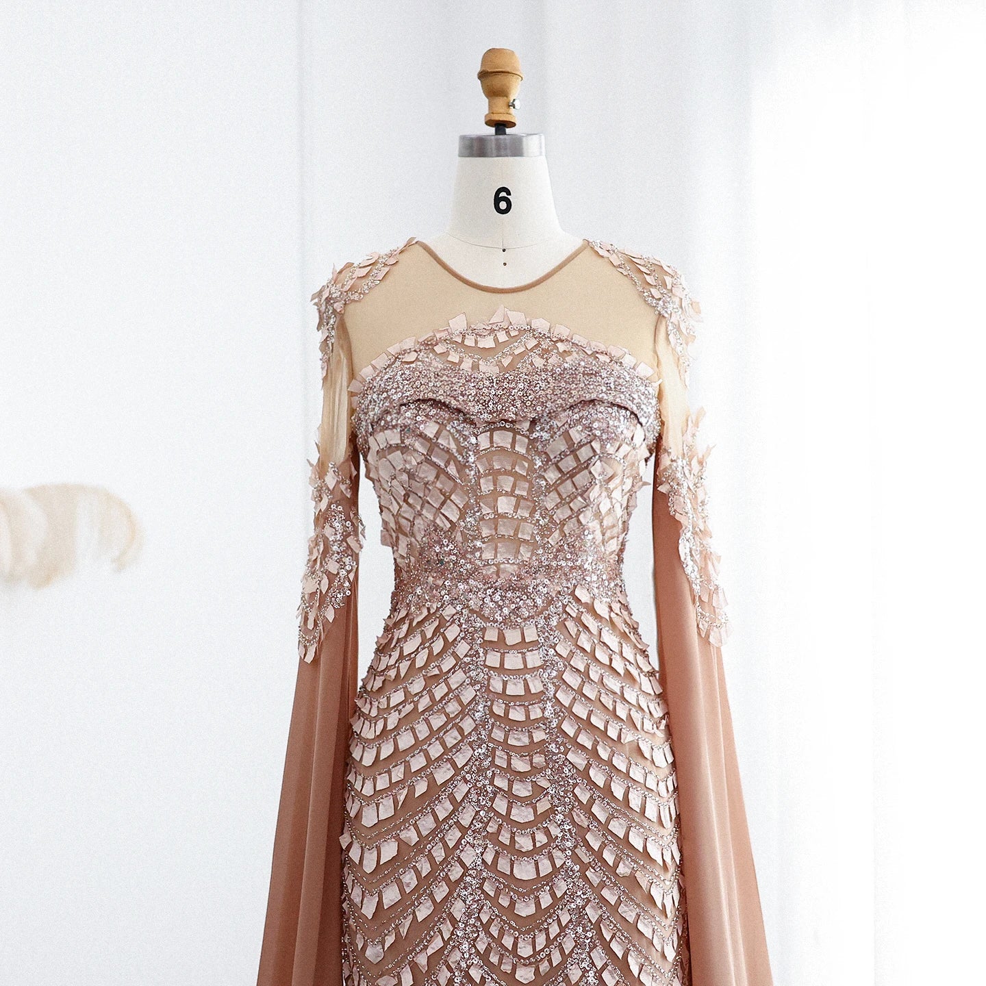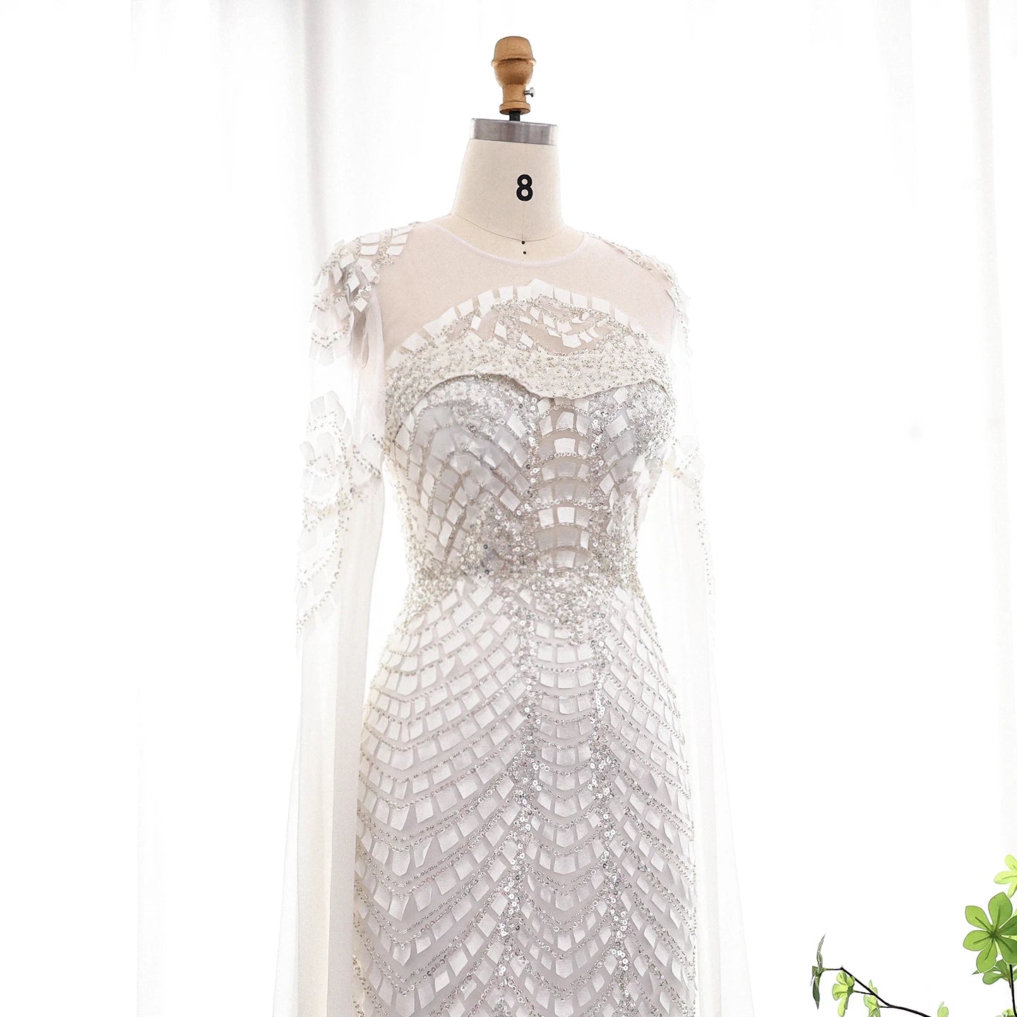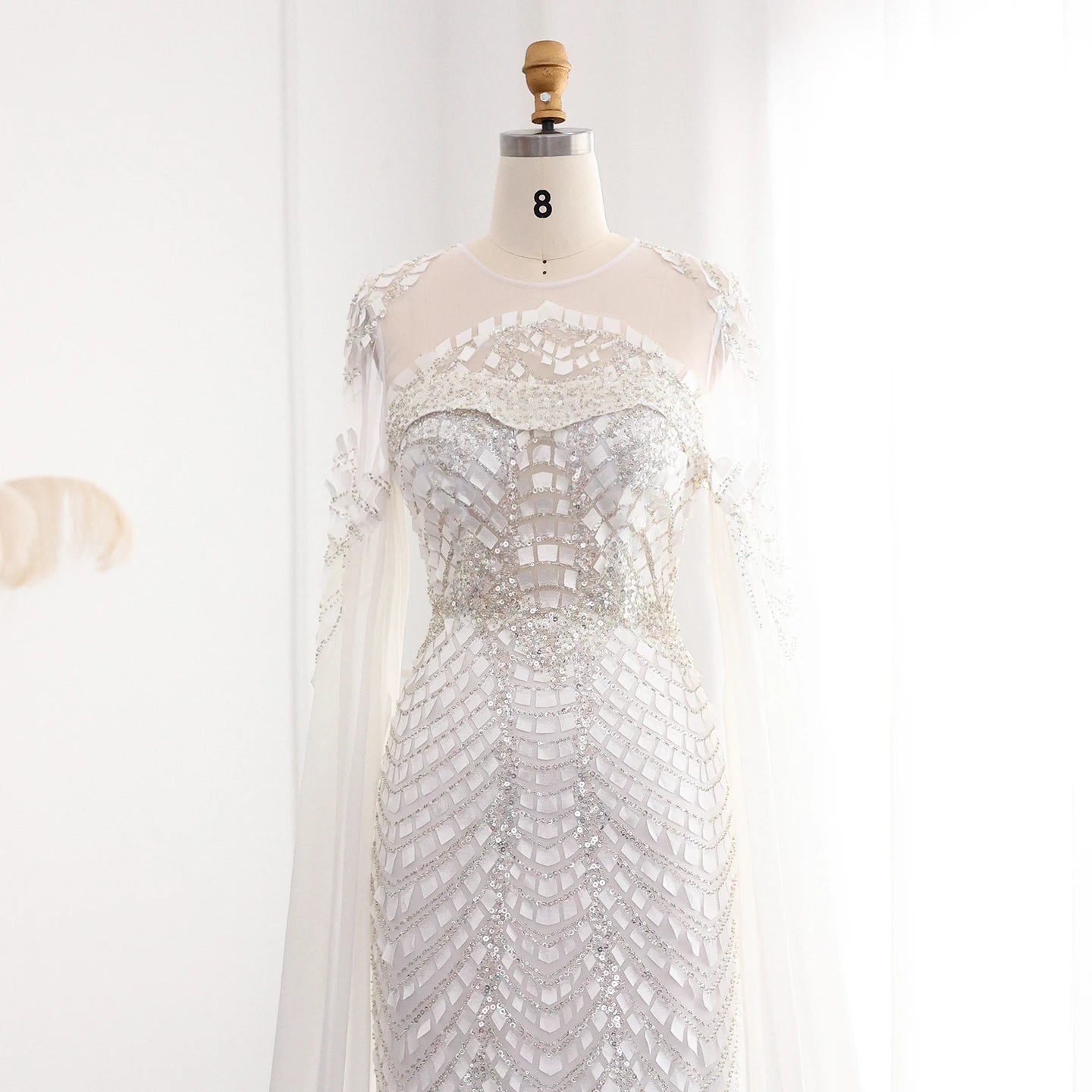 Vestido de Festa Luxuoso com Pérolas e Capa
