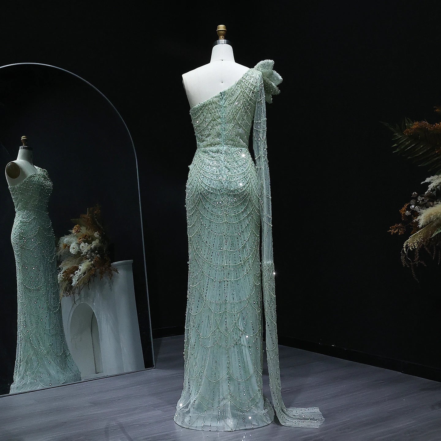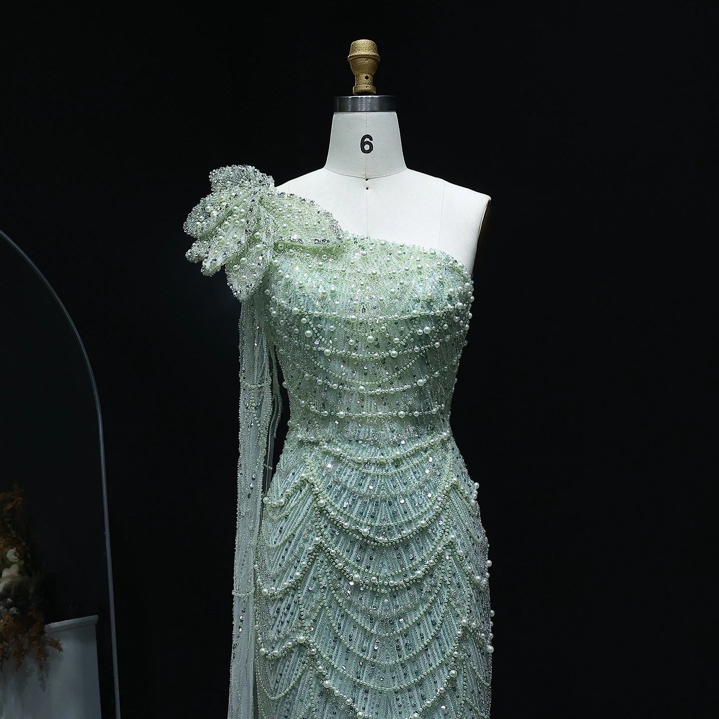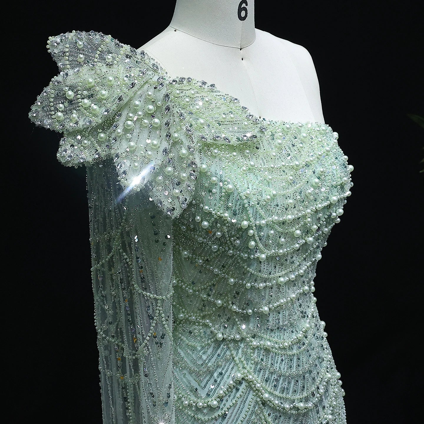 Vestido de Festa Luxuoso com Pérolas e Capa