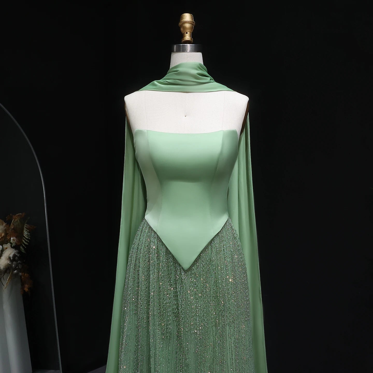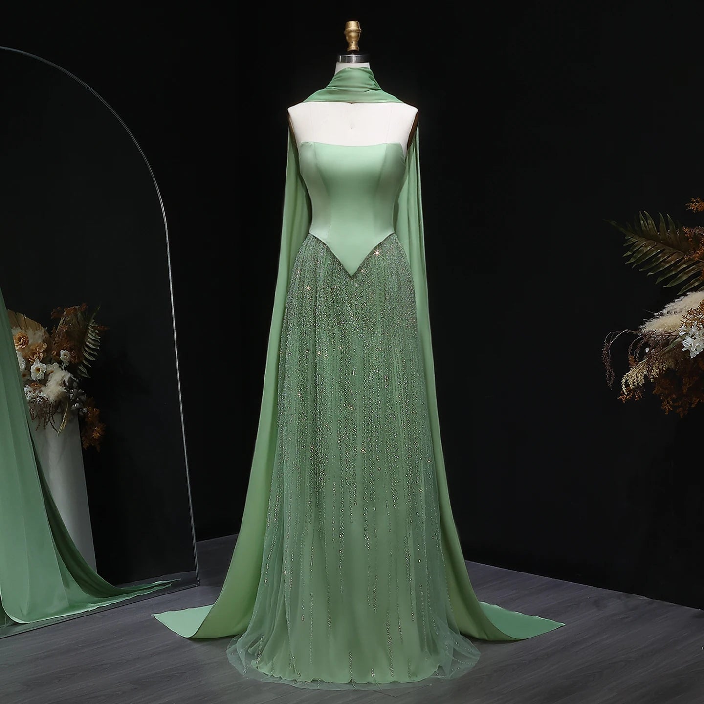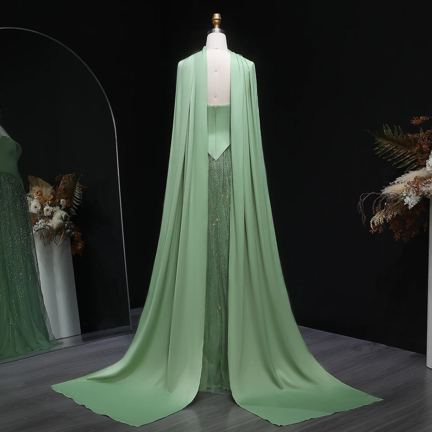 Vestido de Festa Luxuoso com Pérolas e Capa