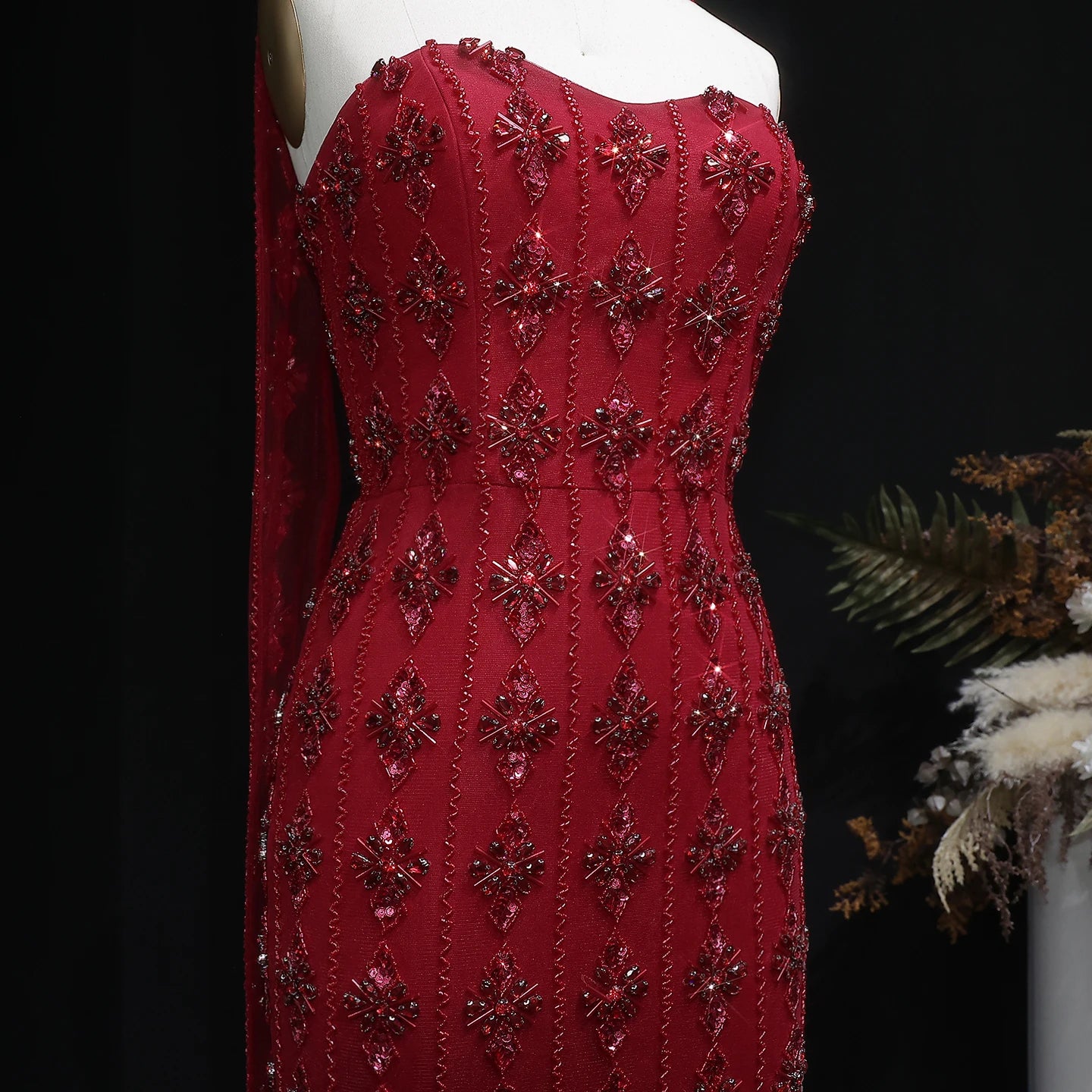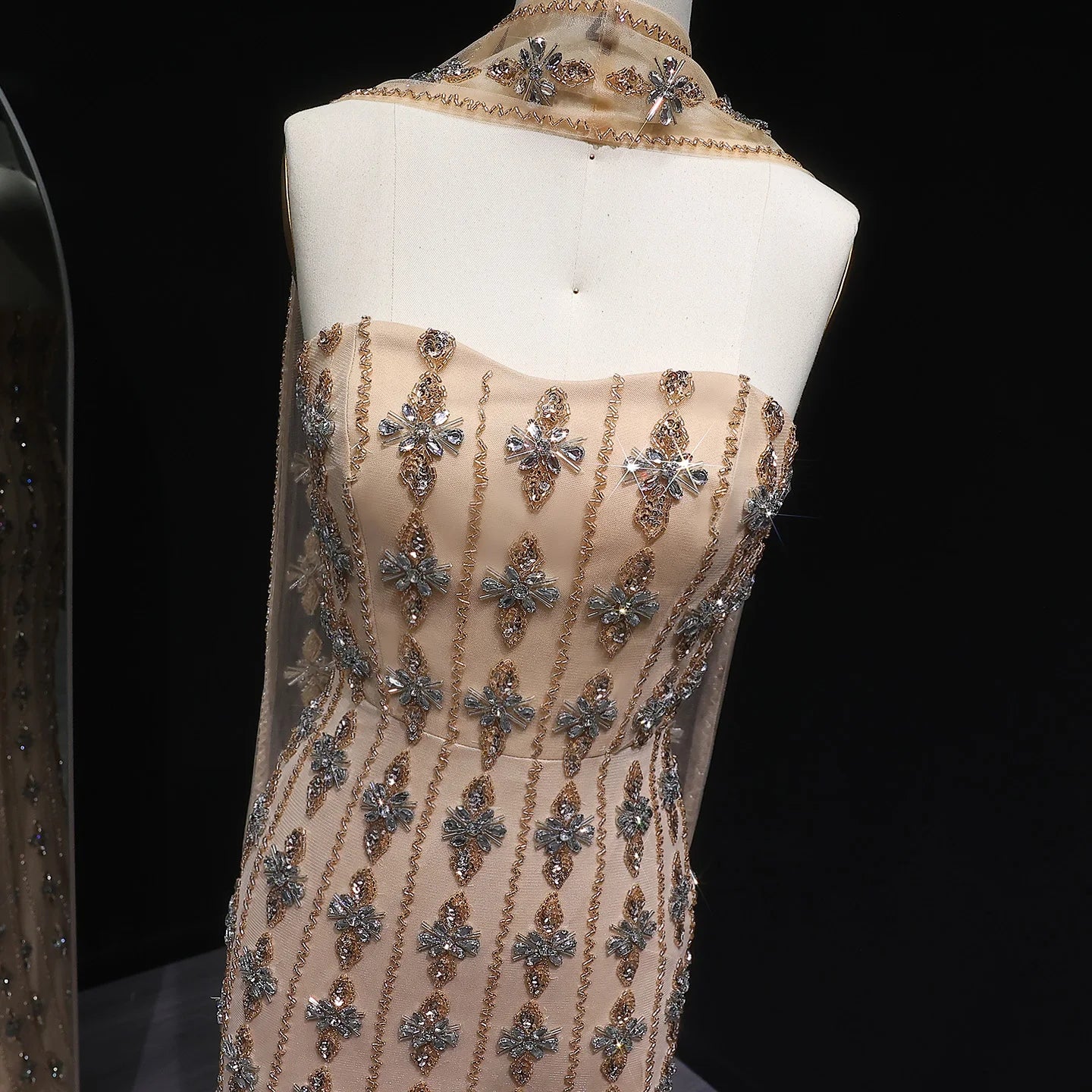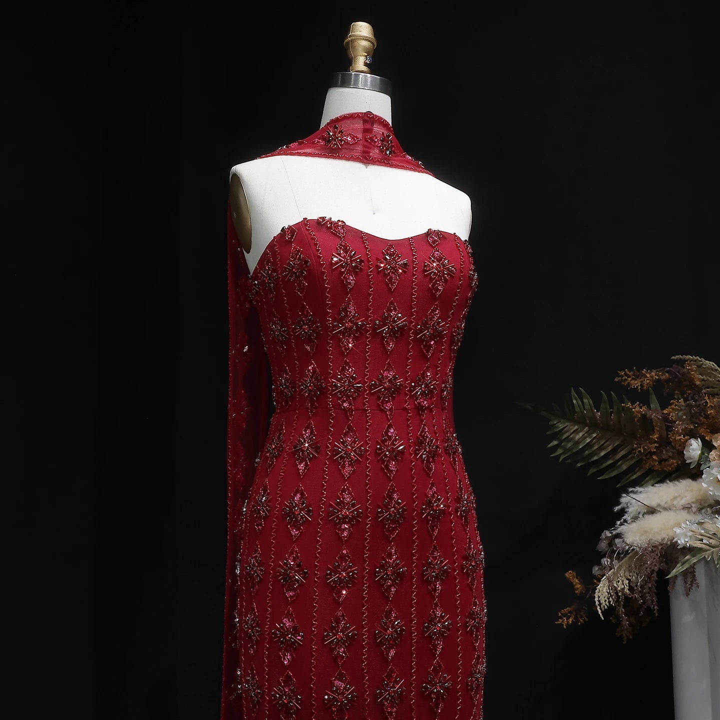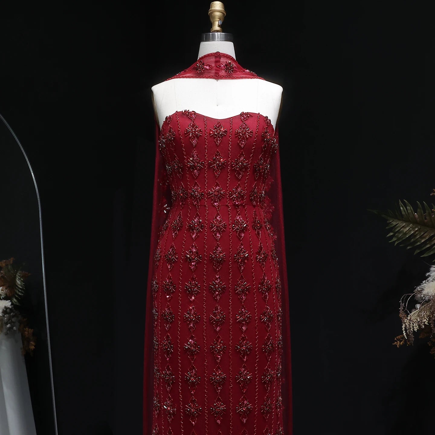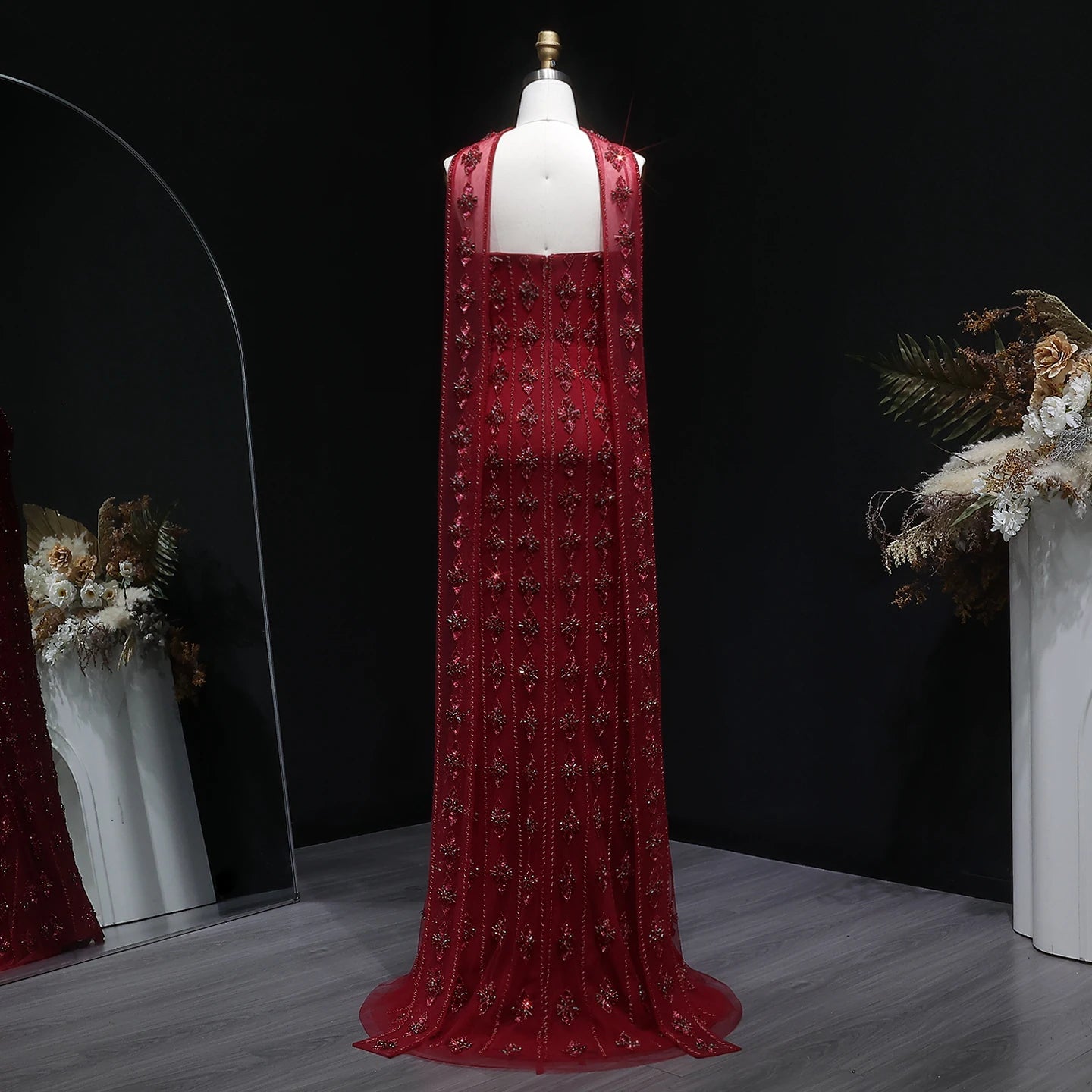 Vestido de Festa Luxuoso com Pérolas e Capa