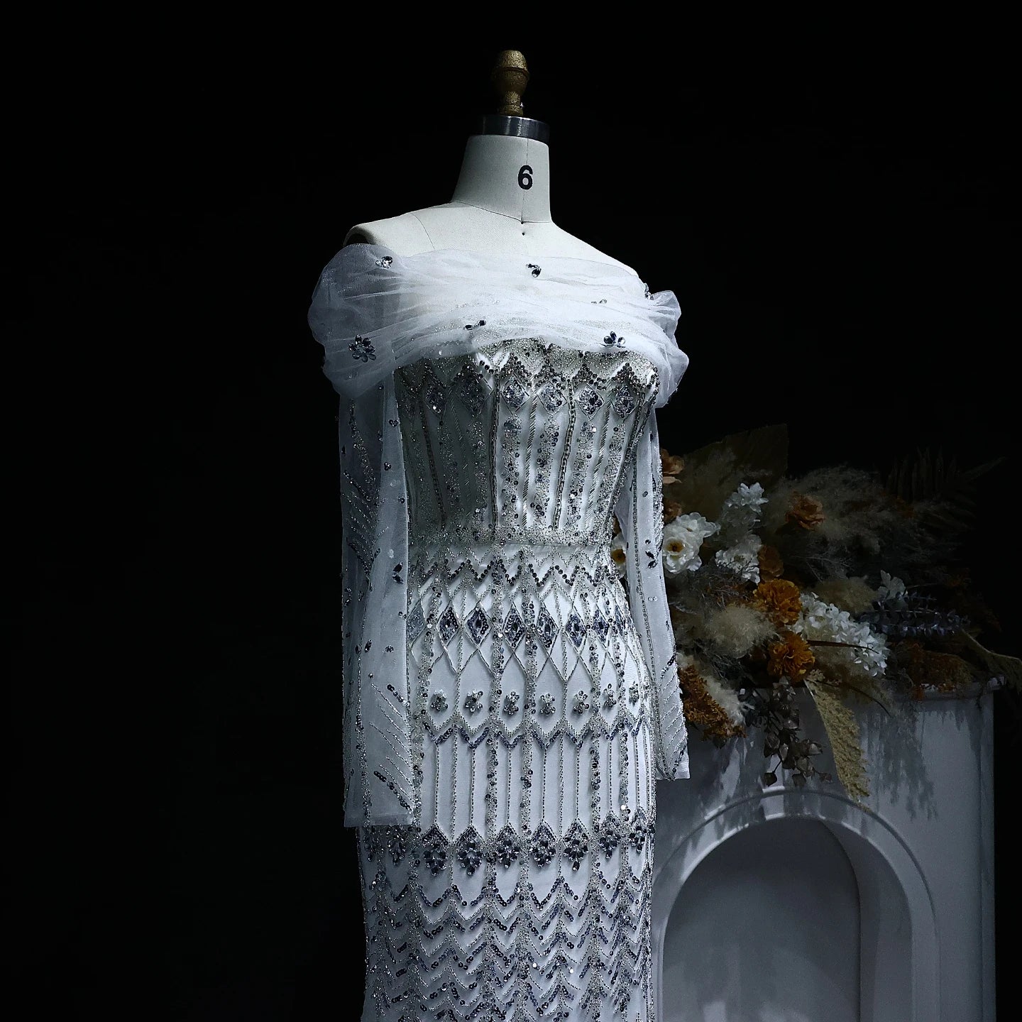 Vestido de Festa Luxuoso com Pérolas e Capa