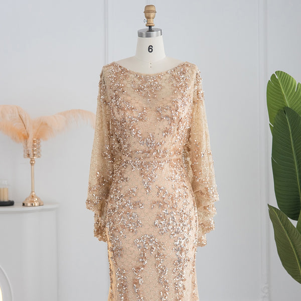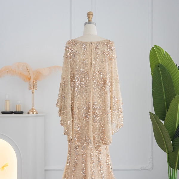 Vestido de Festa Luxuoso com Pérolas e Capa