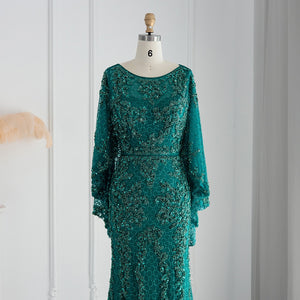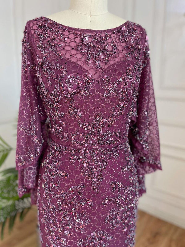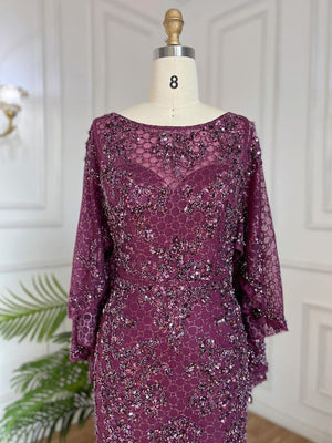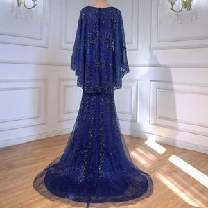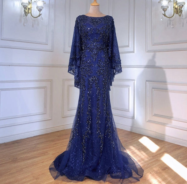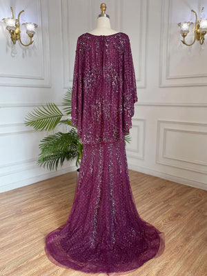Vestido de Festa Maxi Luxo Adornado em Cristais com Capa Detalhada