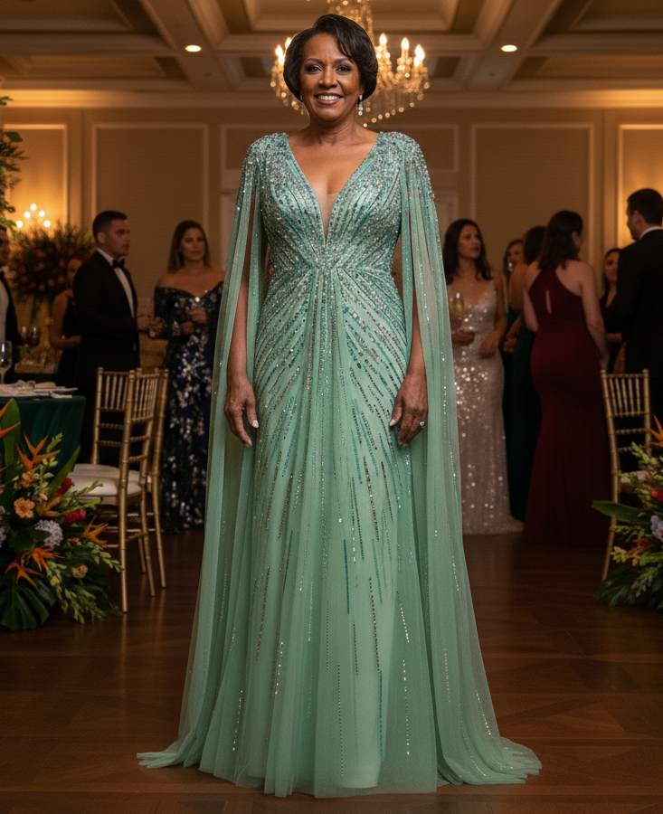 O vestido de festa com capa flutuante longo - Modelo Especial é ideal para eventos como casamentos, galas ou festas de luxo, onde o objetivo é se destacar com um visual sofisticado e elegante. A combinação da silhueta clássica com a moderna capa flutuante faz deste vestido uma escolha perfeita para quem deseja uma presença imponente e encantadora. Com acessórios discretos e uma maquiagem elegante, este vestido proporciona um look completo e inesquecível, ideal para ocasiões especiais onde o glamour é essencial.