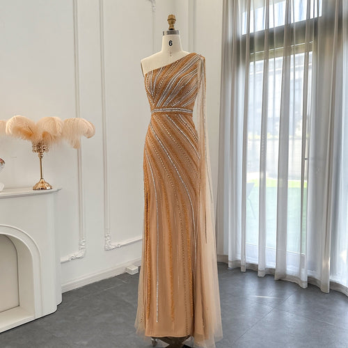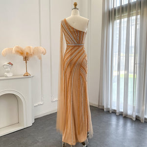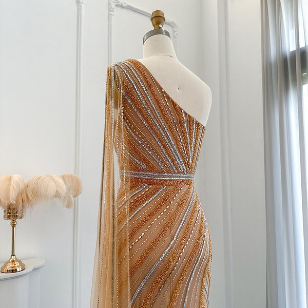 Vestido de Festa Maxi Luxo Adornado em Cristais com Capa Detalhada